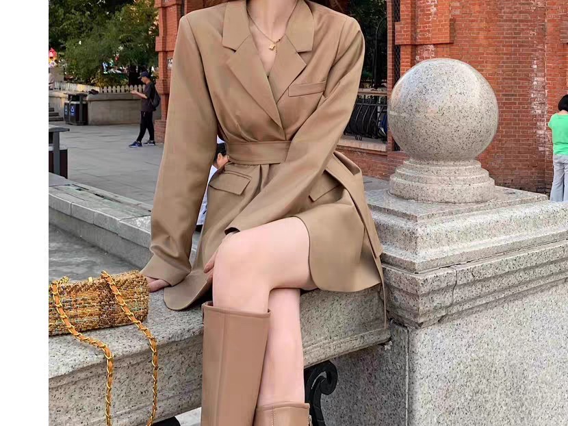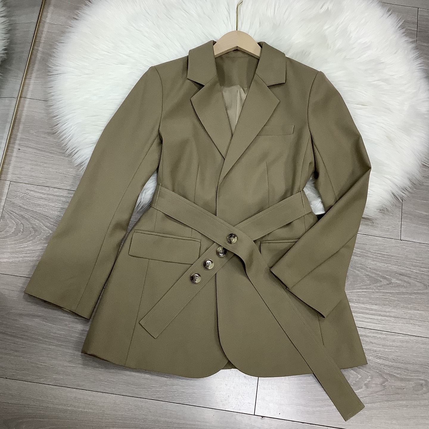 Elegant Khaki Blazer Dress with Belt - Slim Fit & Quality Texture