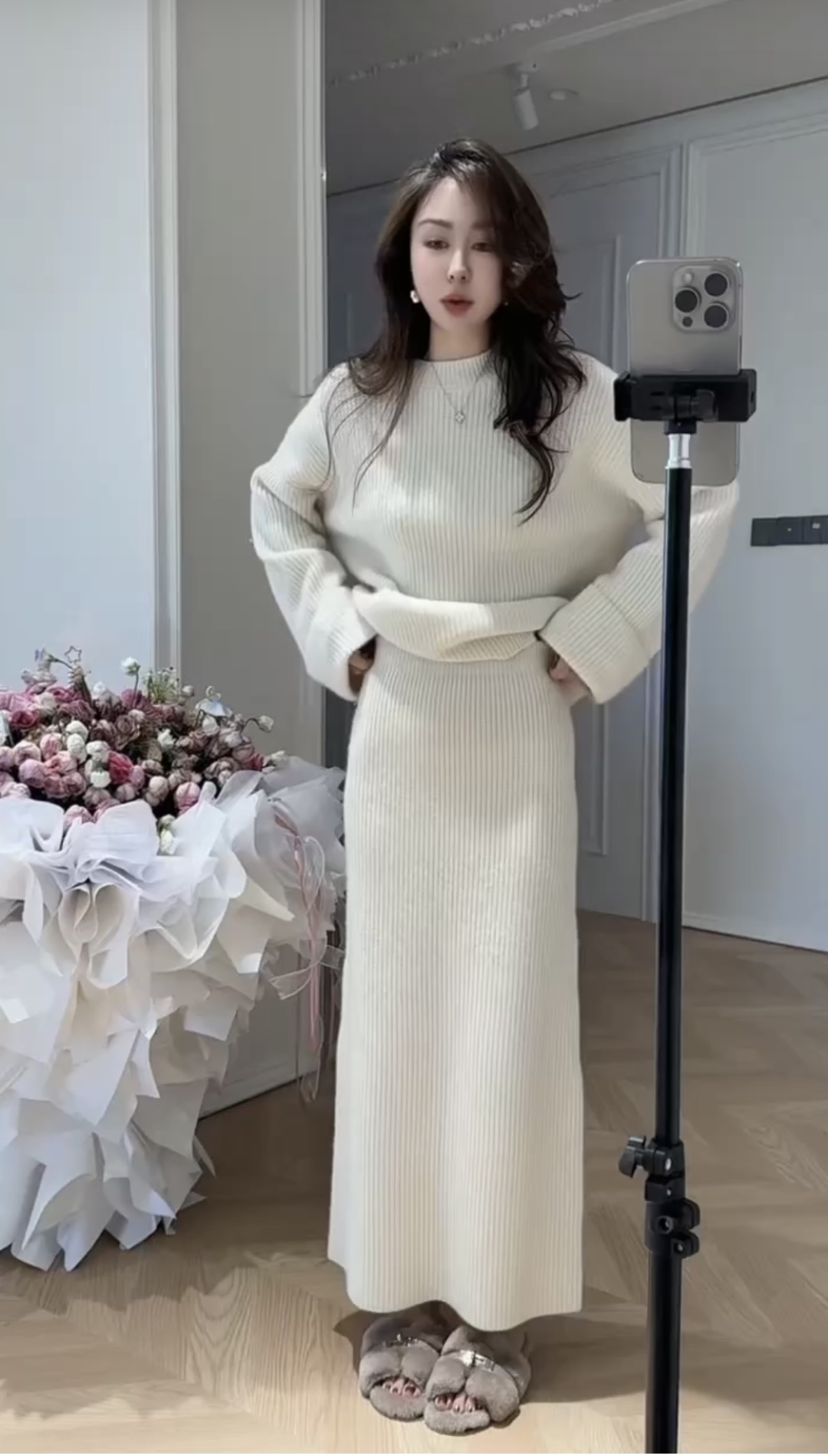This stylish knit set offers both comfort and sophistication, making it a versatile addition to your wardrobe.