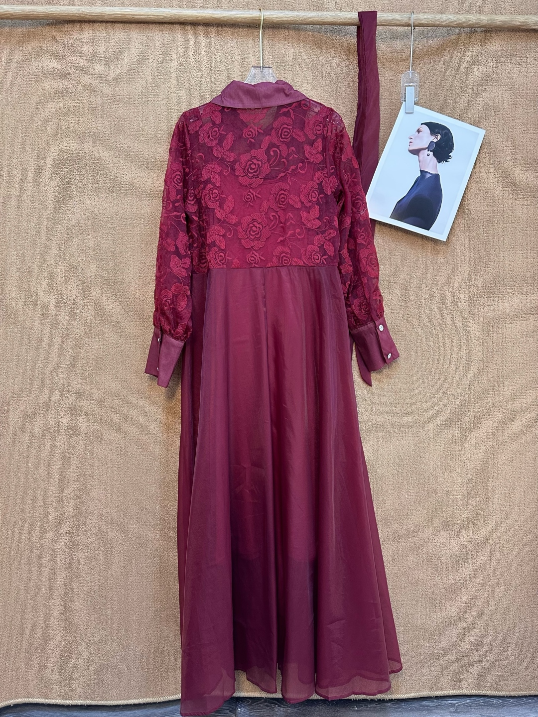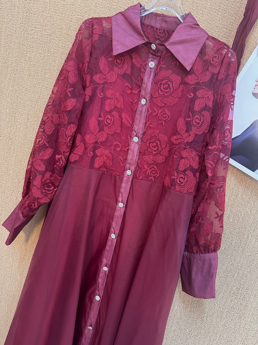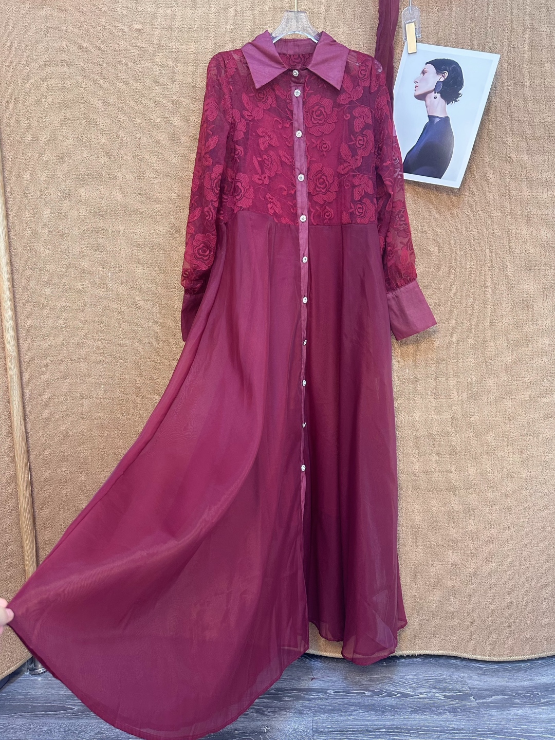 This exquisite lace floral button-down maxi dress is a timeless addition to any wardrobe, blending vintage charm with modern sophistication.