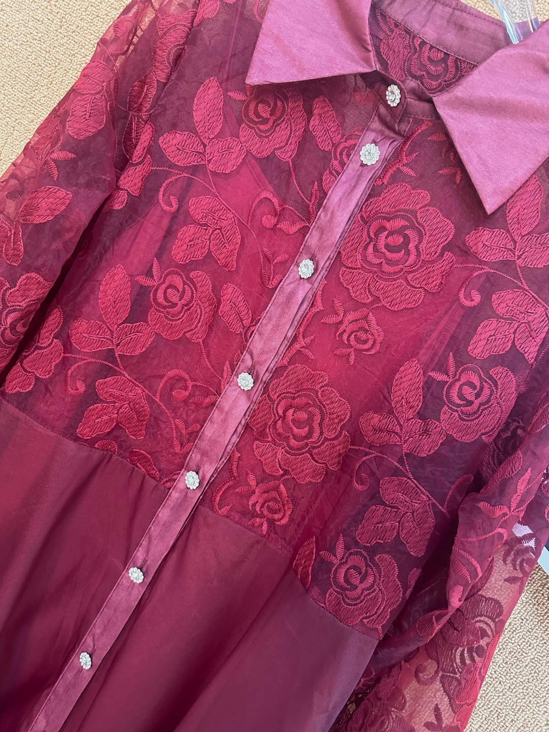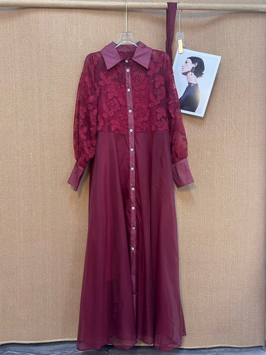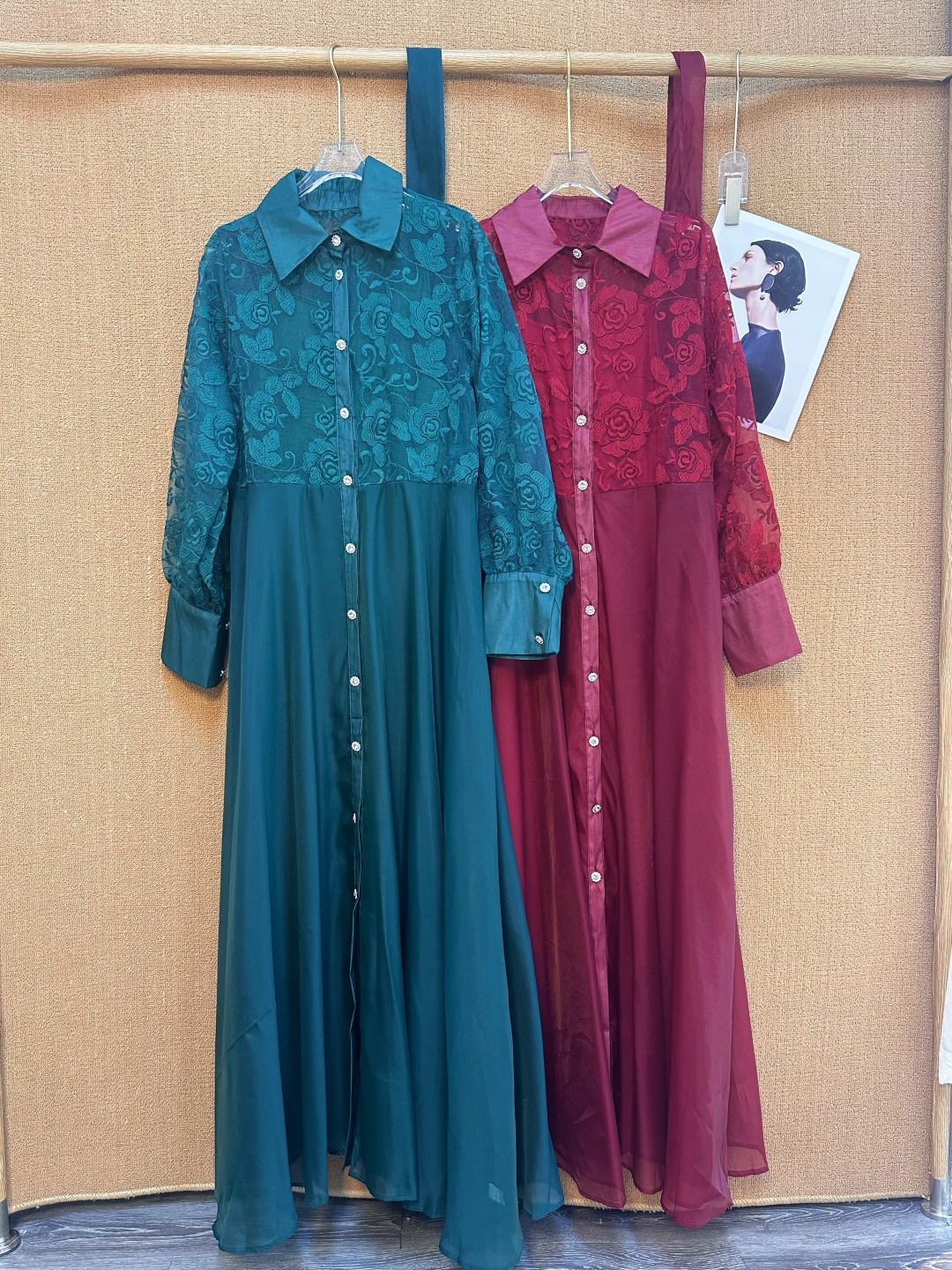 This exquisite lace floral button-down maxi dress is a timeless addition to any wardrobe, blending vintage charm with modern sophistication.