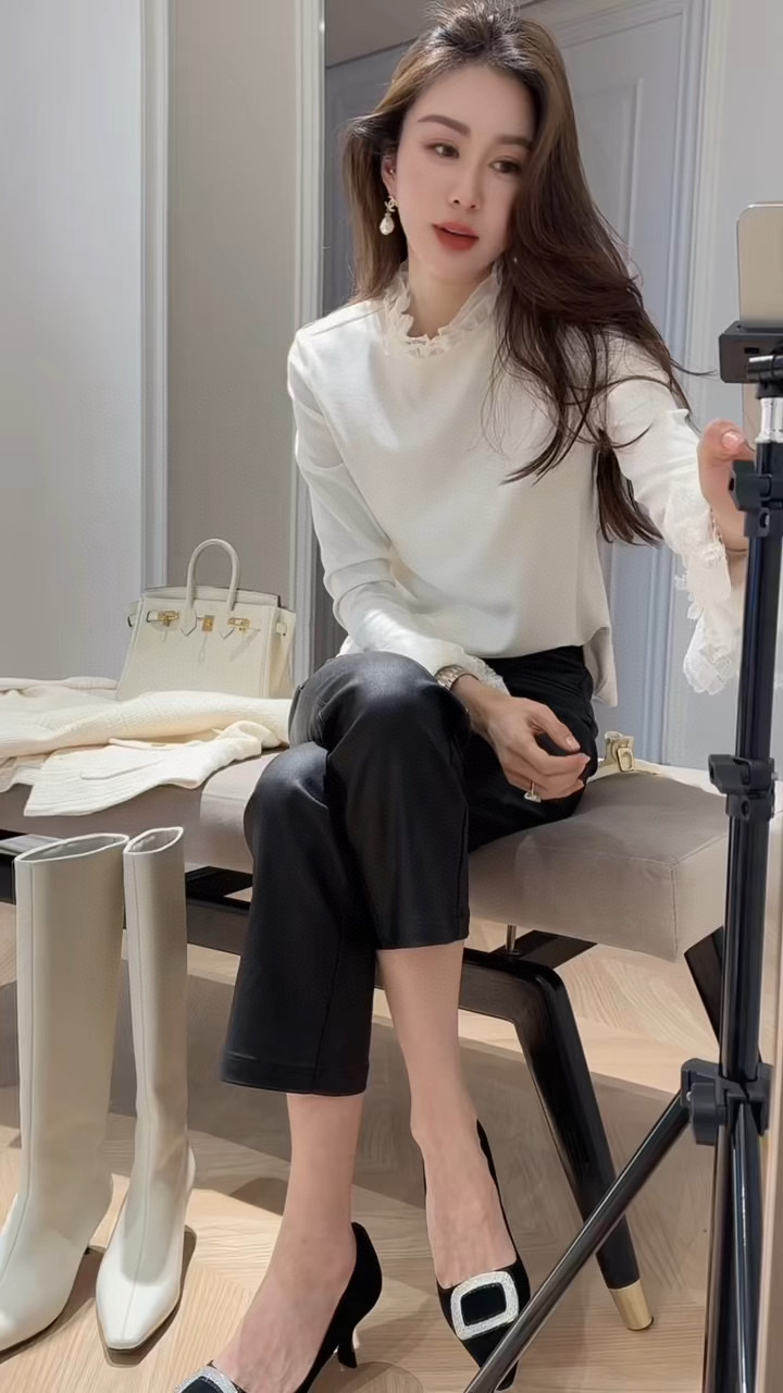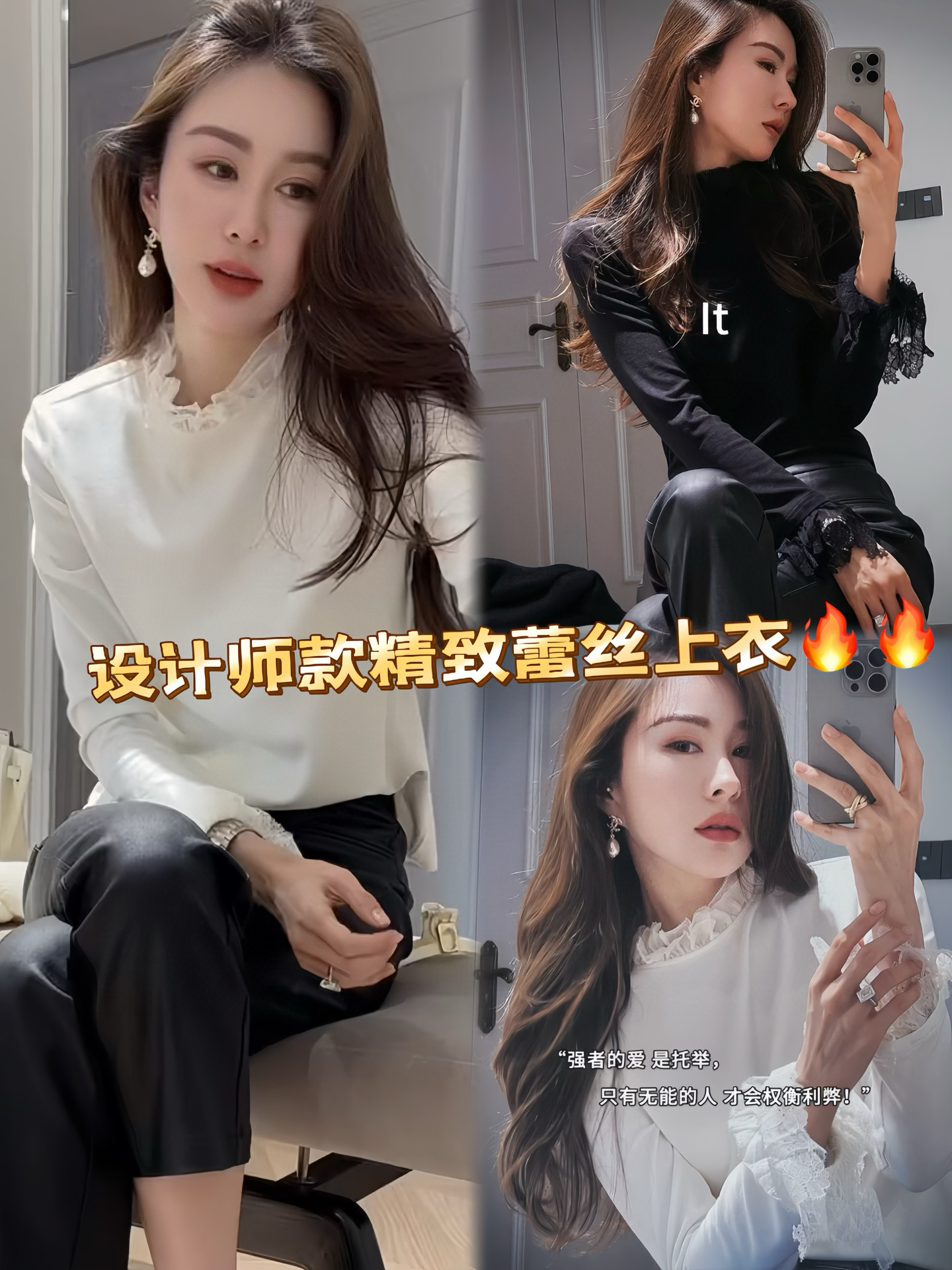 This exquisite lace petal stand collar top is the perfect addition to your wardrobe, blending elegance with contemporary design.