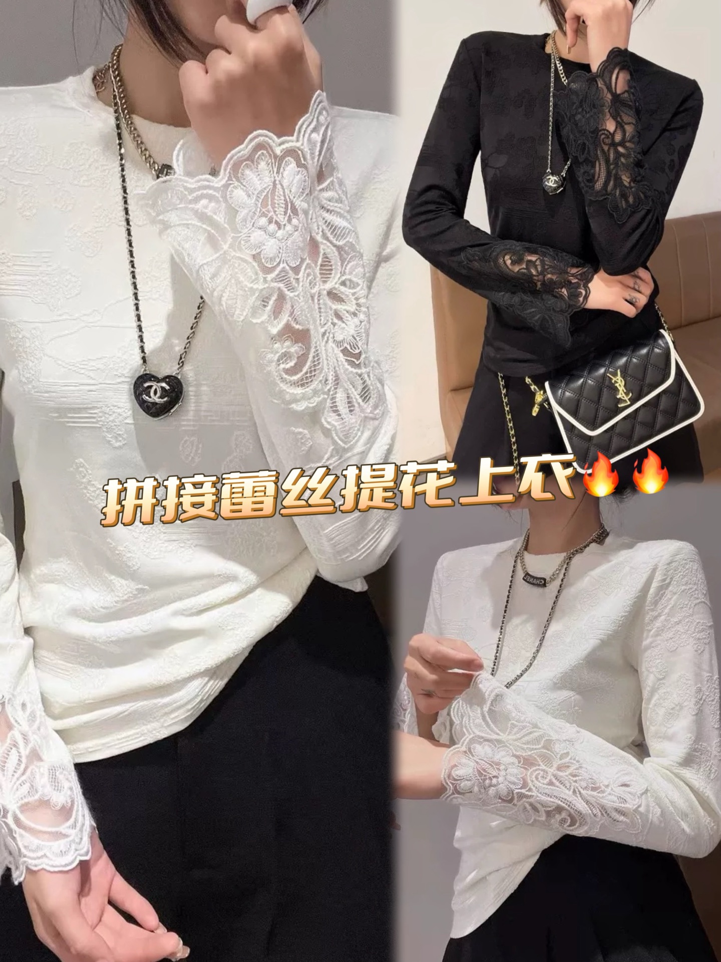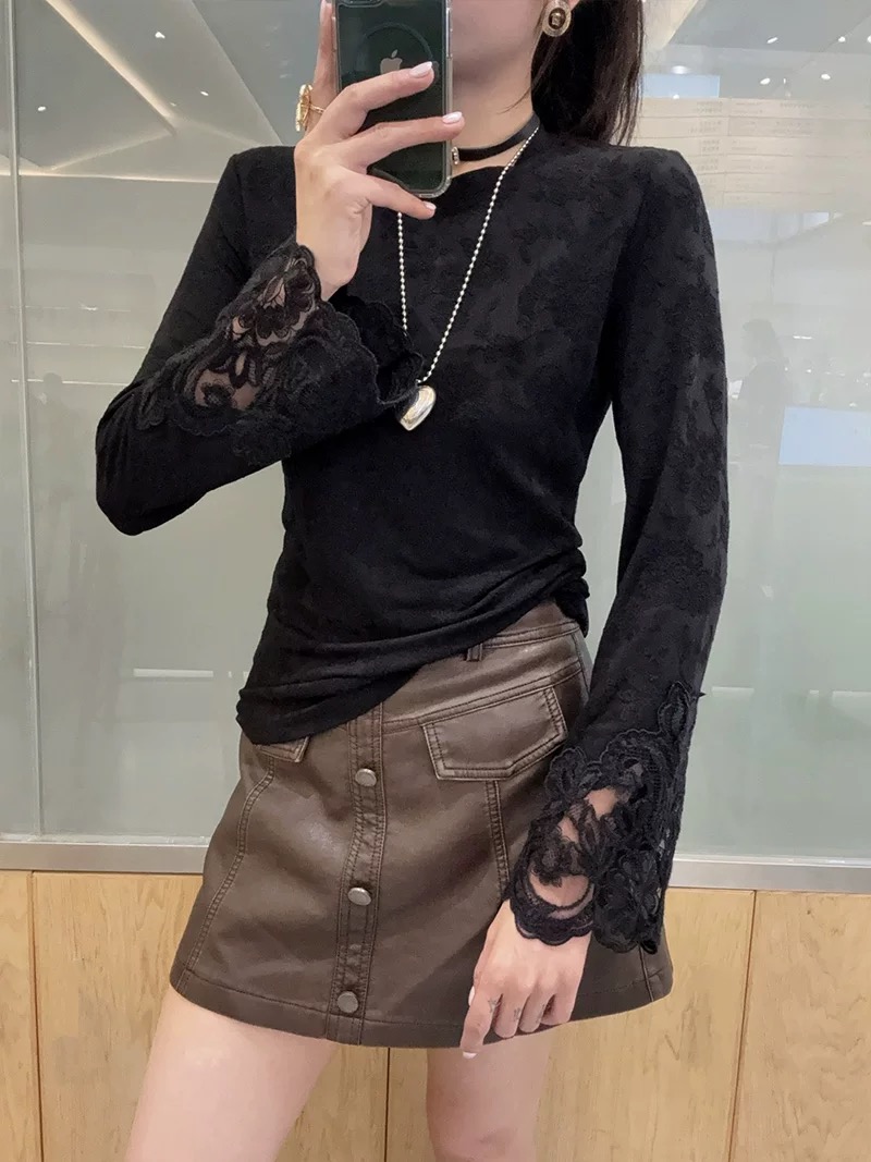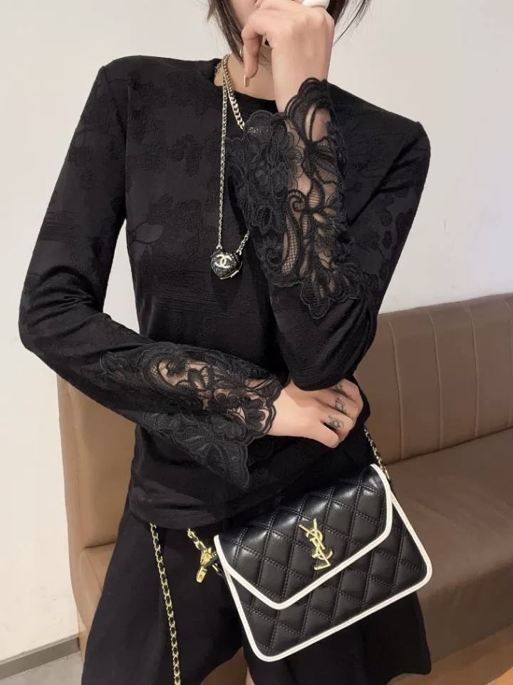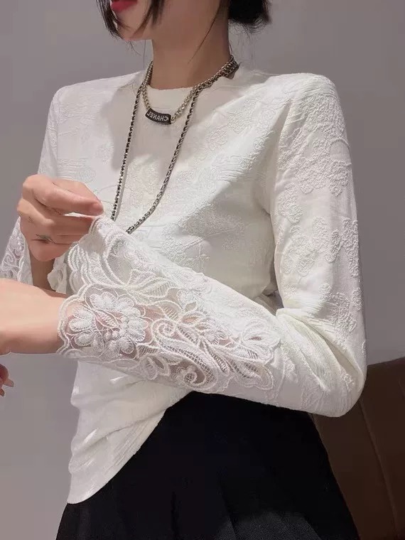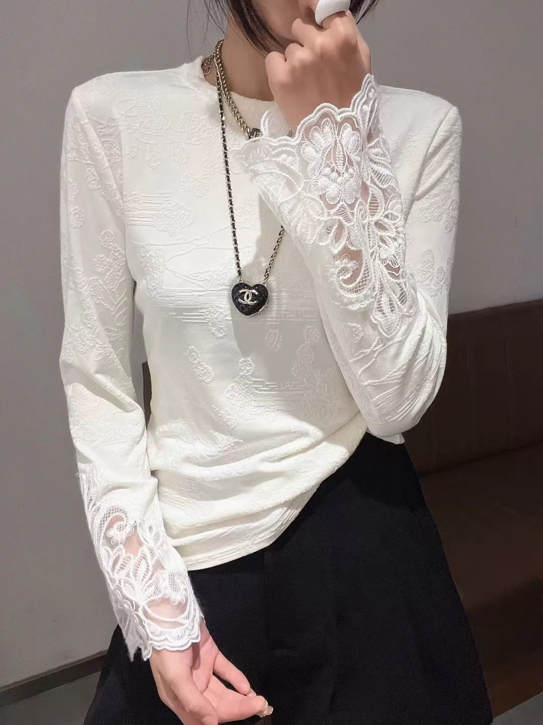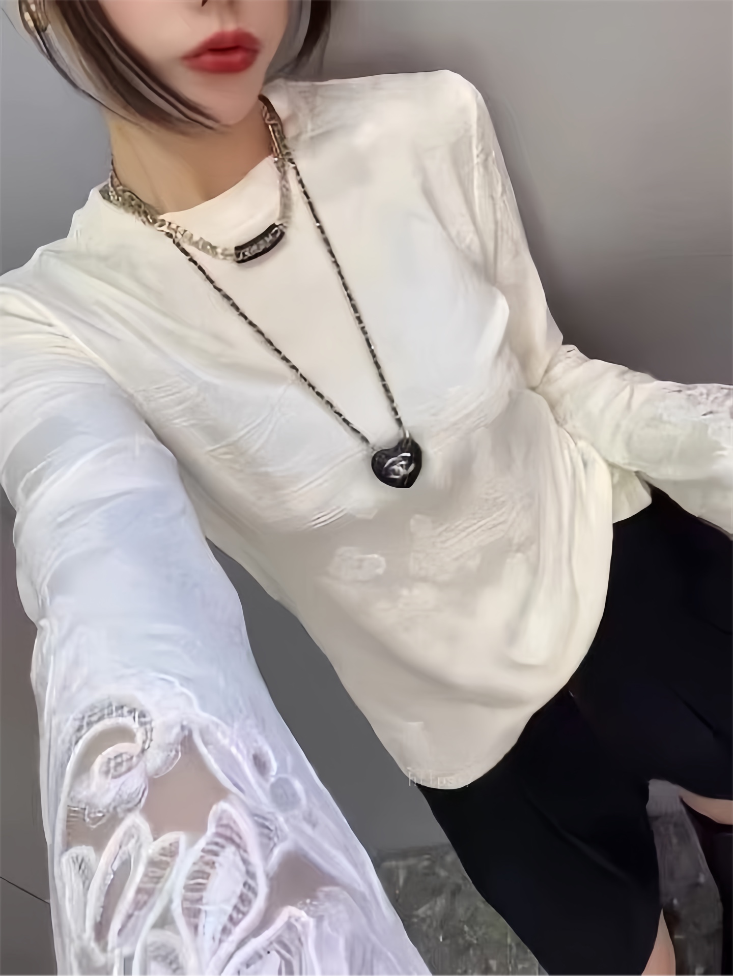 Elegant Lace Trim Long Sleeve Top, Stylish & Comfortable Fit, S-XL