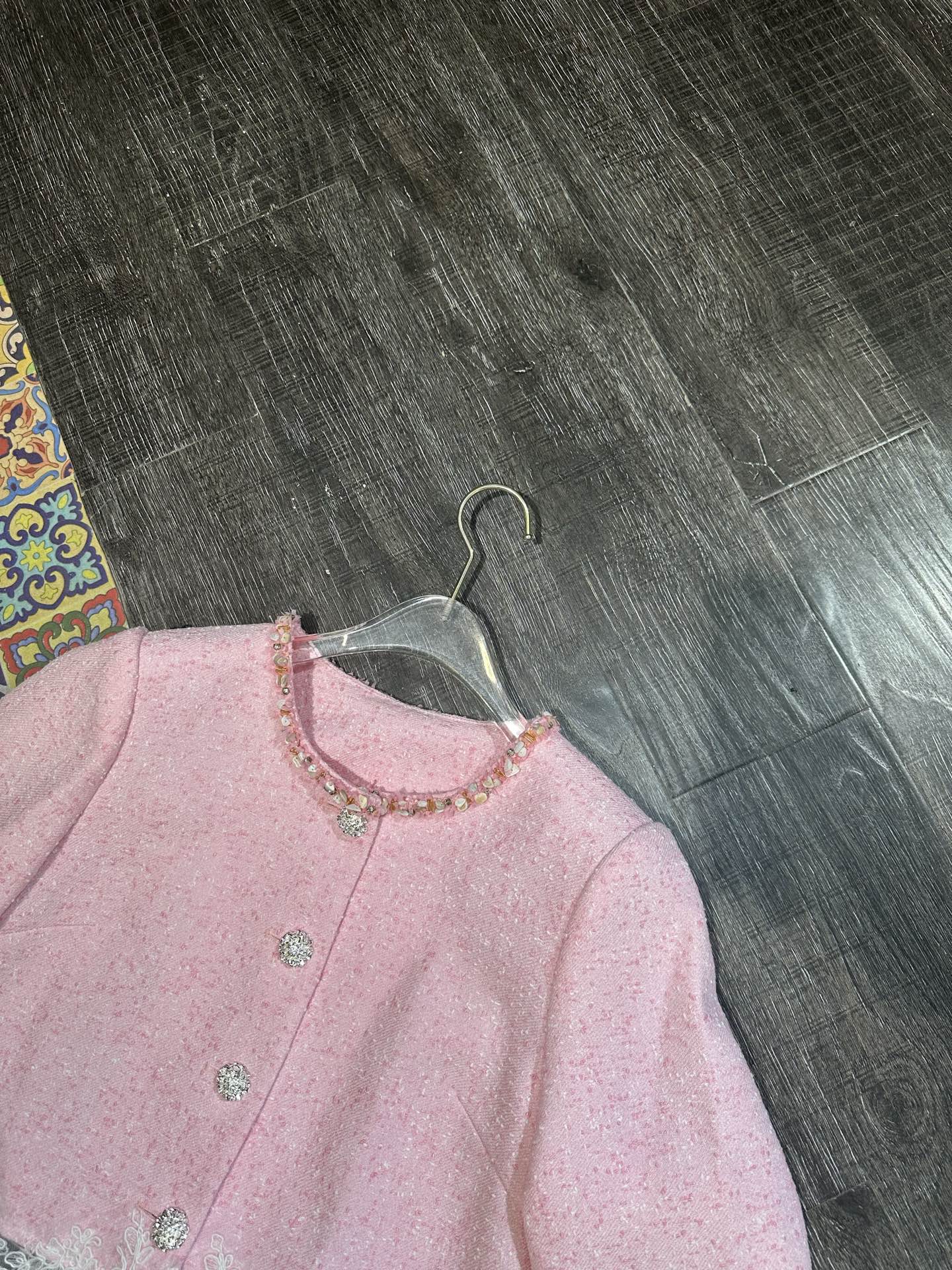 Elevate your style with this timeless and elegant tweed skirt set. It's the perfect addition to any fashion-forward woman's wardrobe.