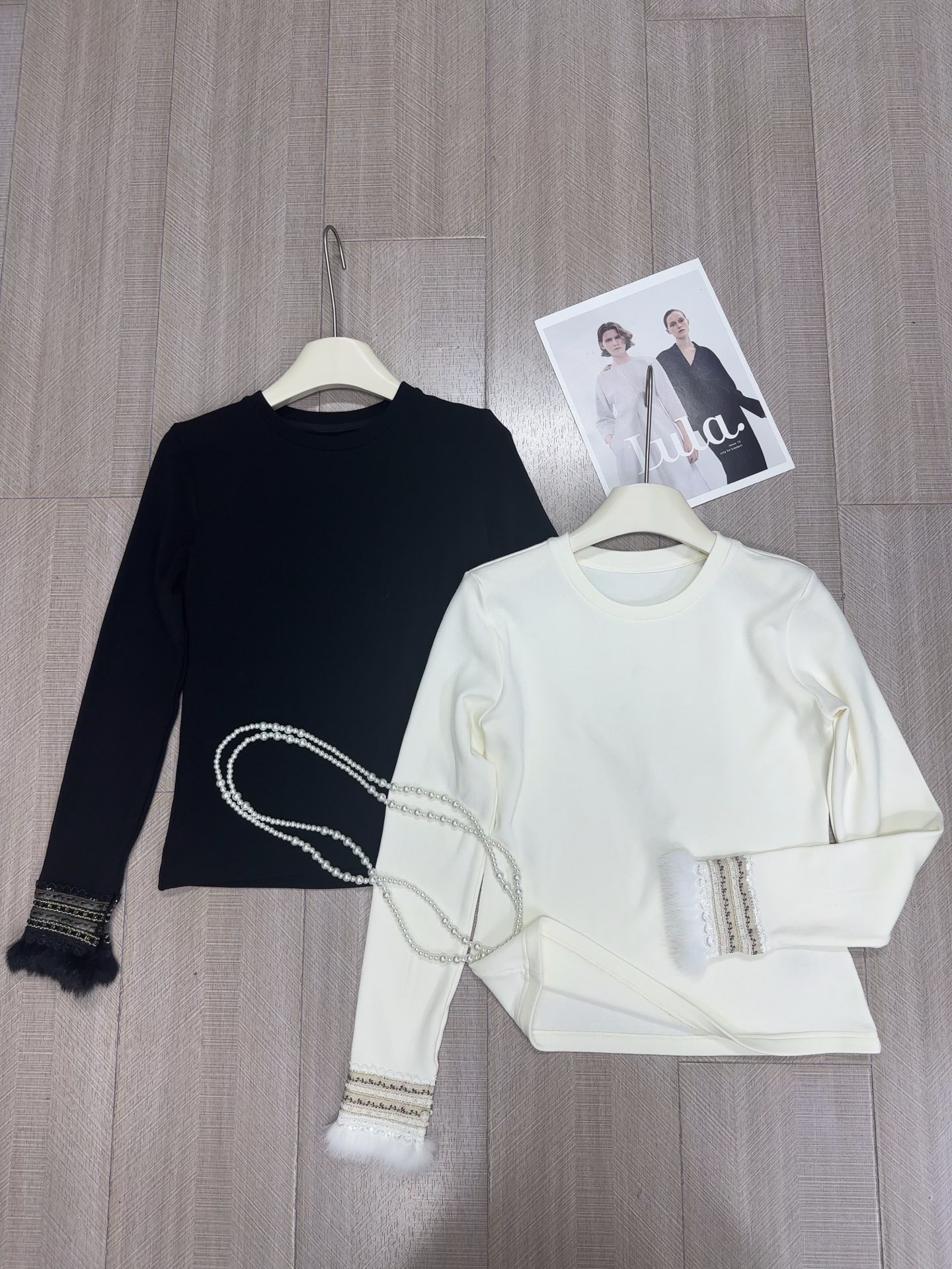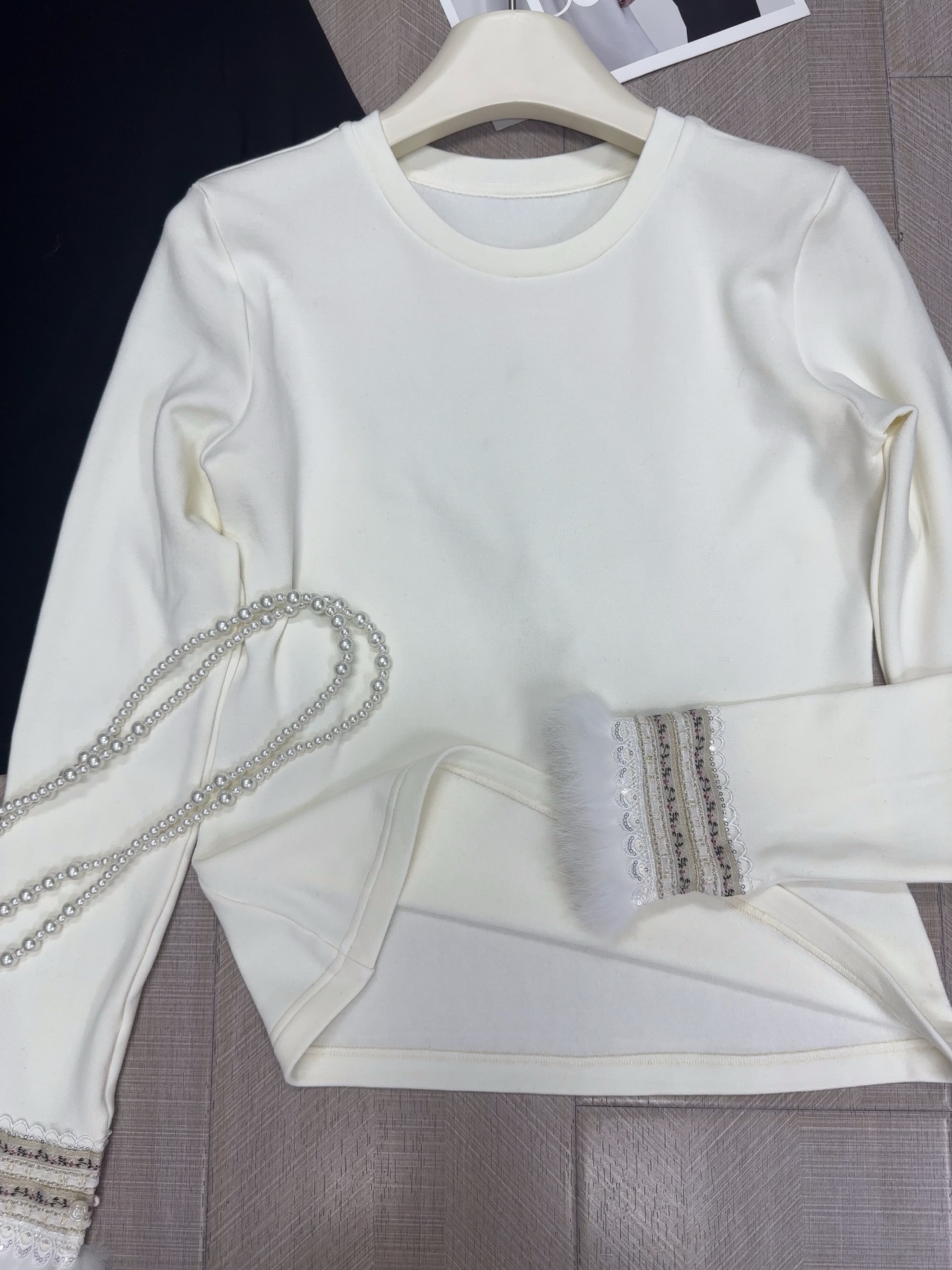 Elegant Long Sleeve Top with Fur and Lace Details - Perfect Underlayer