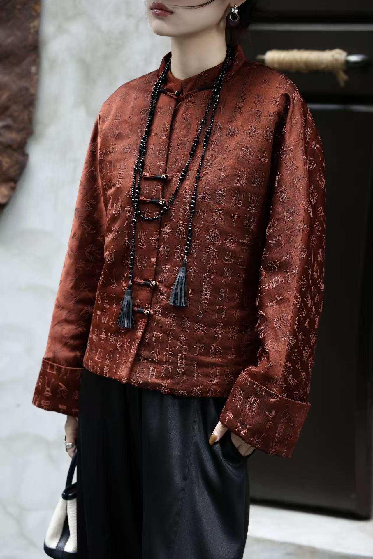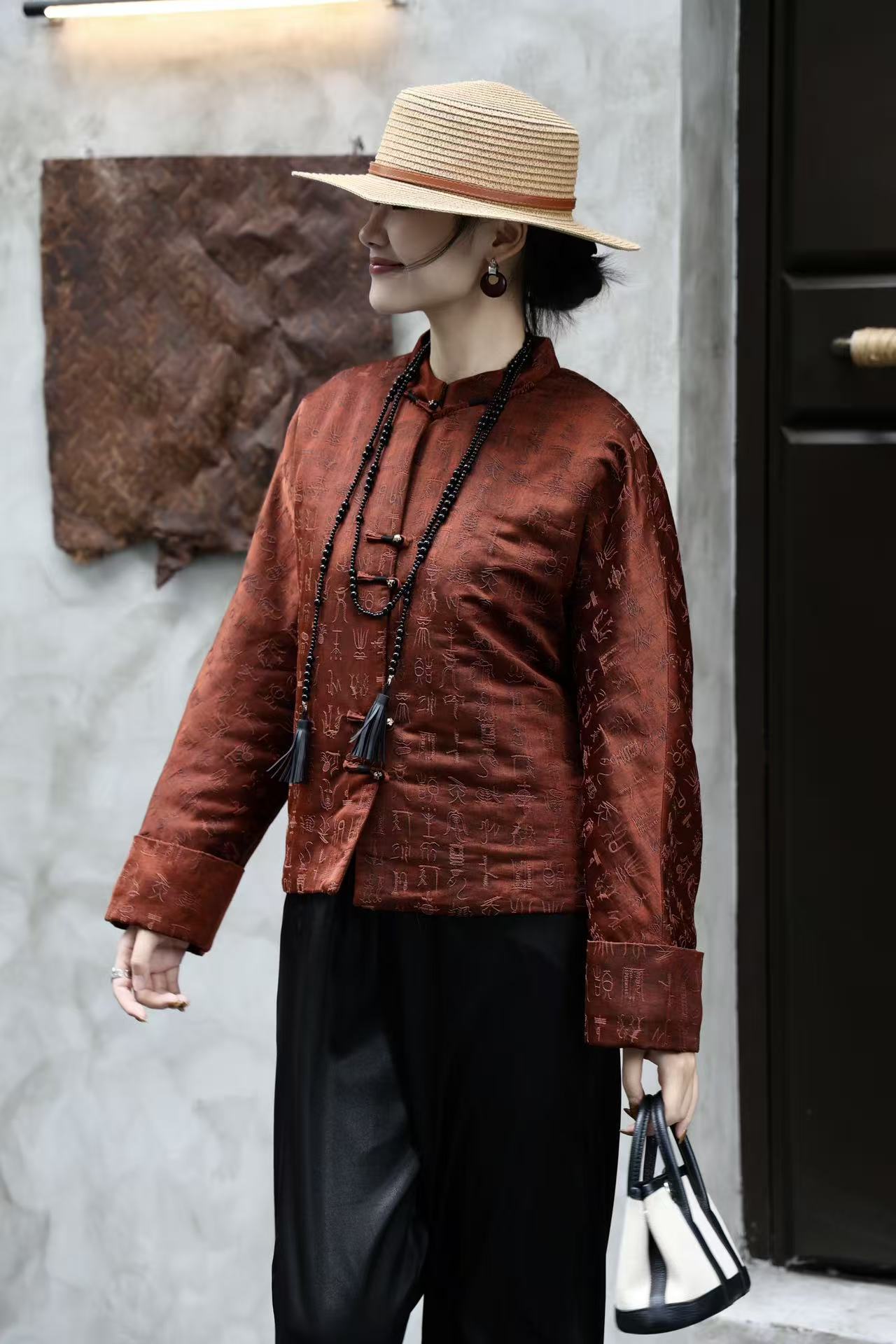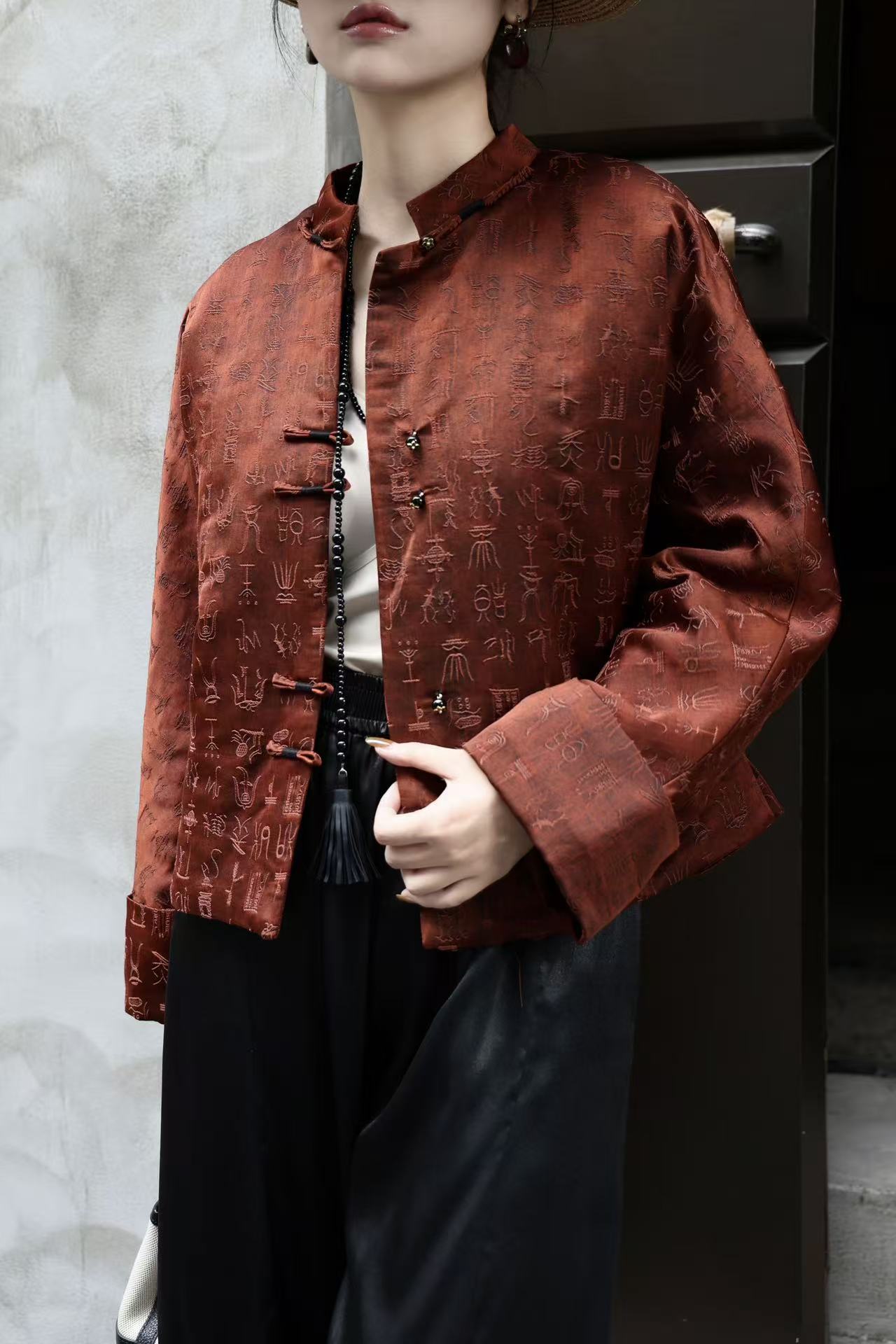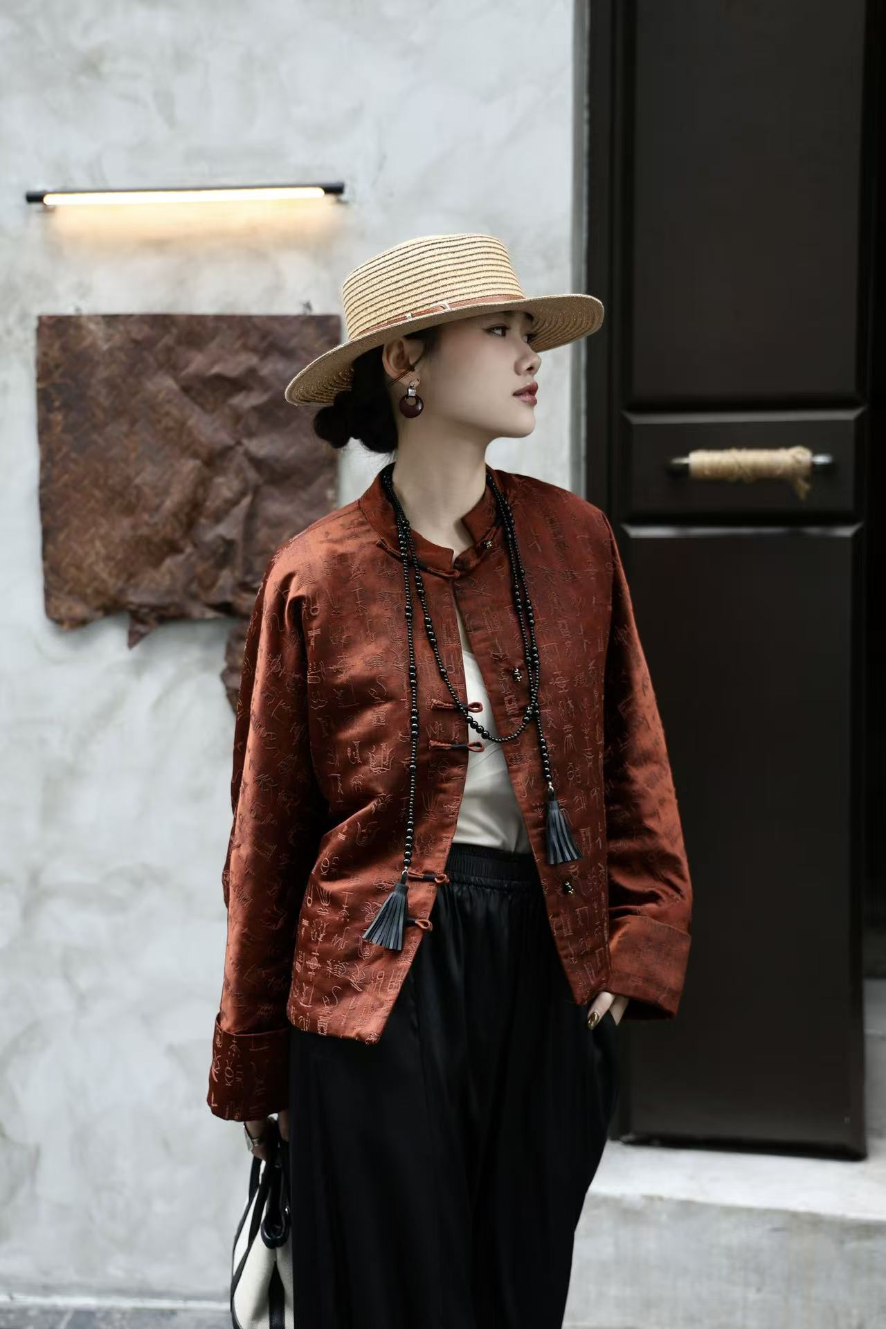 Introducing the epitome of cultural elegance with our New Chinese Style Mandarin Collar Silk Blend Jacquard Jacket. This exquisite piece combines traditional craftsmanship with modern design, making it a standout addition to any wardrobe.