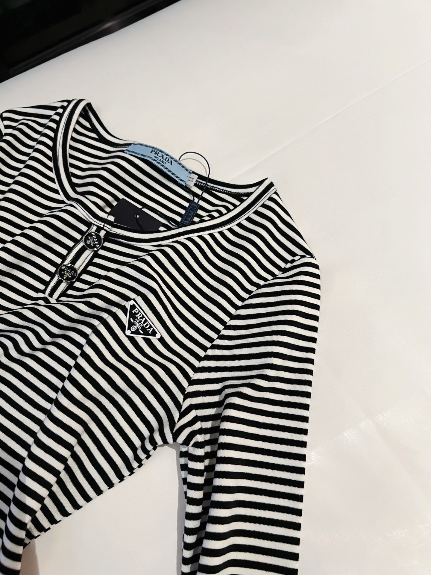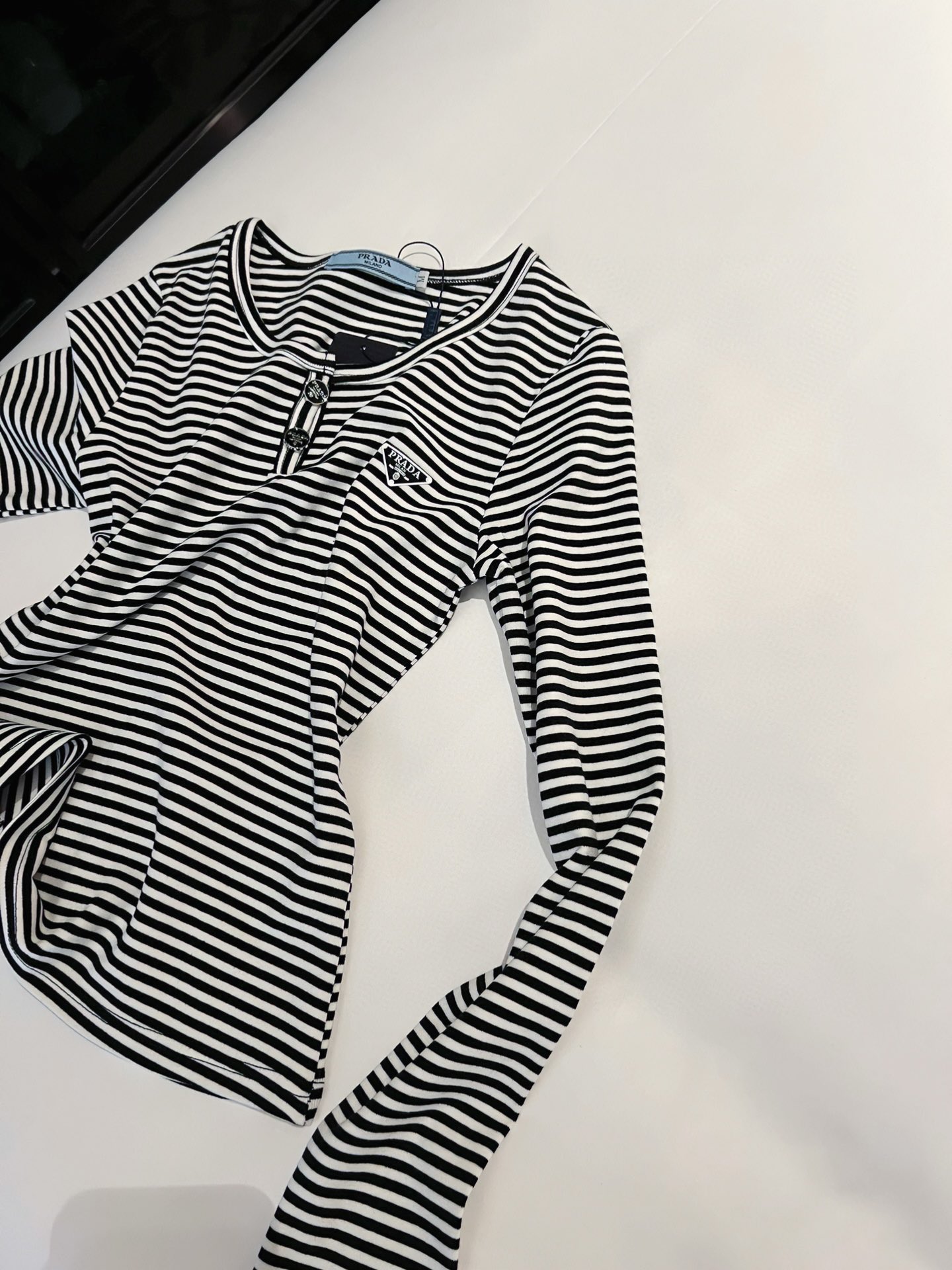 Elegant Prada Striped Long Sleeve Top - Essential Base Layer for Striped Fashion