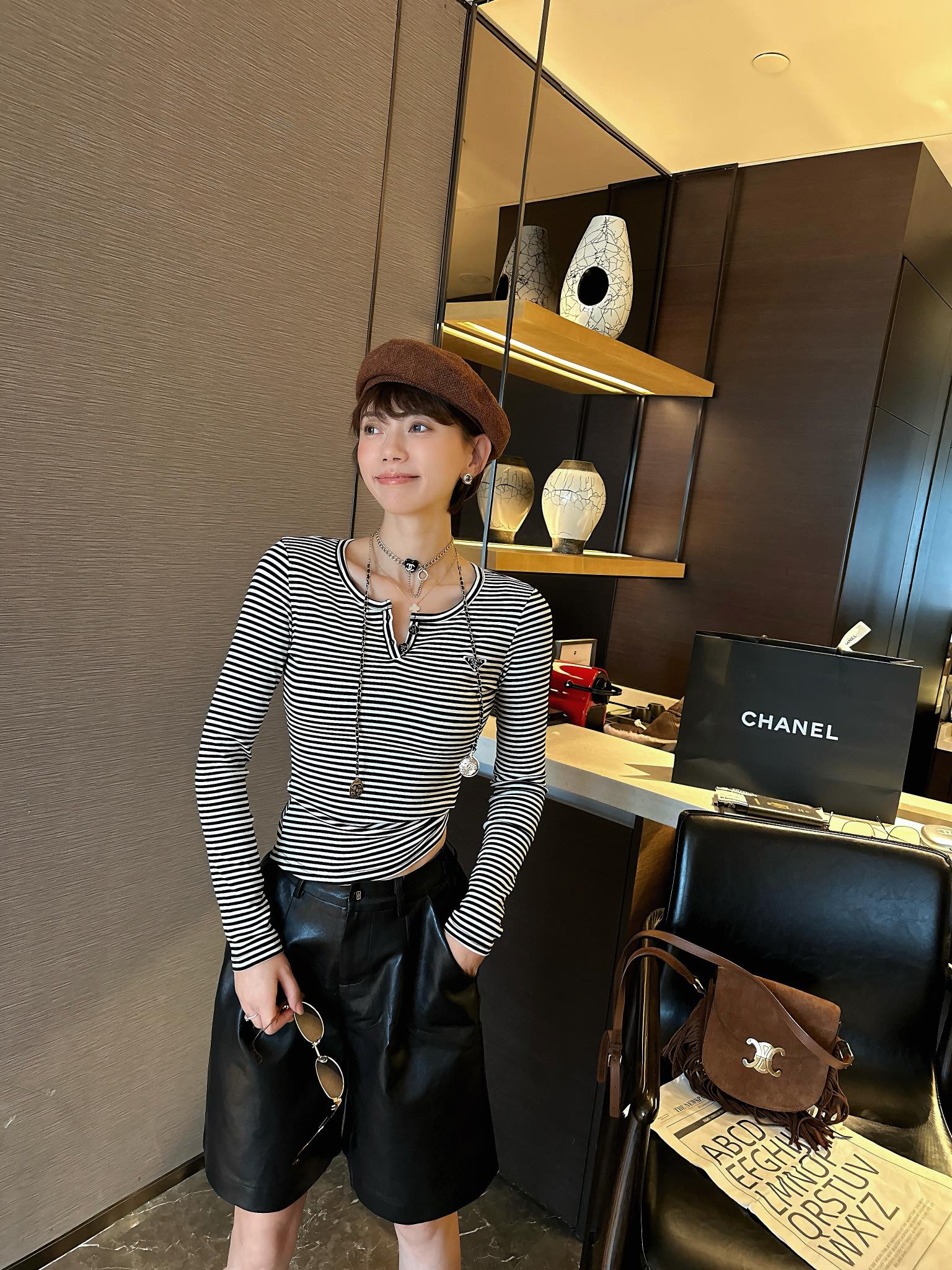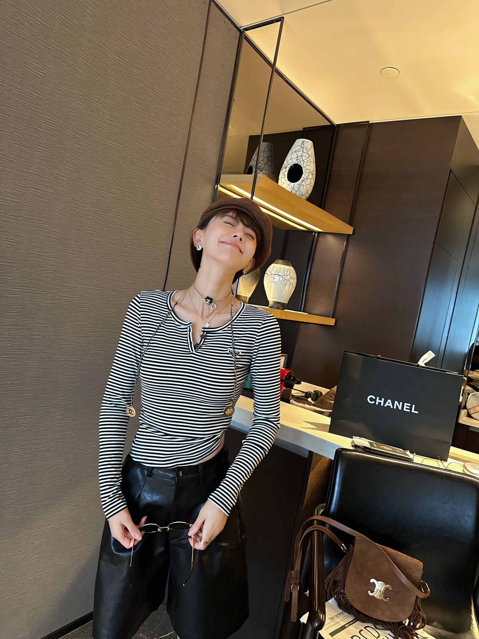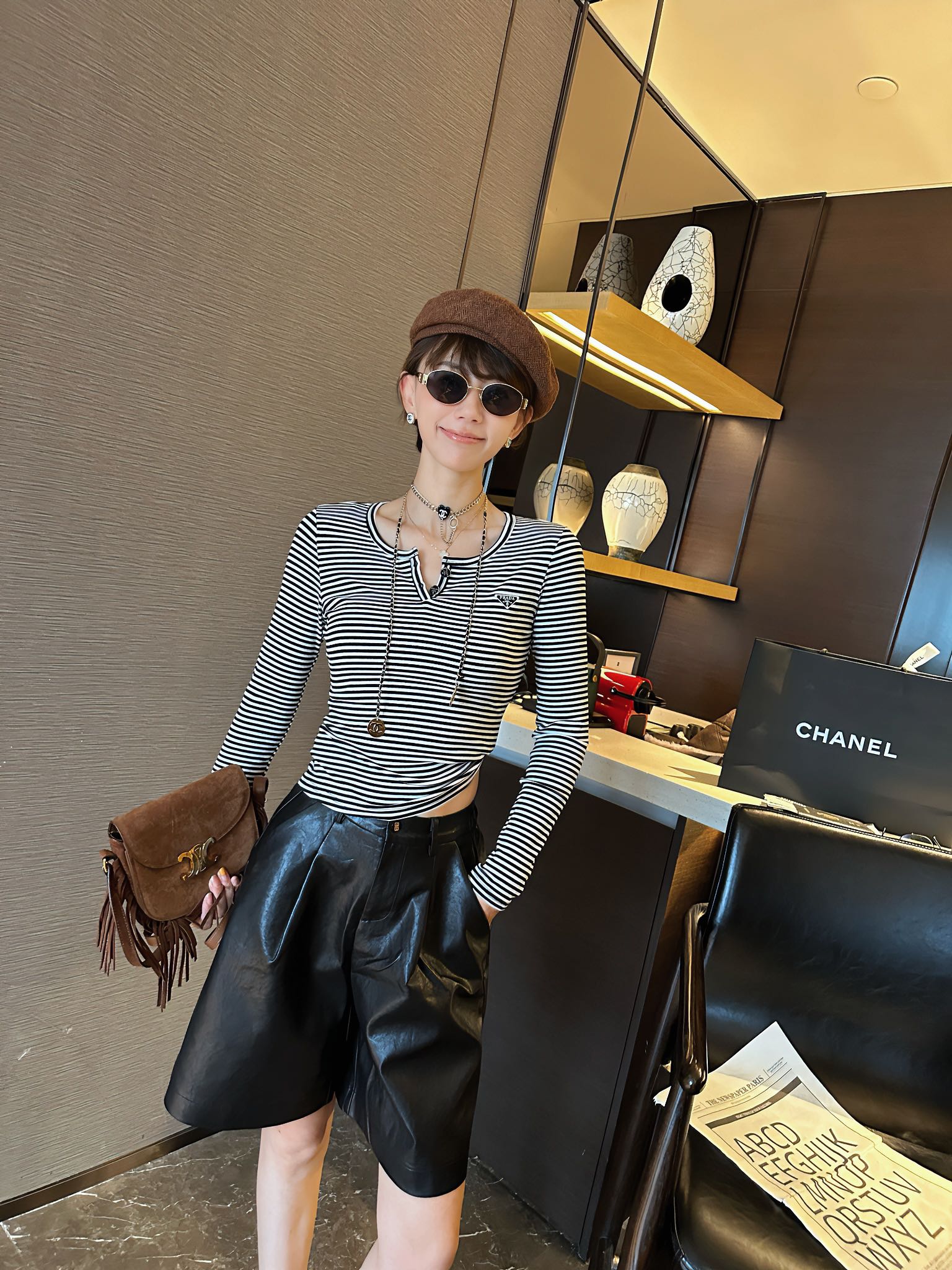 This Prada striped long sleeve top combines style, comfort, and versatility, making it an essential addition to your wardrobe.