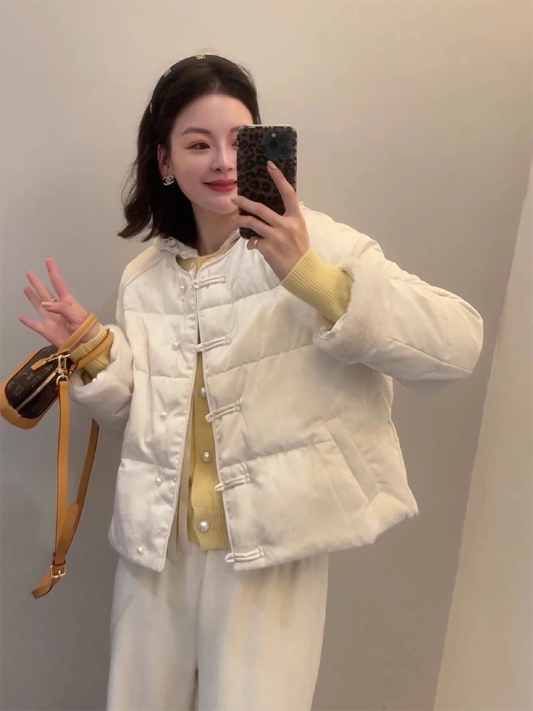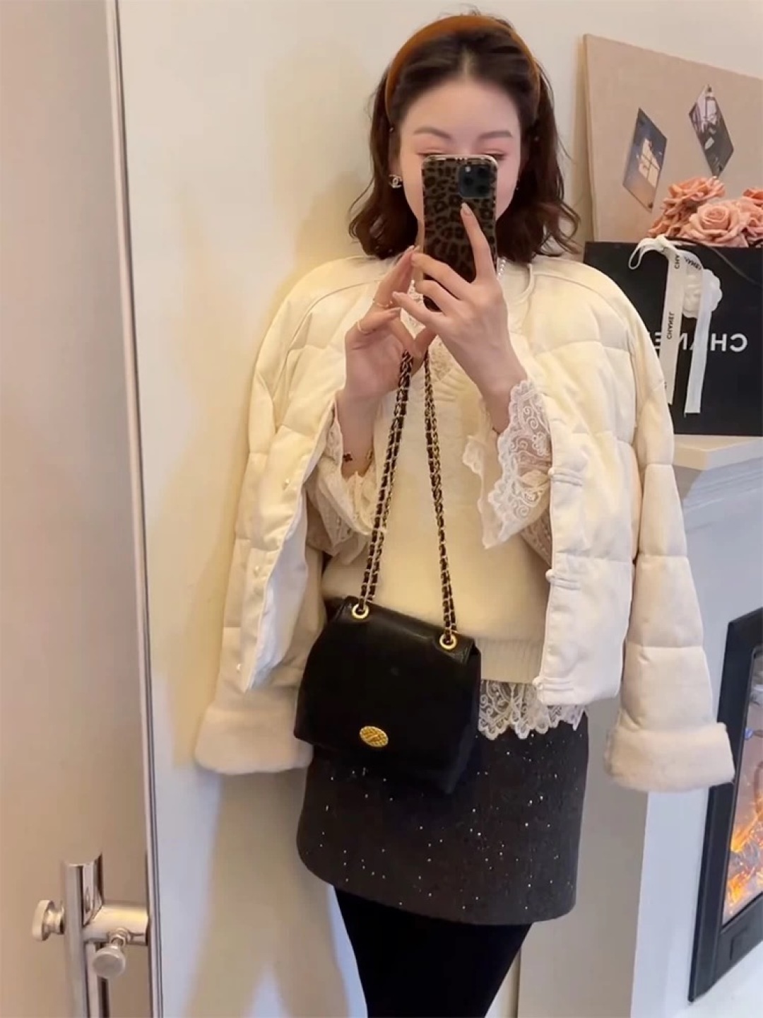 Elegant Quilted Jacket with Mink Fur Trim, Loose Fit, Sizes S-XL