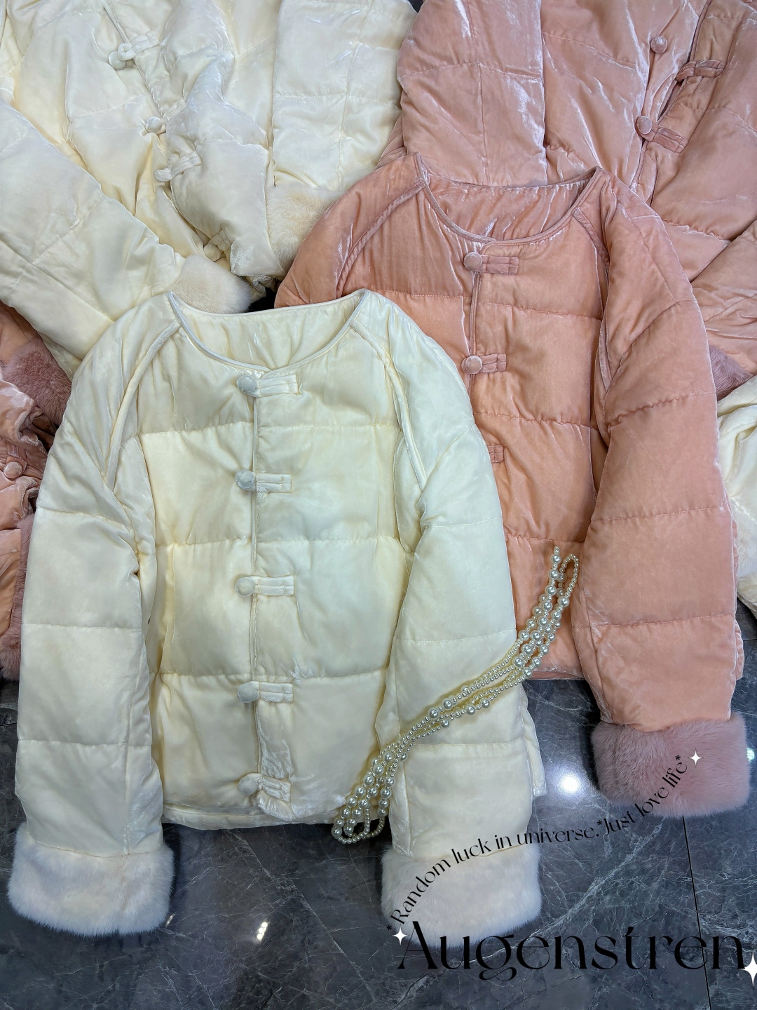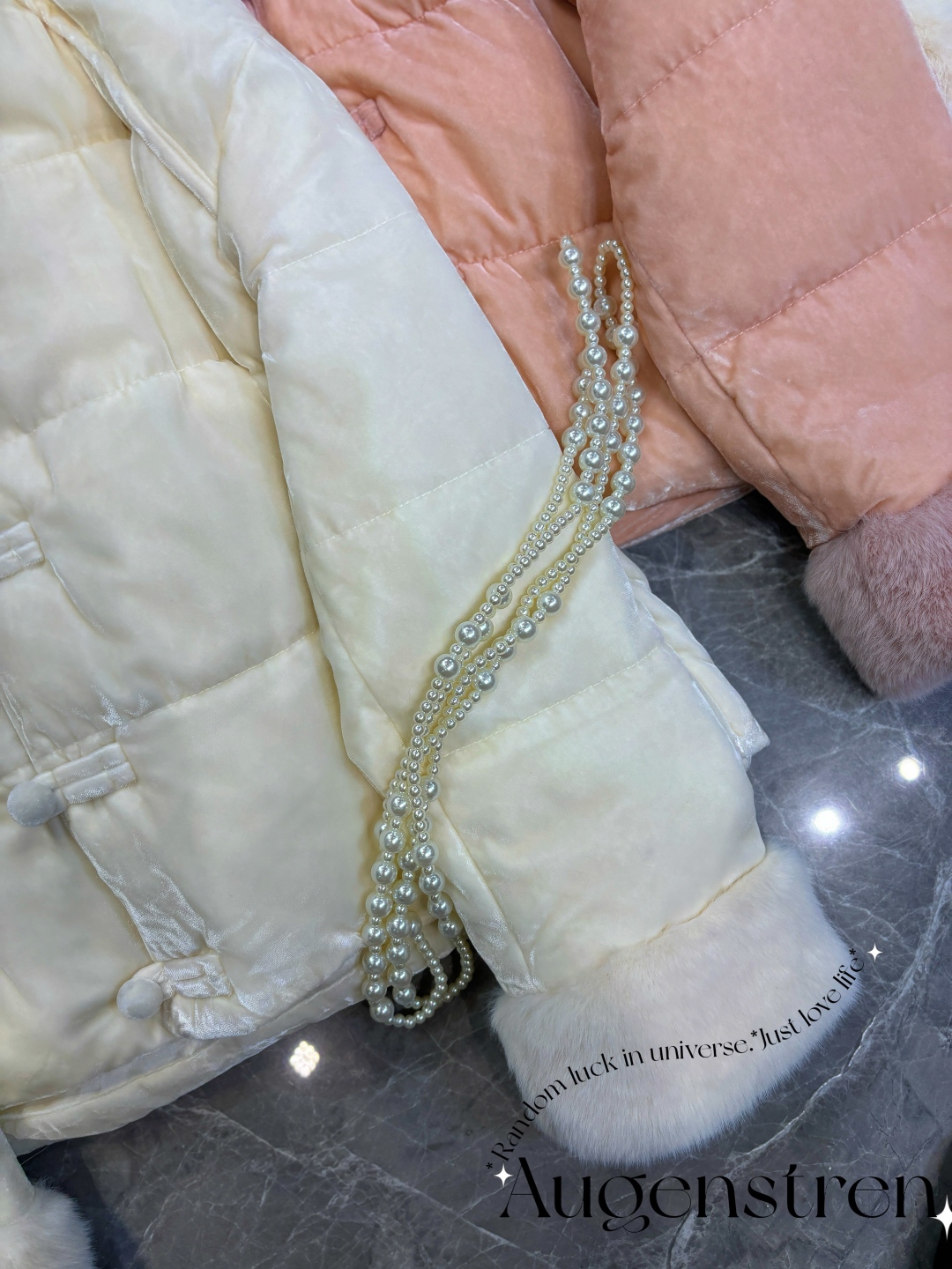 - Material: High-quality quilted fabric, mink fur trim, lace accents
