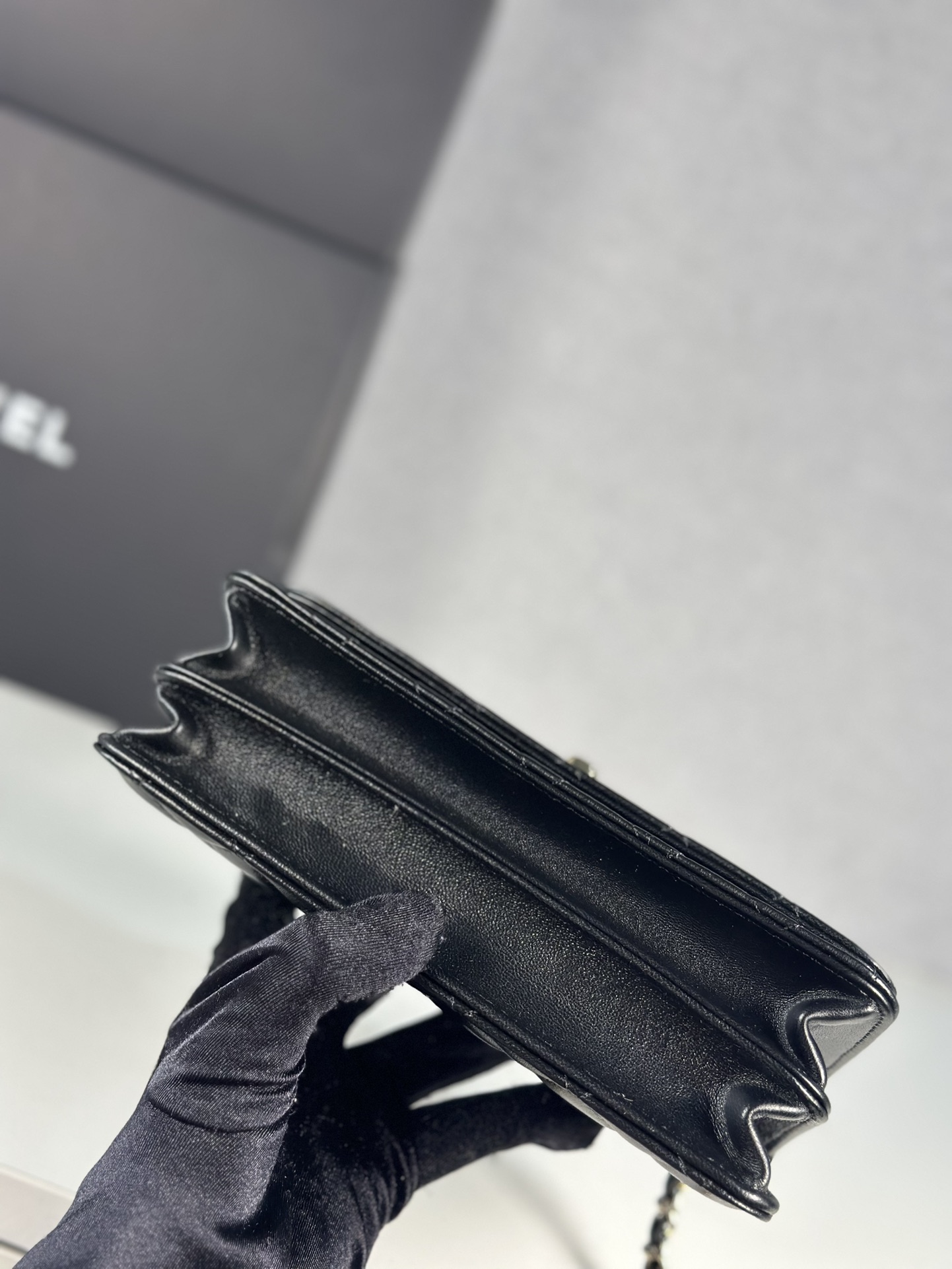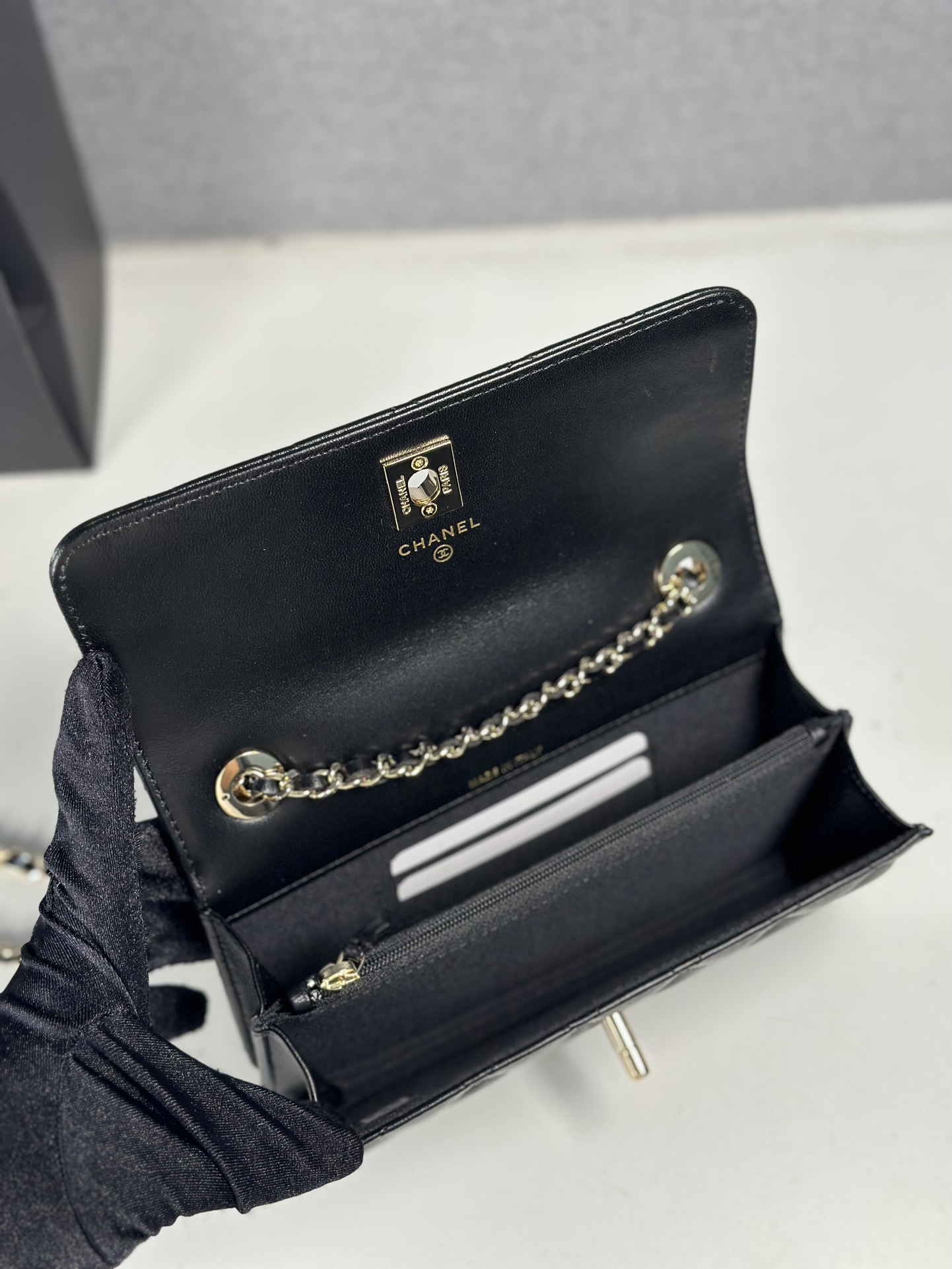 Elevate your style with this chic quilted lambskin flap bag. Compact yet spacious, perfect for everyday essentials. Versatile carrying options.