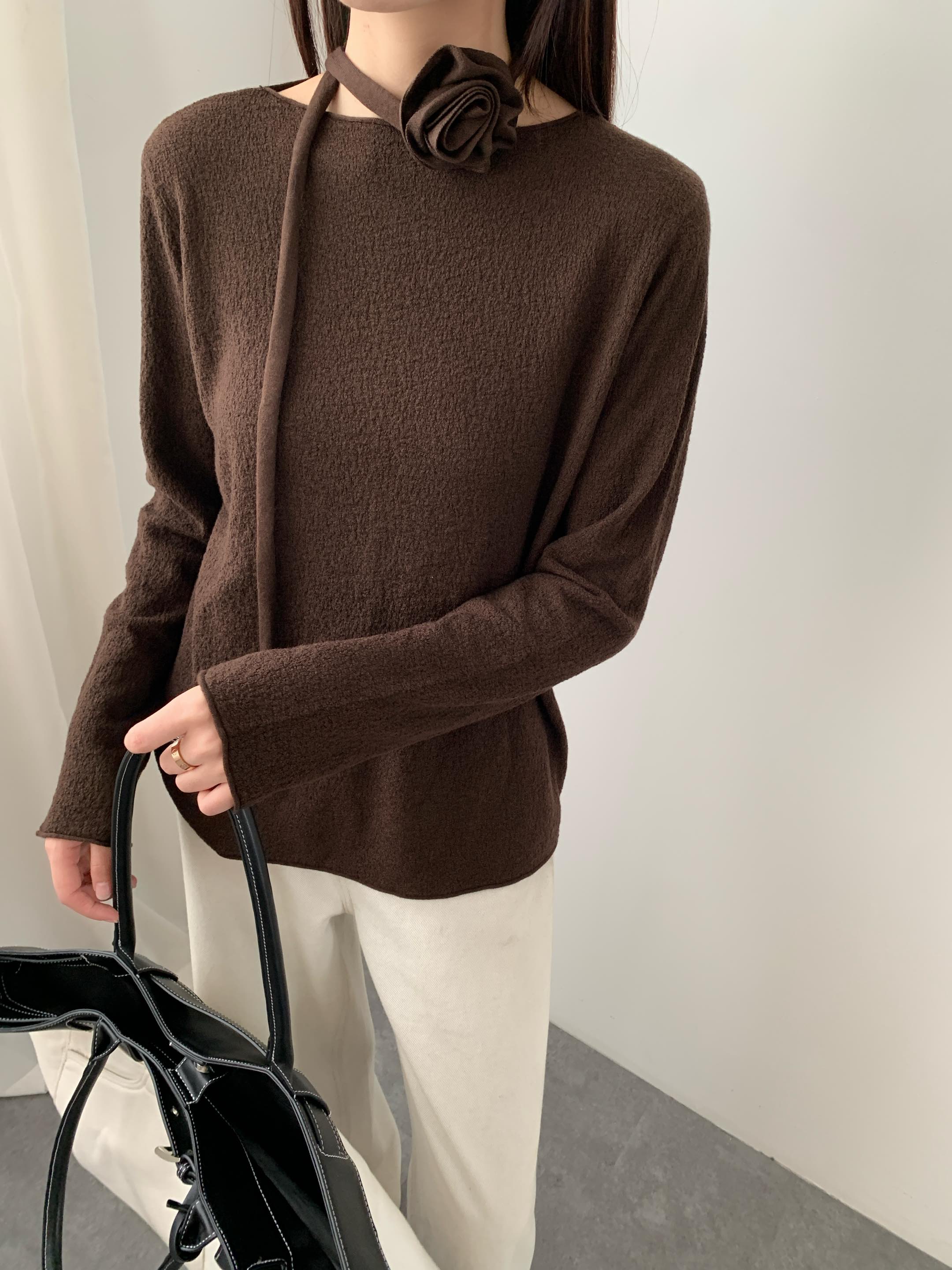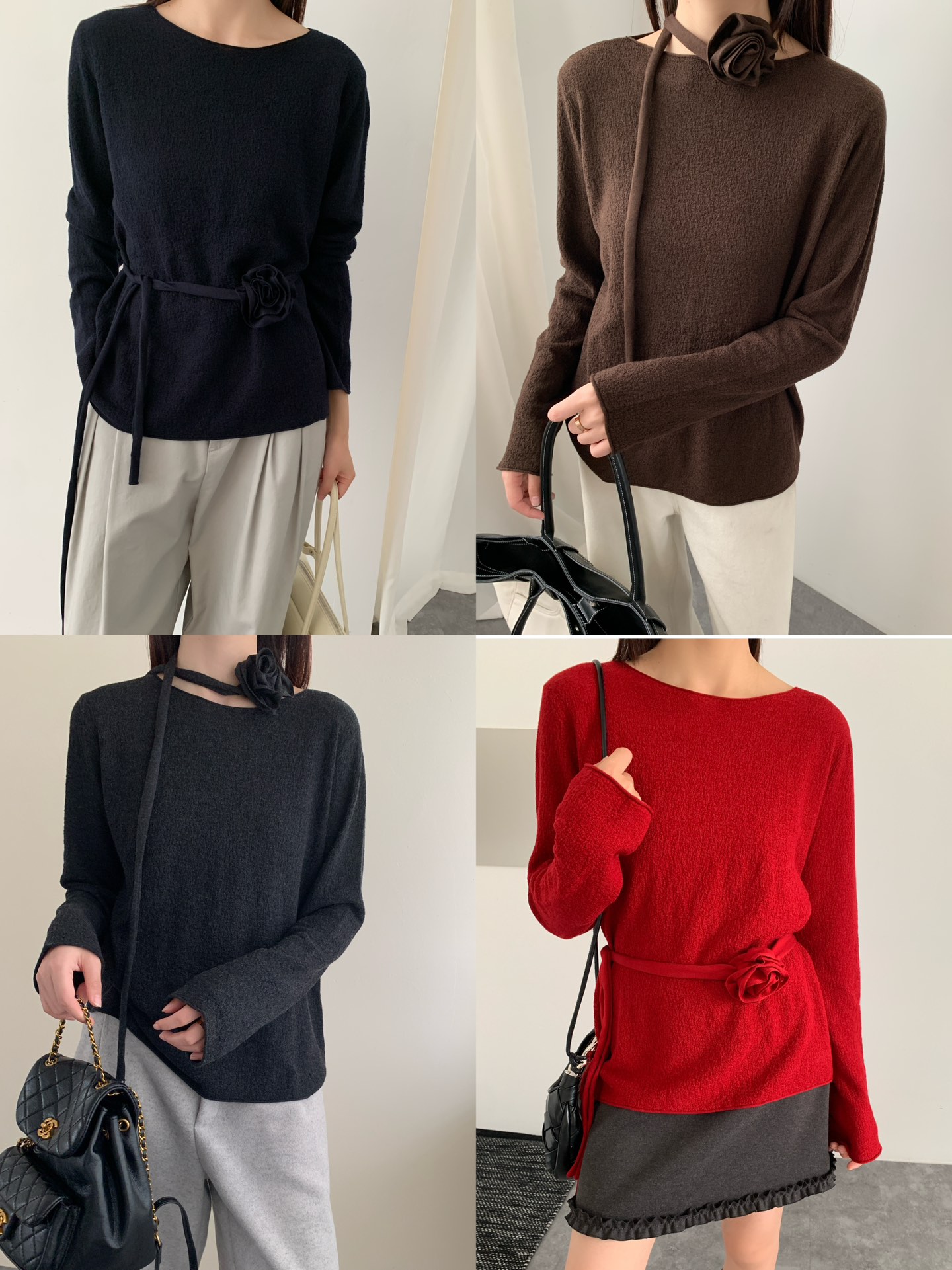 This rose detail knit top is the perfect addition to your wardrobe, offering both style and comfort.