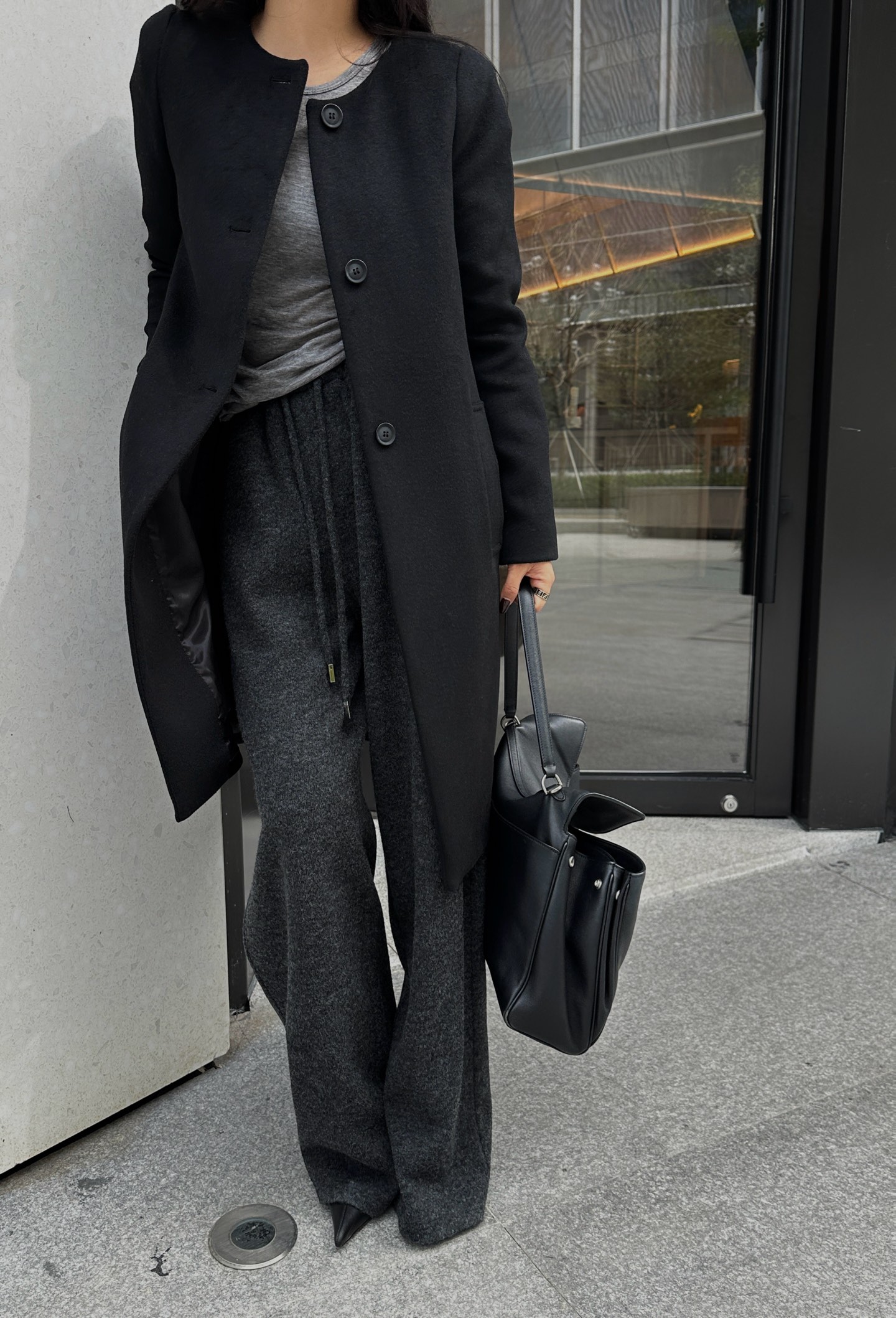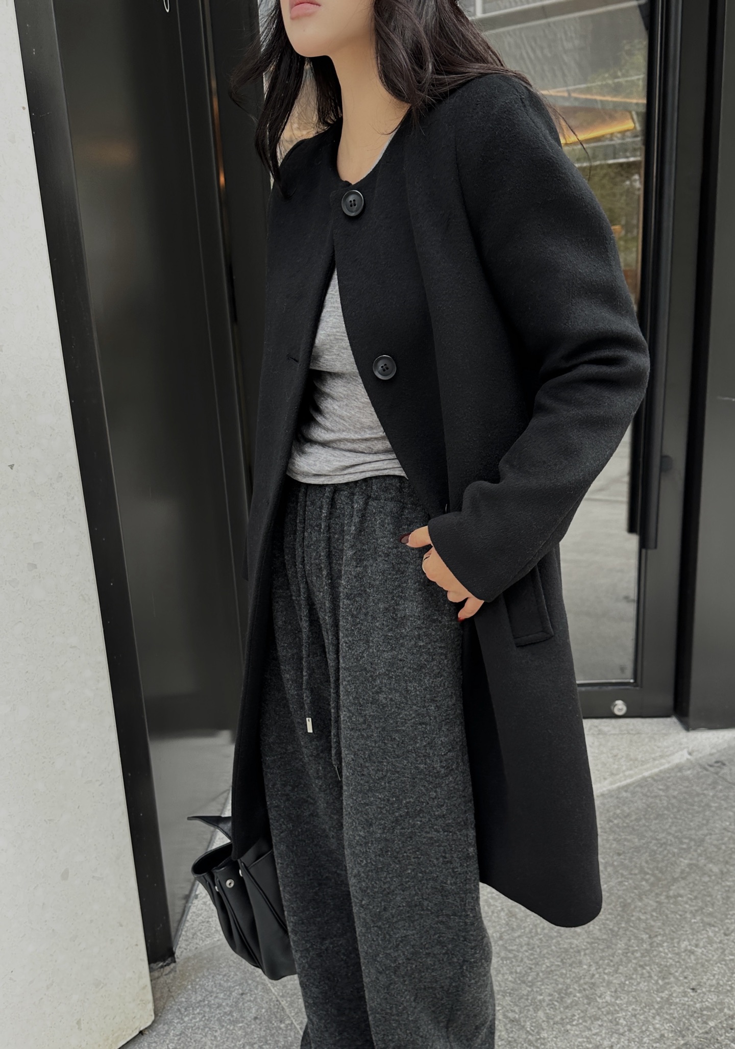 Elevate your outerwear collection with this sophisticated round neck wool coat. Designed with a keen eye for detail, this coat combines classic elegance with modern flair, making it a versatile addition to your wardrobe.
