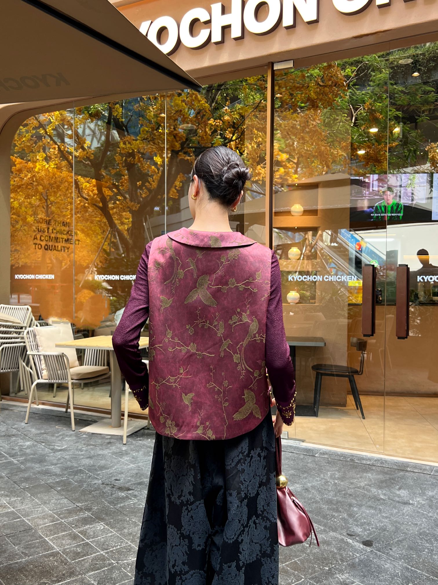 Elevate your wardrobe with this original silk blend vest. Featuring a sophisticated floral print, it's perfect for adding a touch of elegance to any outfit.