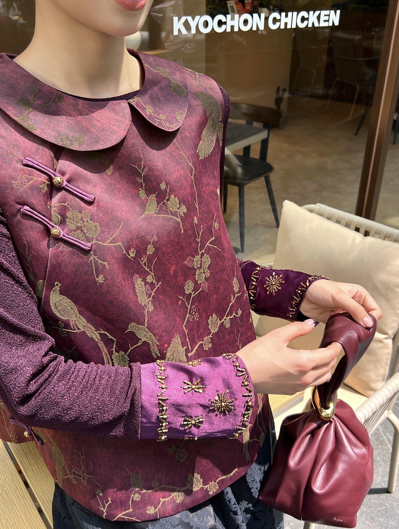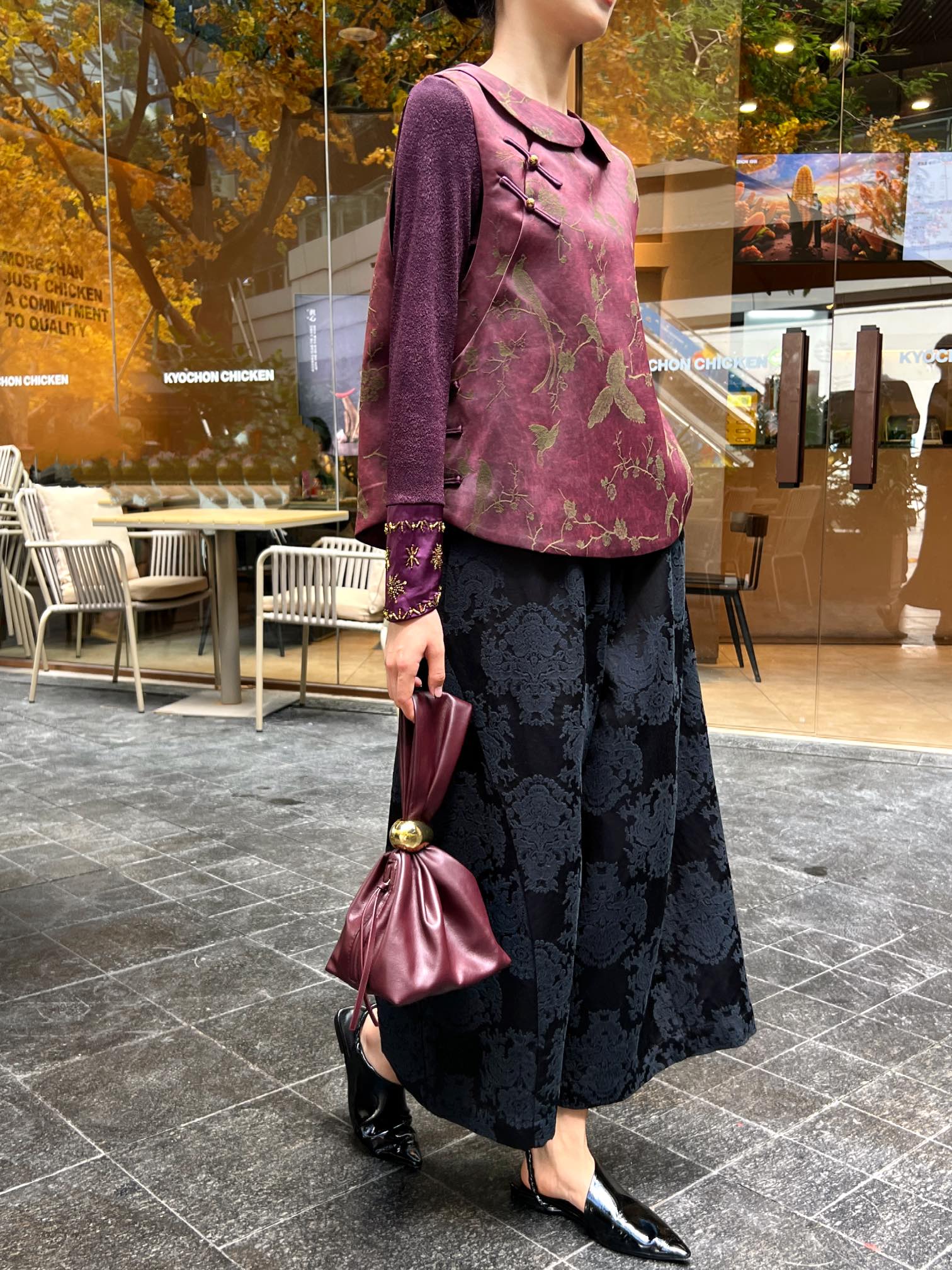 This silk blend vest is a versatile addition to any wardrobe. Its unique floral print and elegant design make it suitable for various occasions, from casual outings to more formal events.