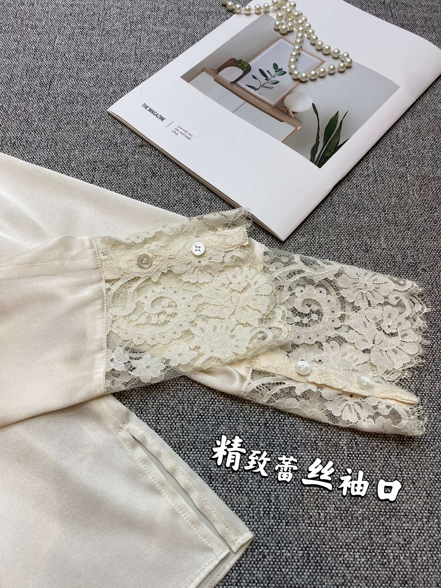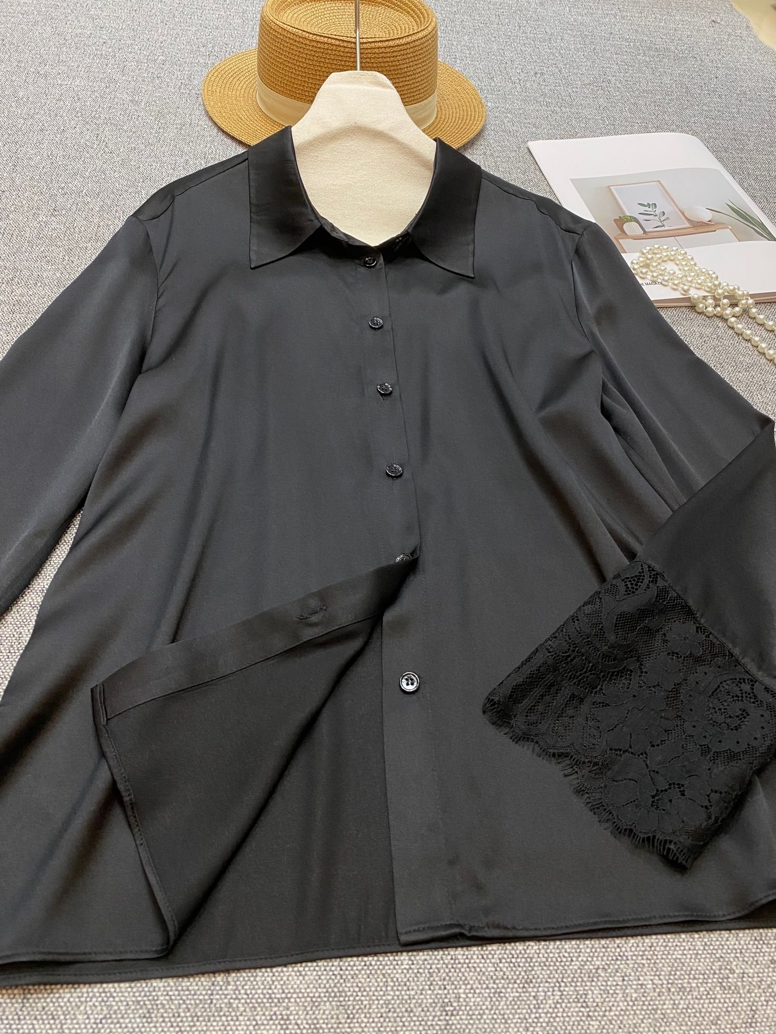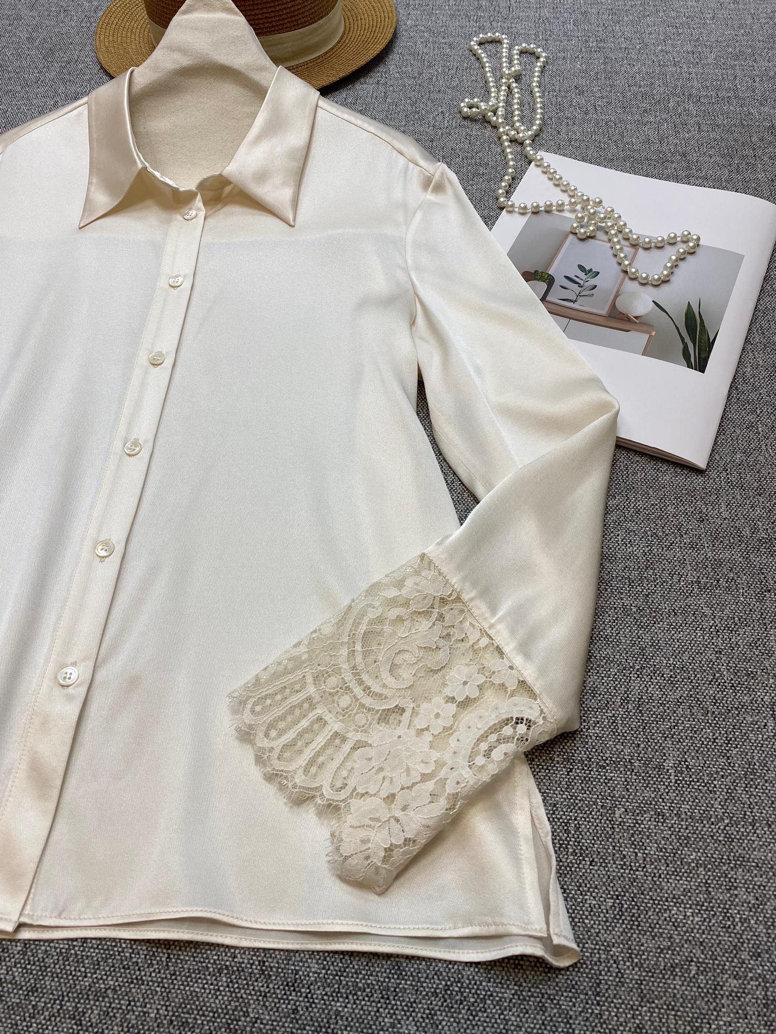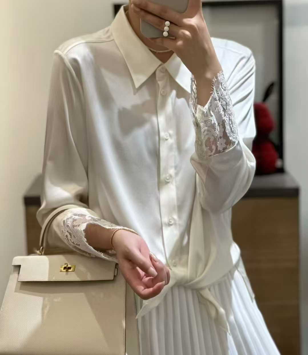 Elegant Silk Blouse with Lace Trim Long Sleeves - Versatile Women's Shirt