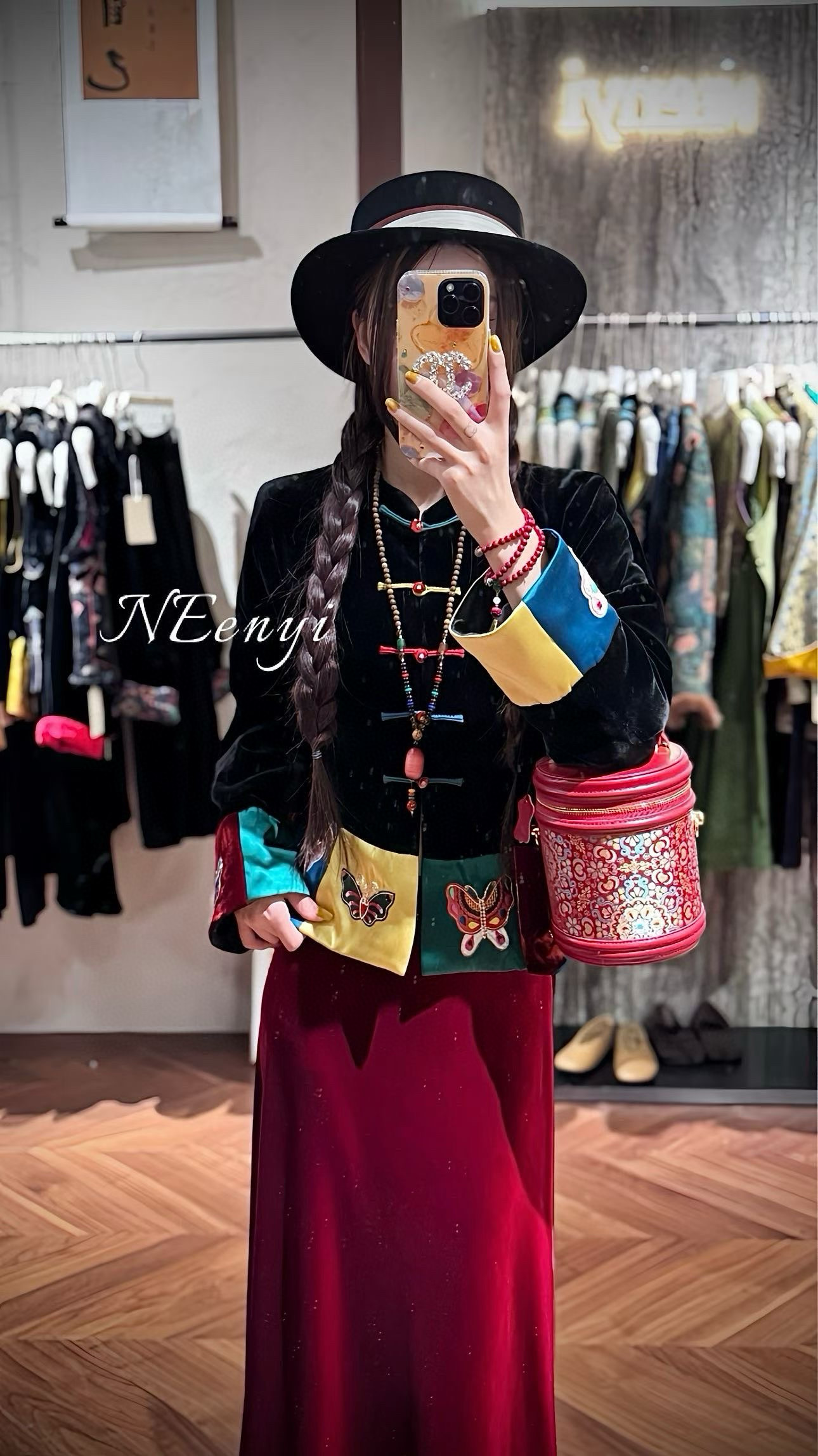 Tags: Autumn Winter Outerwear, Chinese Style Clothing, Color Block Jacket, Embroidered Coat, Silk Velvet Jacket