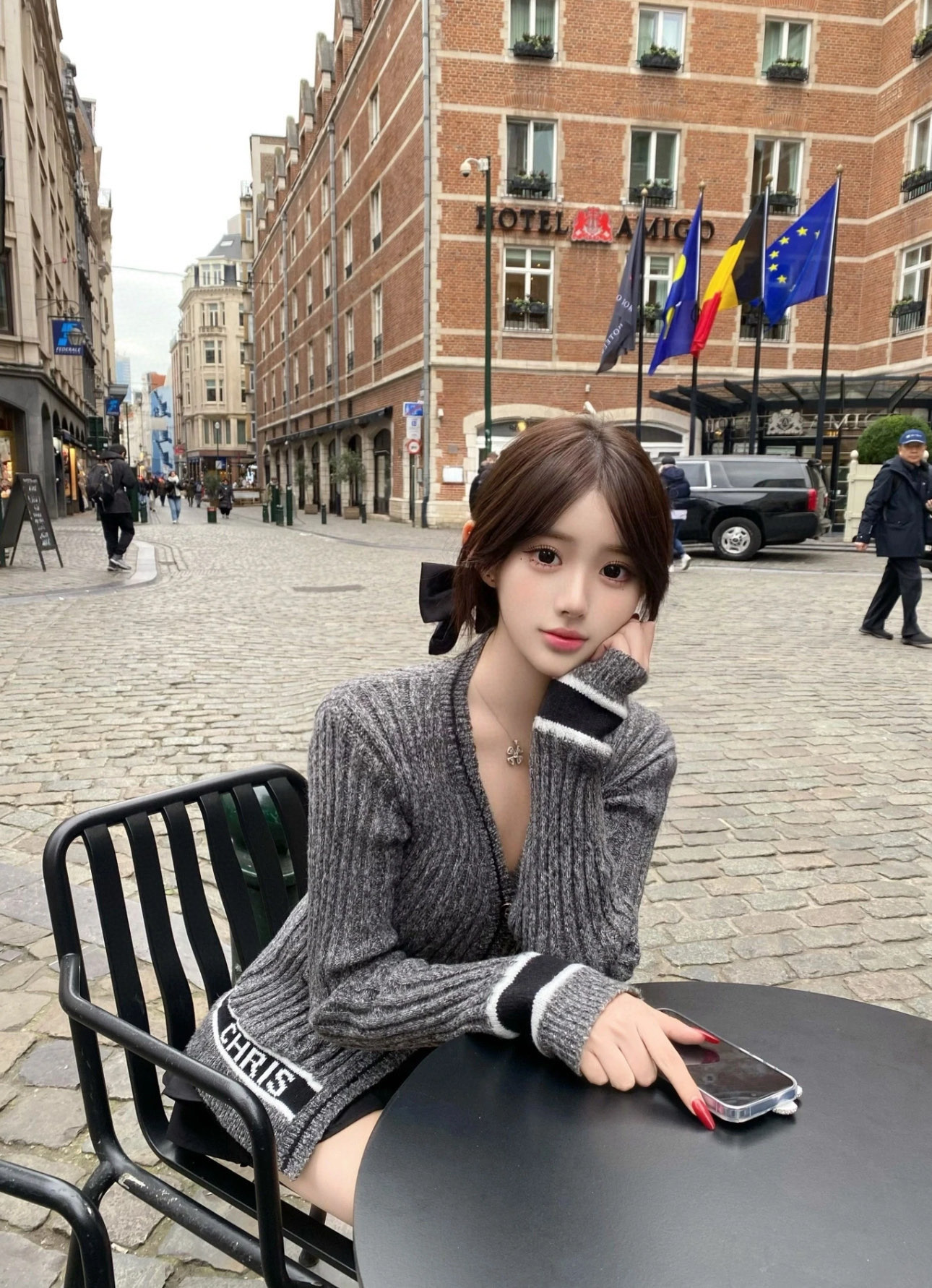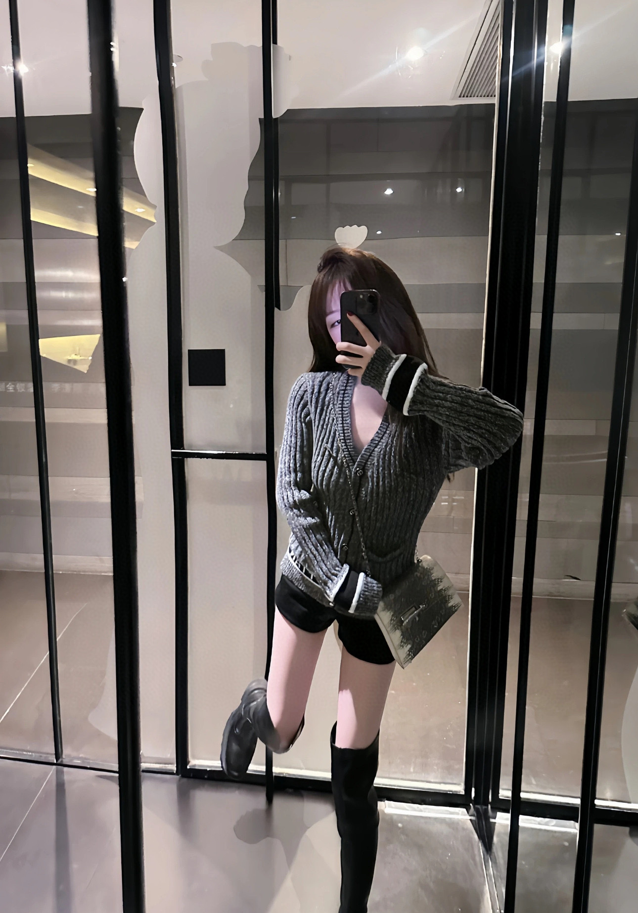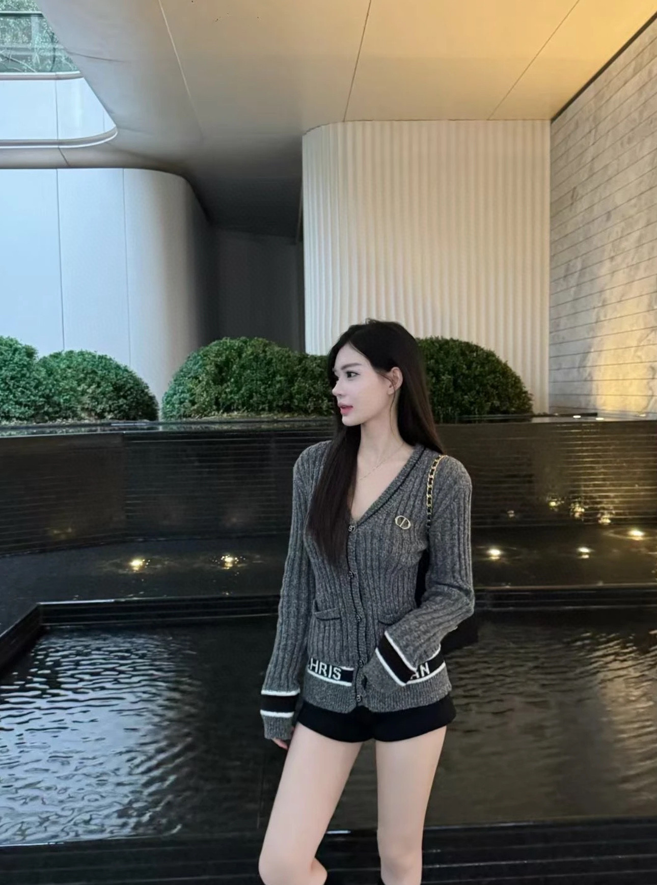 This silver gray V-neck knit cardigan exudes elegance and sophistication. Its unique design and high-quality construction make it a must-have addition to any wardrobe.