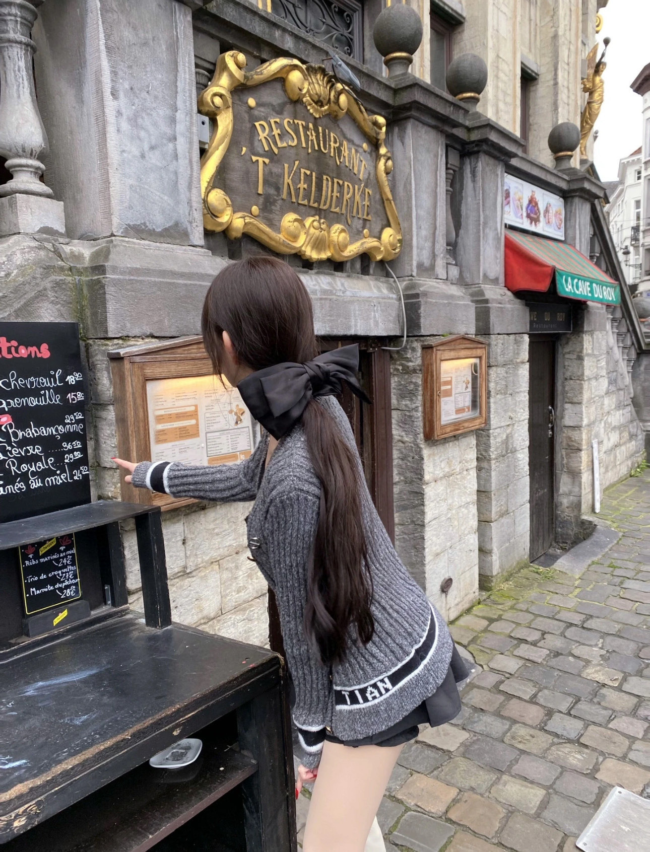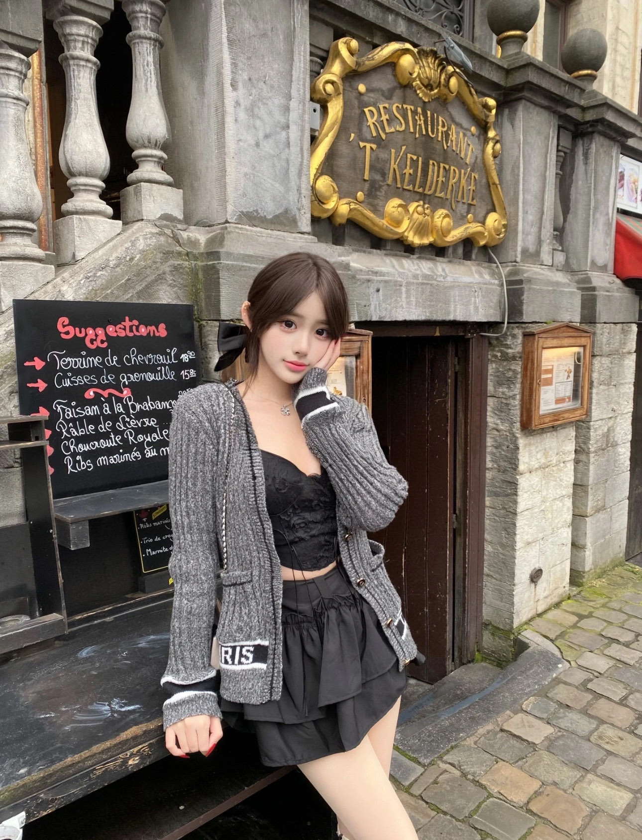 Elegant Silver Gray V-Neck Knit Cardigan with Retro Cuffs for Women
