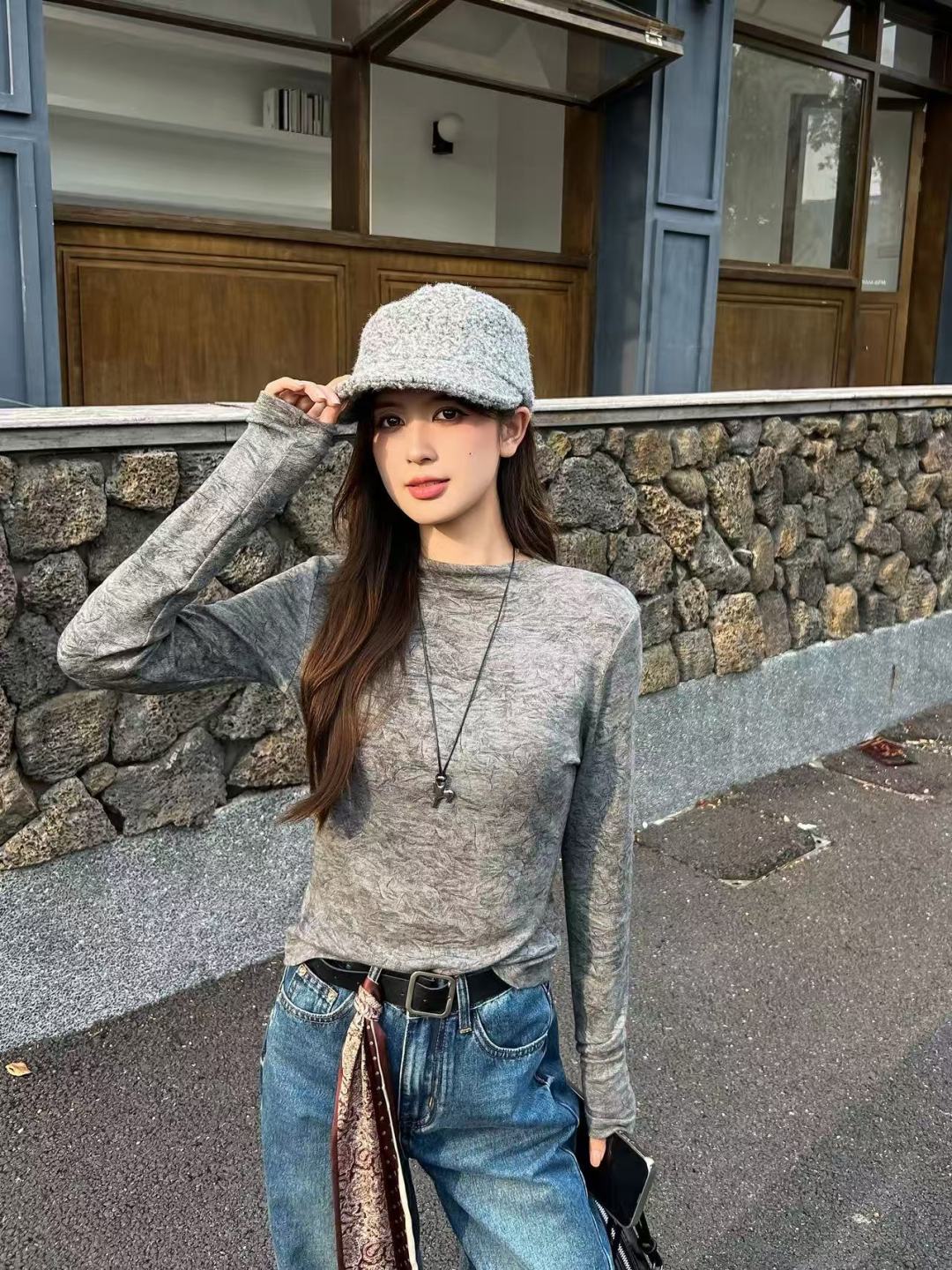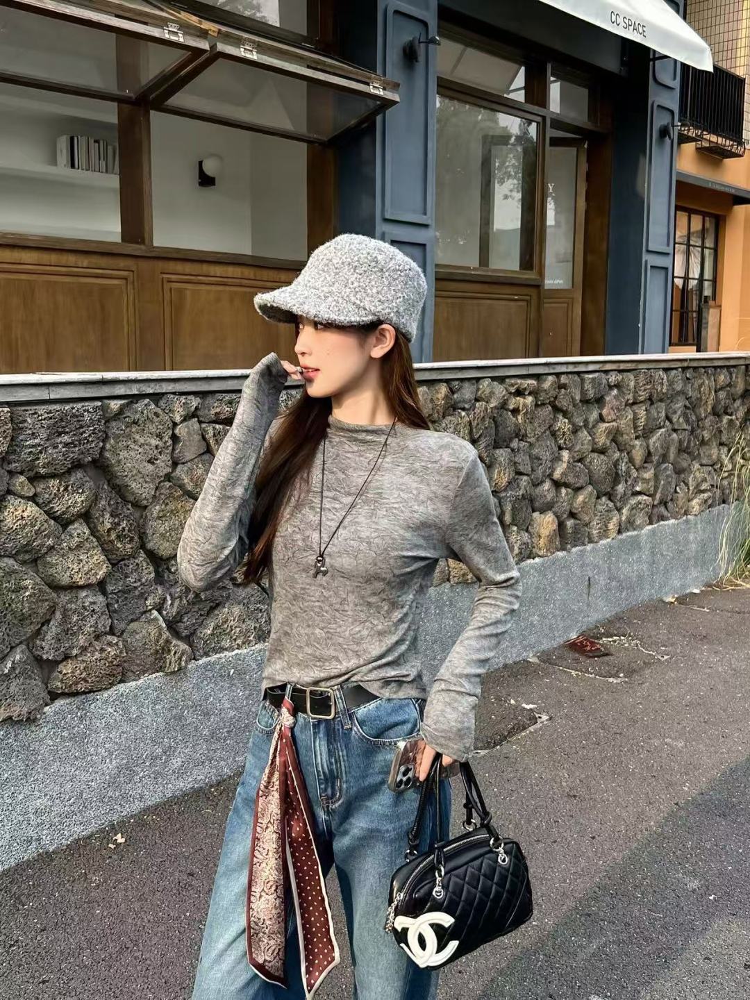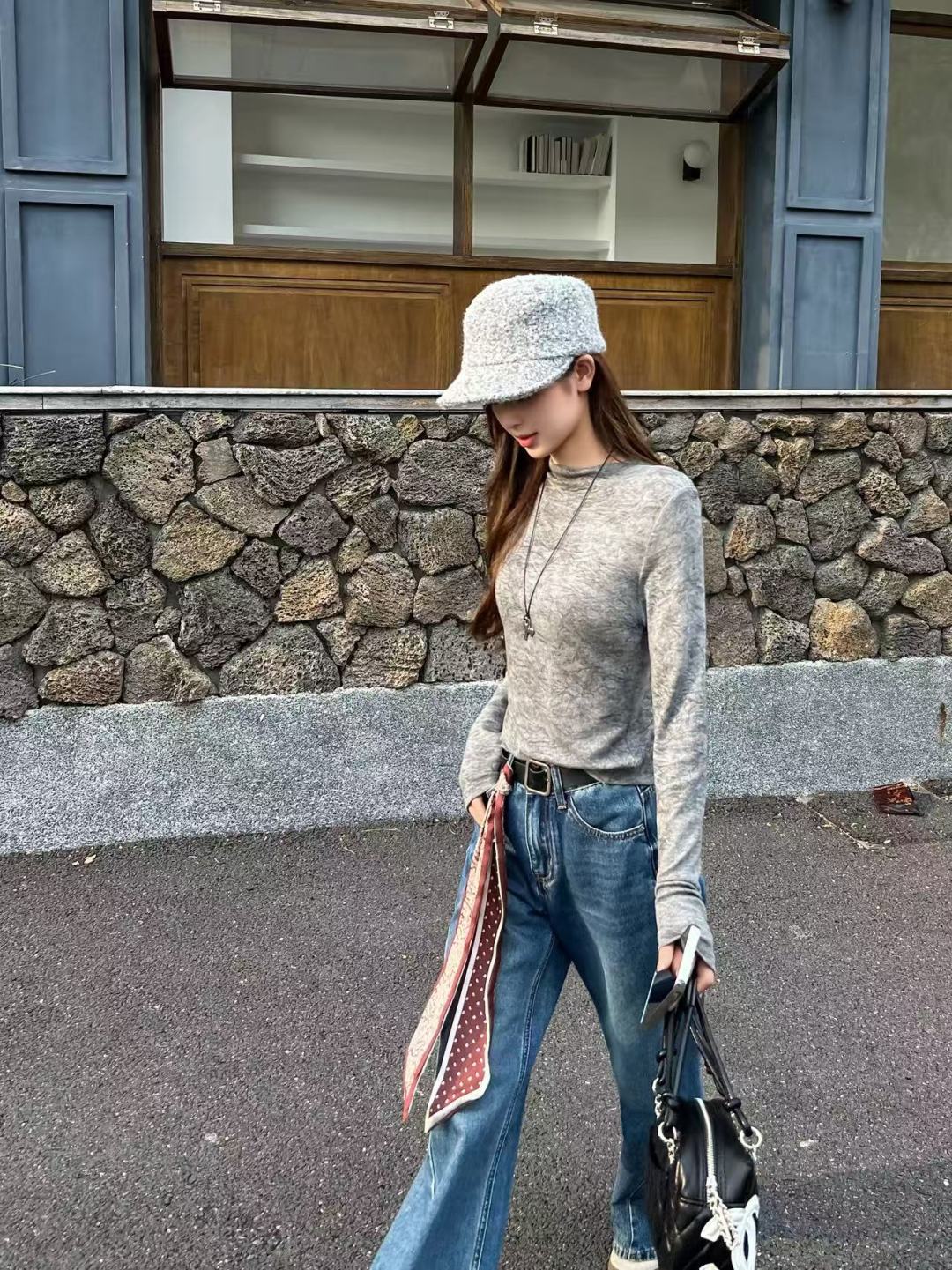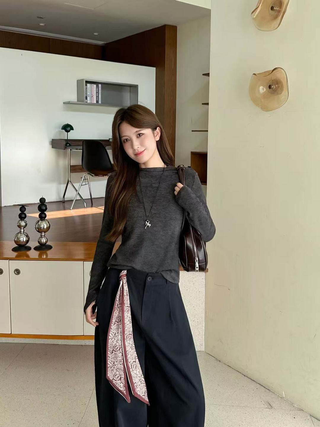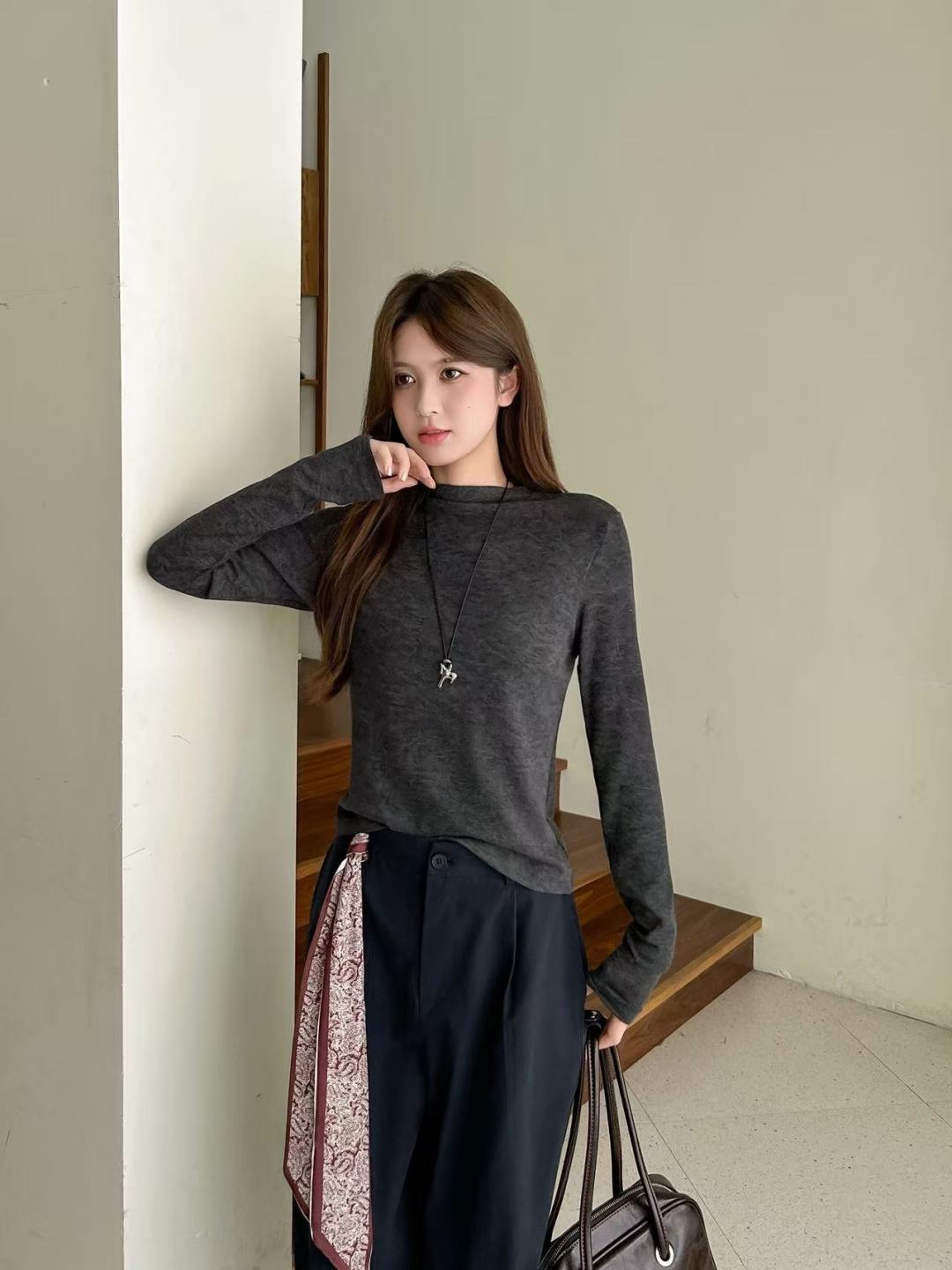 This elegant long-sleeve top features a flattering half-high collar and a slim fit, making it a versatile addition to any wardrobe.
