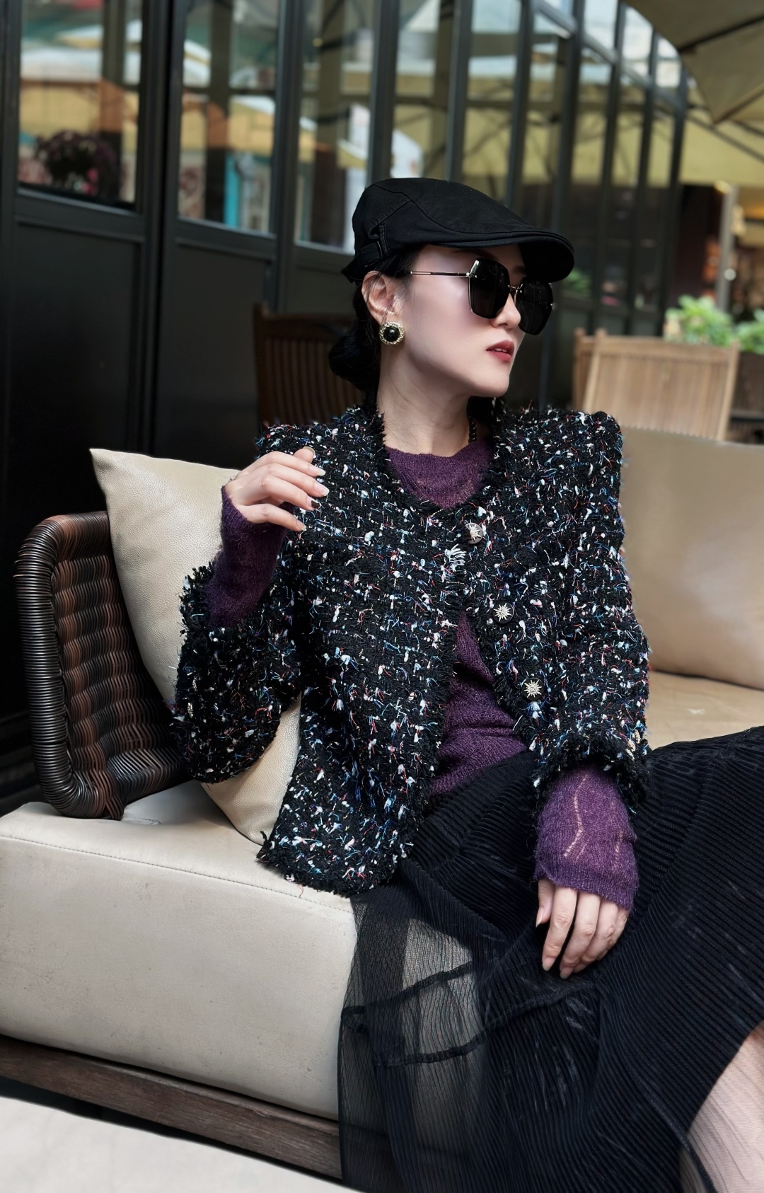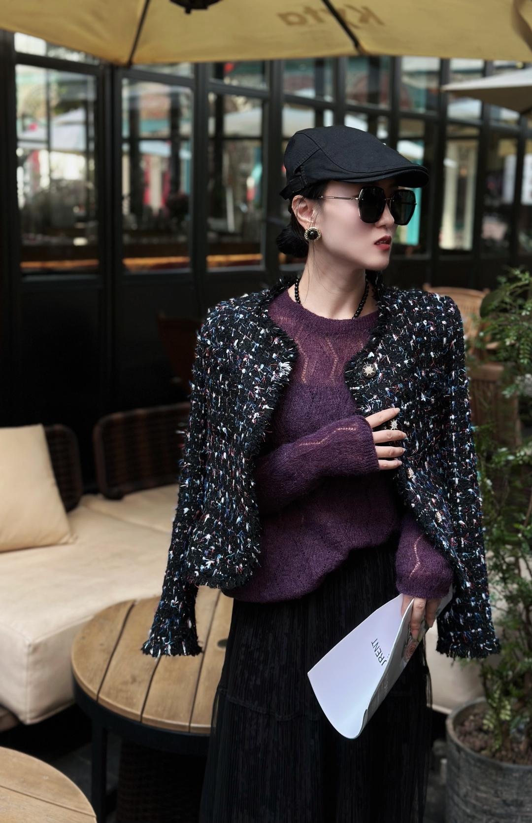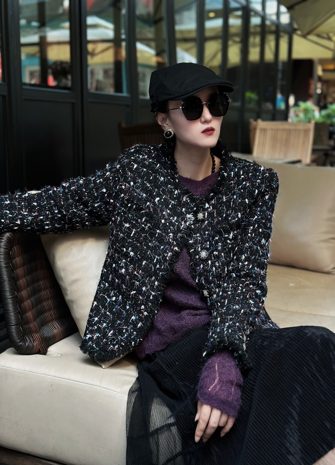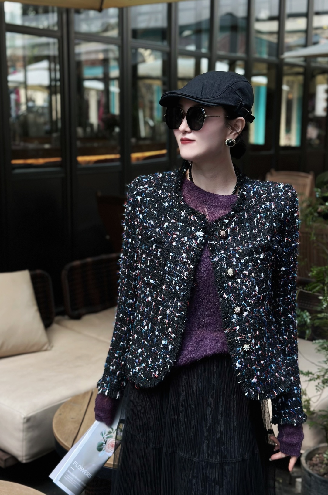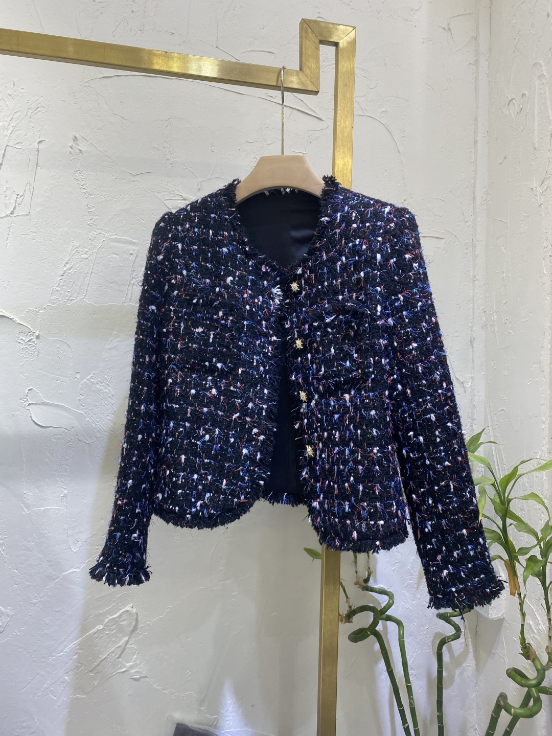 This tweed Chanel style jacket is a must-have addition to your wardrobe, blending classic design with modern comfort.