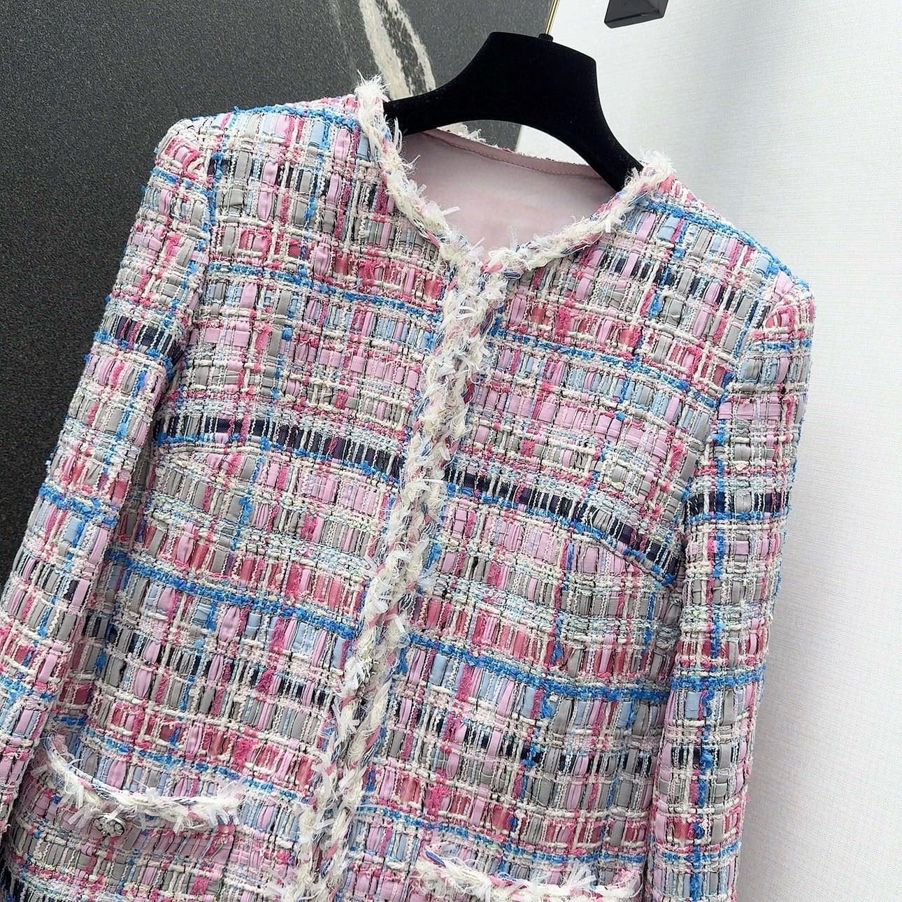 Elegant Tweed Jacket, Stylish Outerwear for Women, Pink and Blue, S-L Sizes