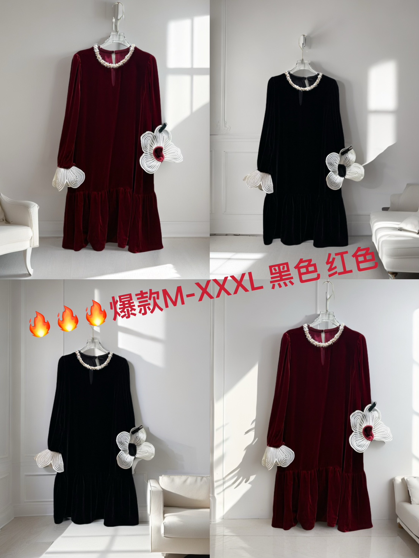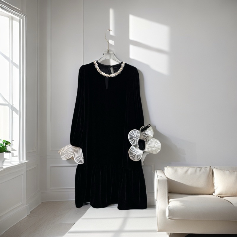 With its timeless design and exquisite details, this velvet dress is a must-have addition to your collection. Perfect for both casual and formal events.