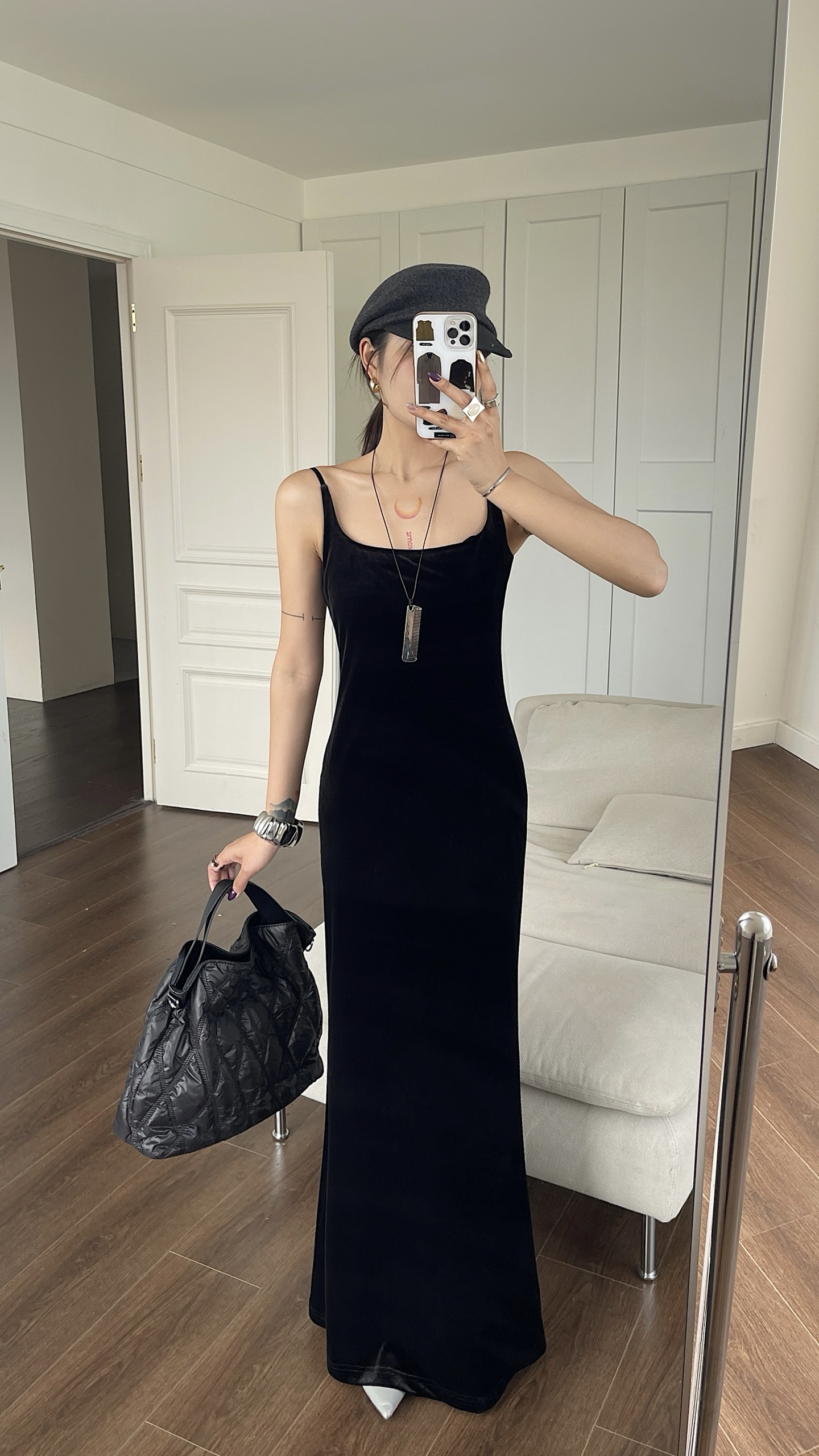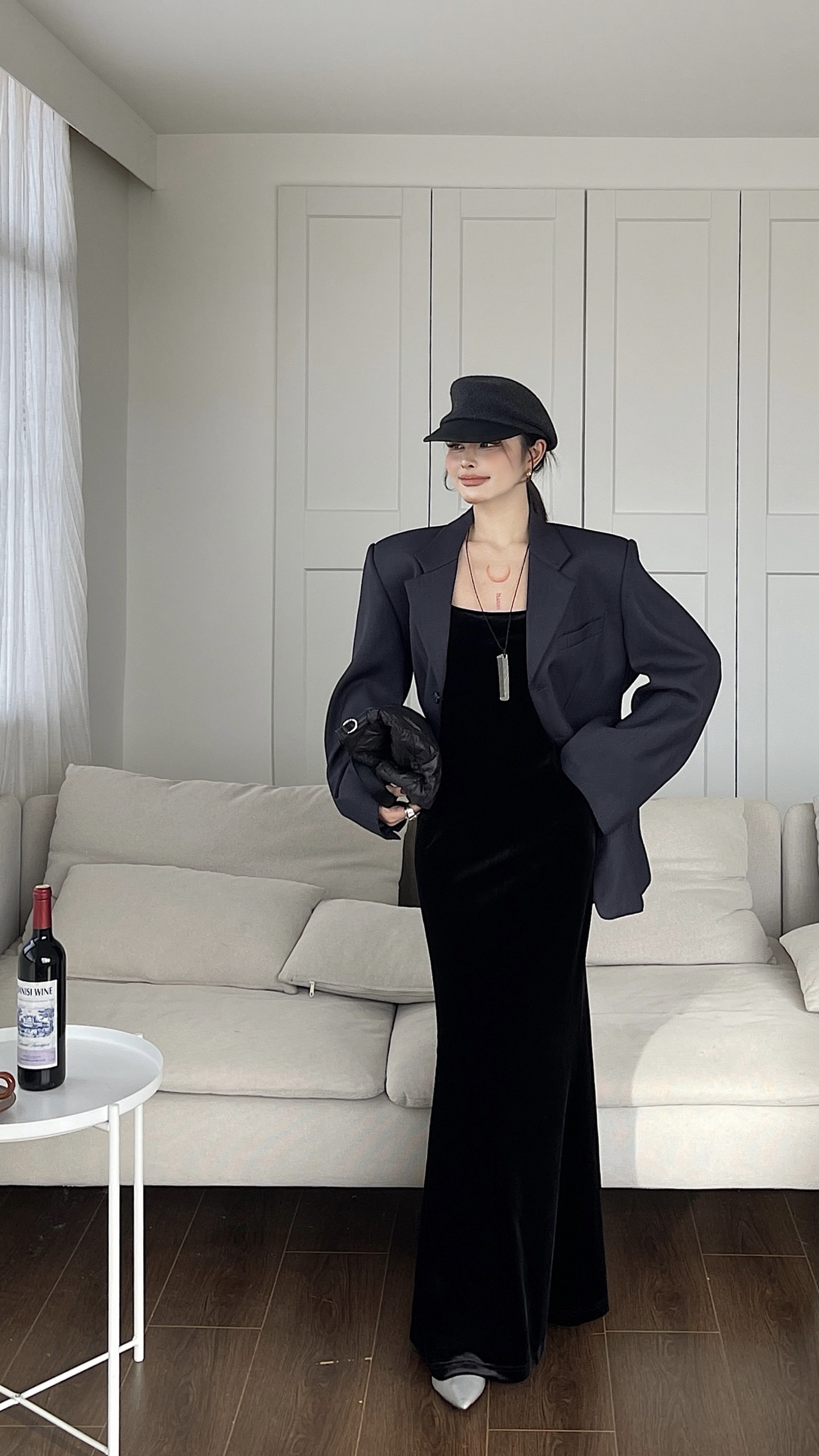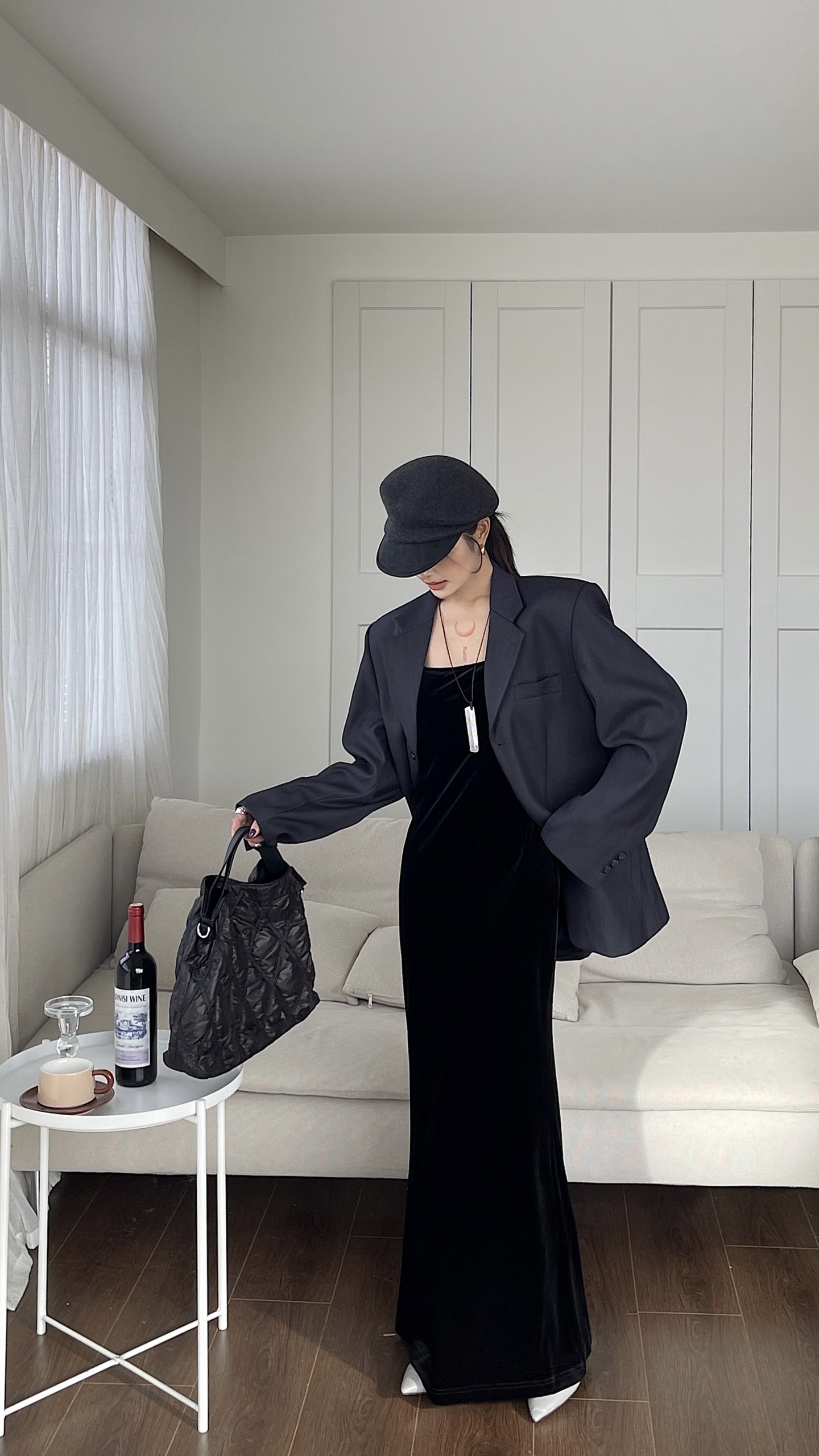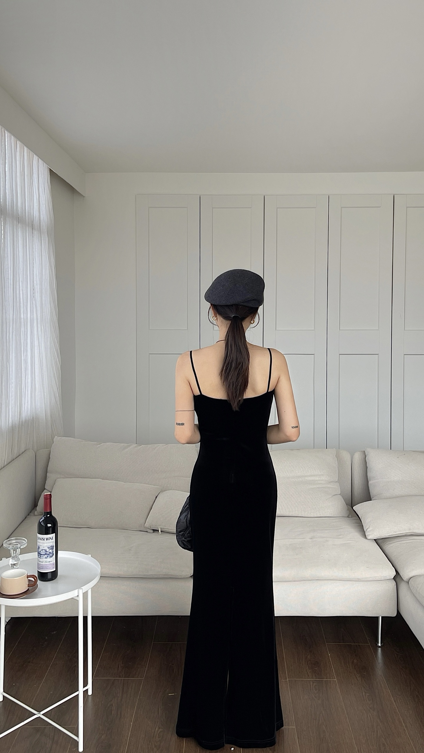 With its timeless design and comfortable fit, this velvet slip dress is a must-have addition to any fashion-forward wardrobe.