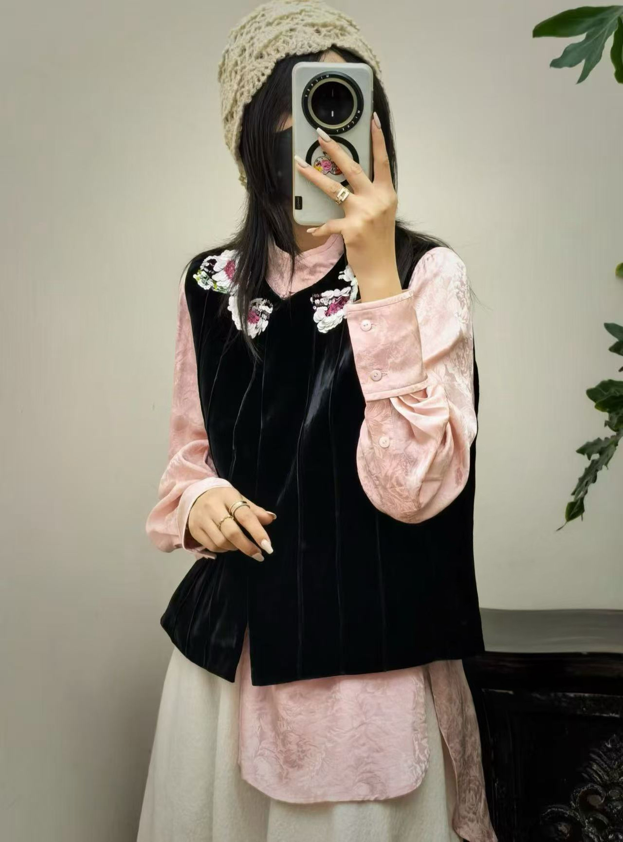 This velvet vest is a must-have for the fashion-forward woman who appreciates quality and style. Its timeless design and exquisite detailing will make it a cherished piece in your wardrobe for years to come.
