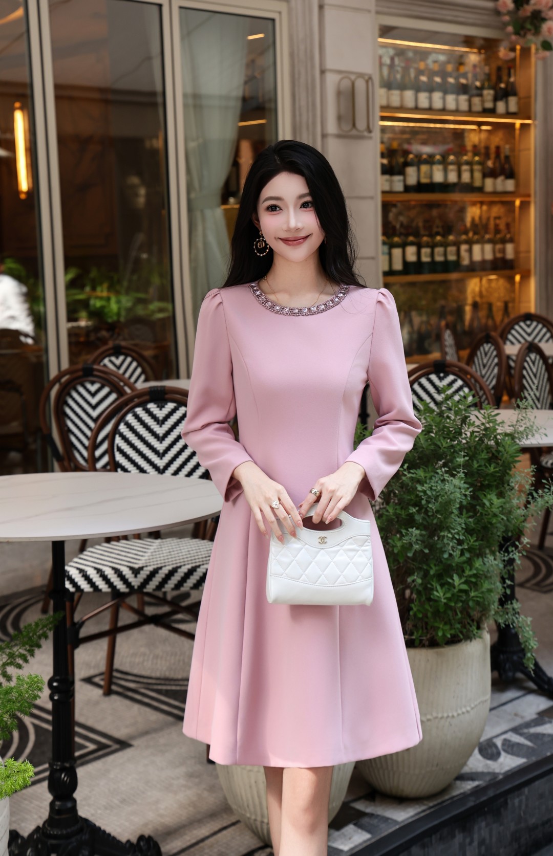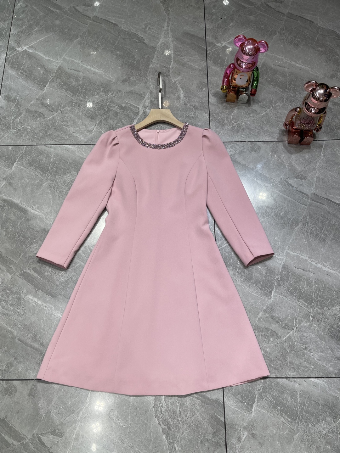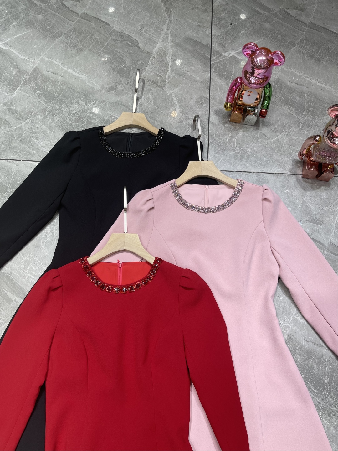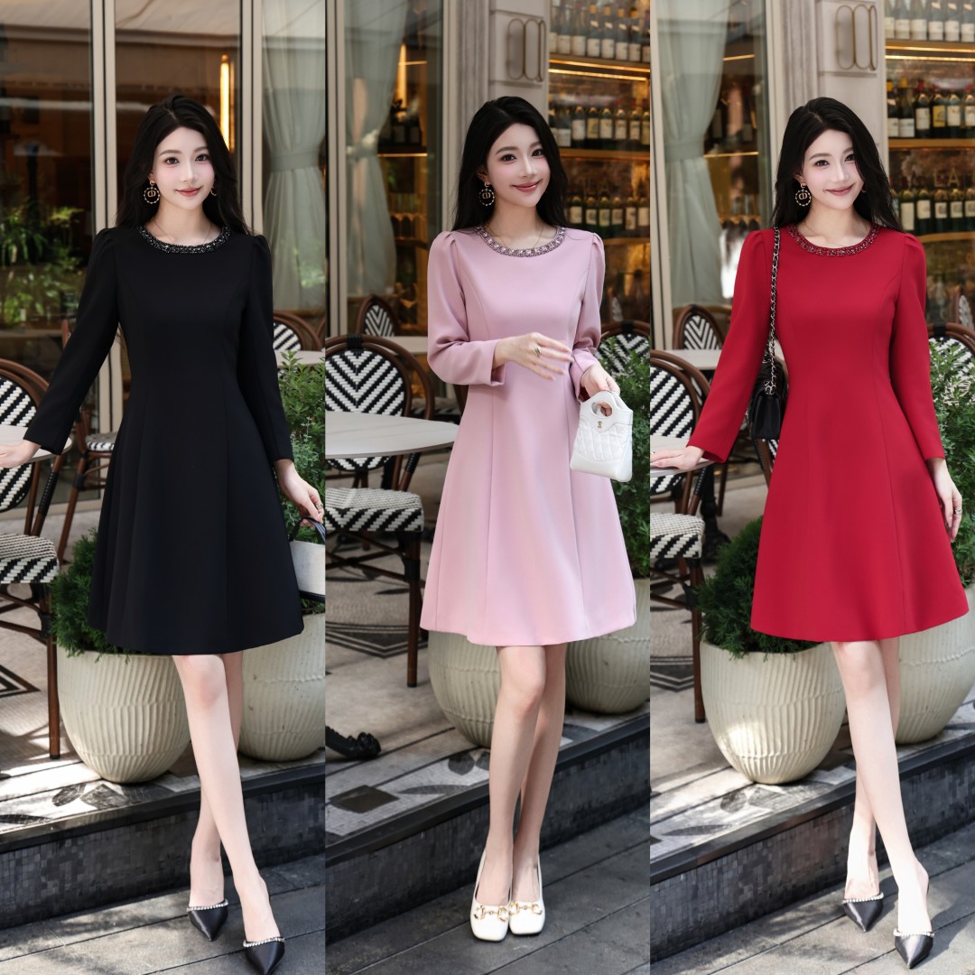 Elevate your style with this chic A-line dress, featuring a beaded round neck, long sleeves and flattering silhouette. Available in multiple colors and sizes.