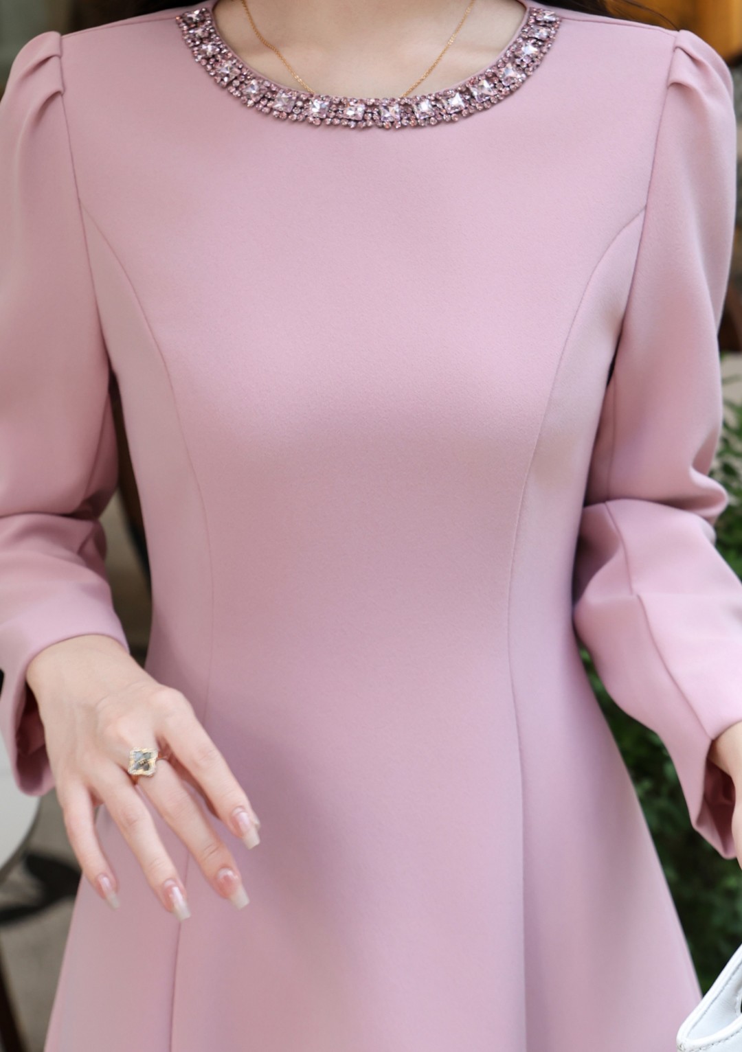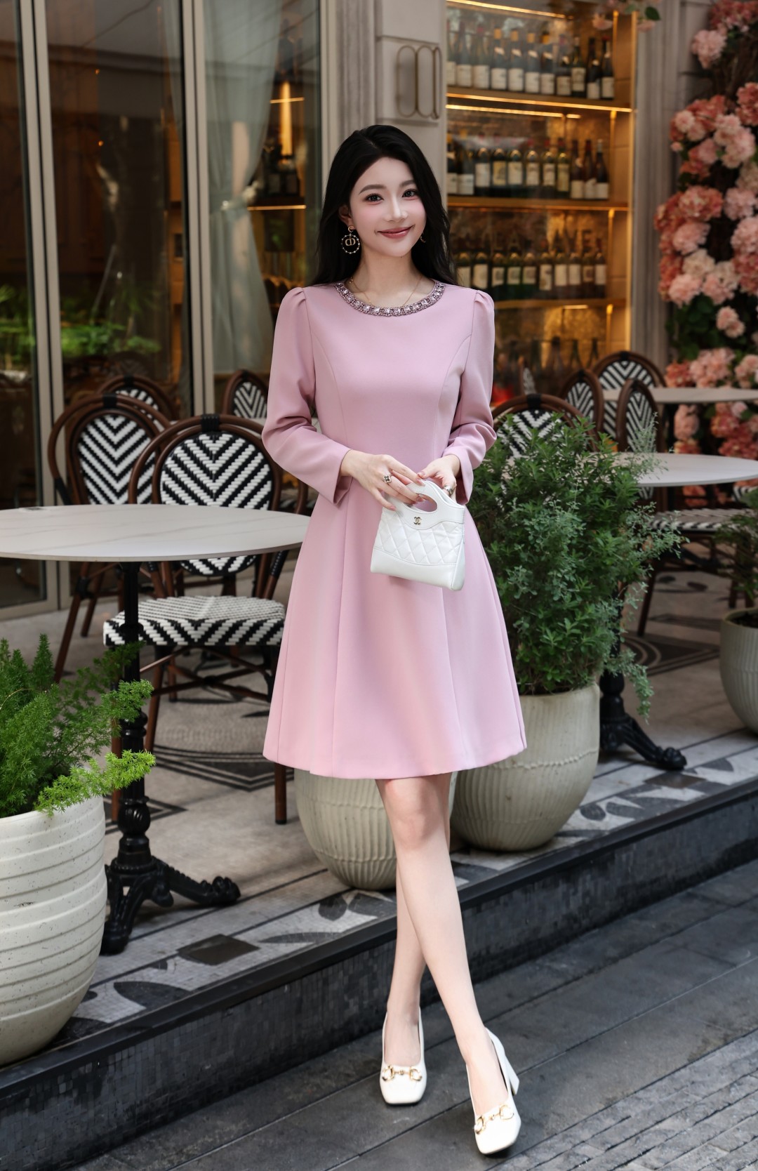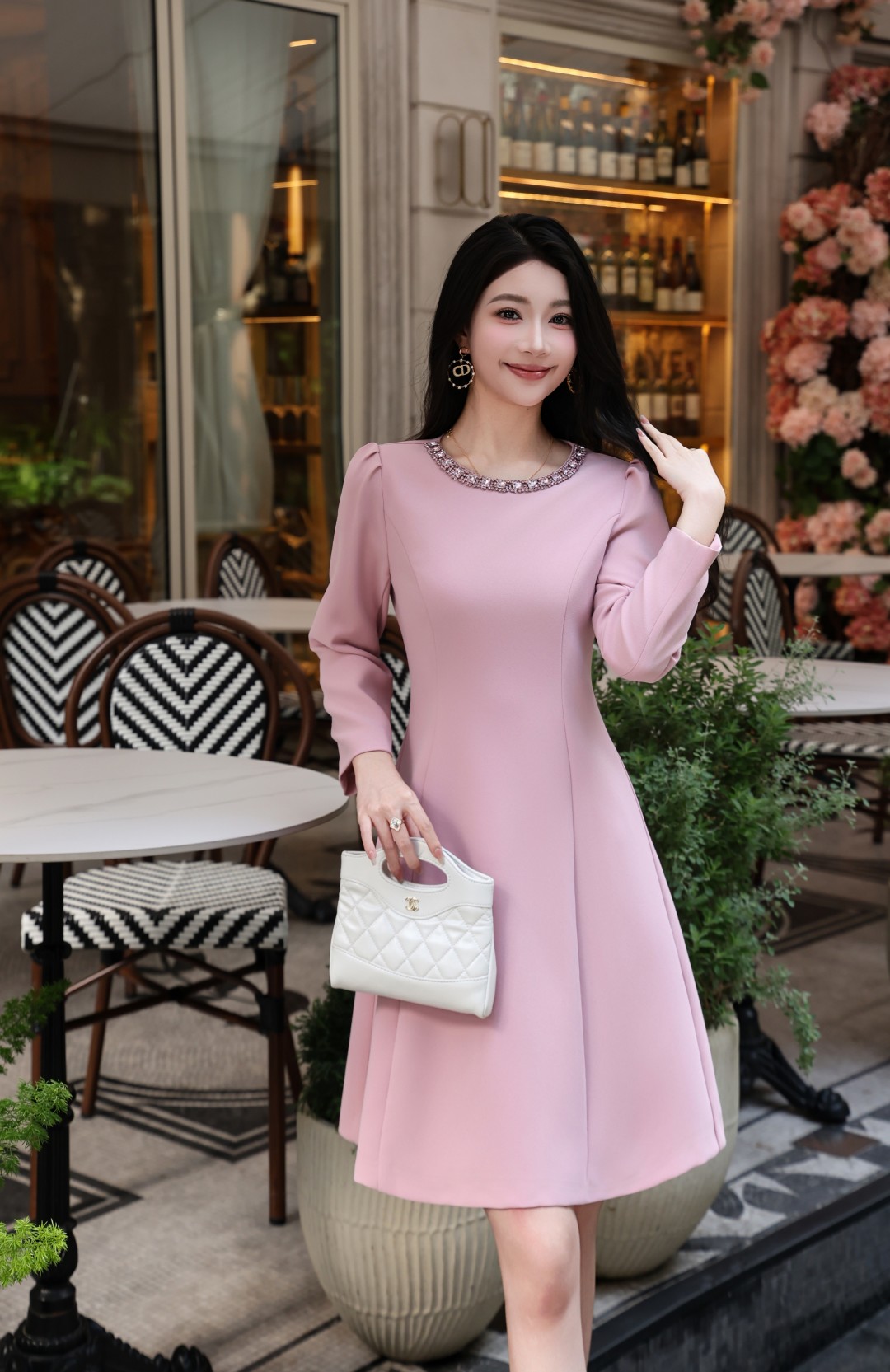 Elevate your style with this chic A-line dress, featuring a beaded round neck, long sleeves and flattering silhouette. Available in multiple colors and sizes.