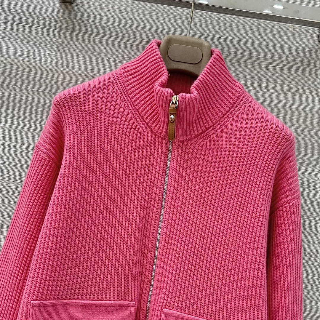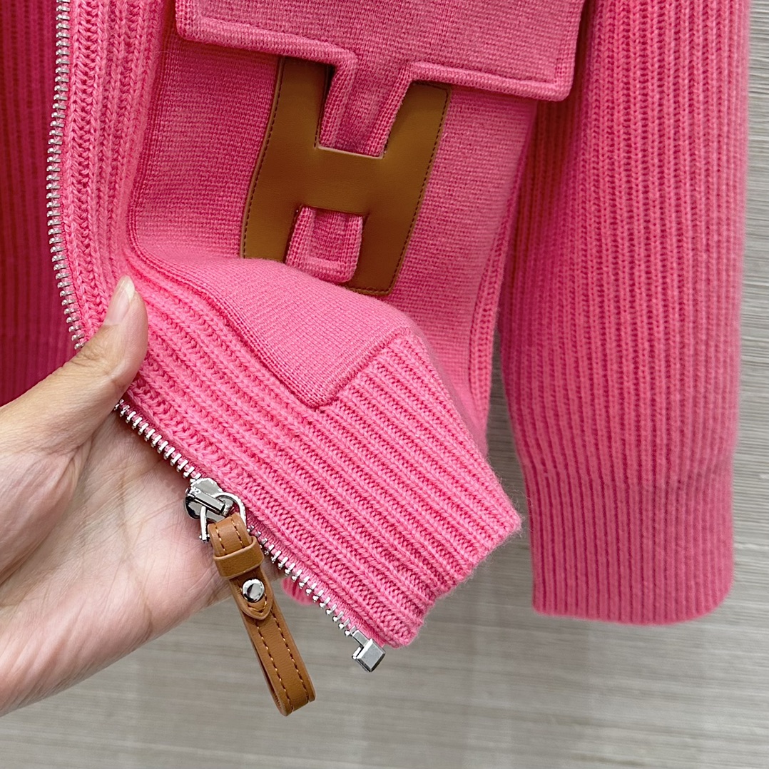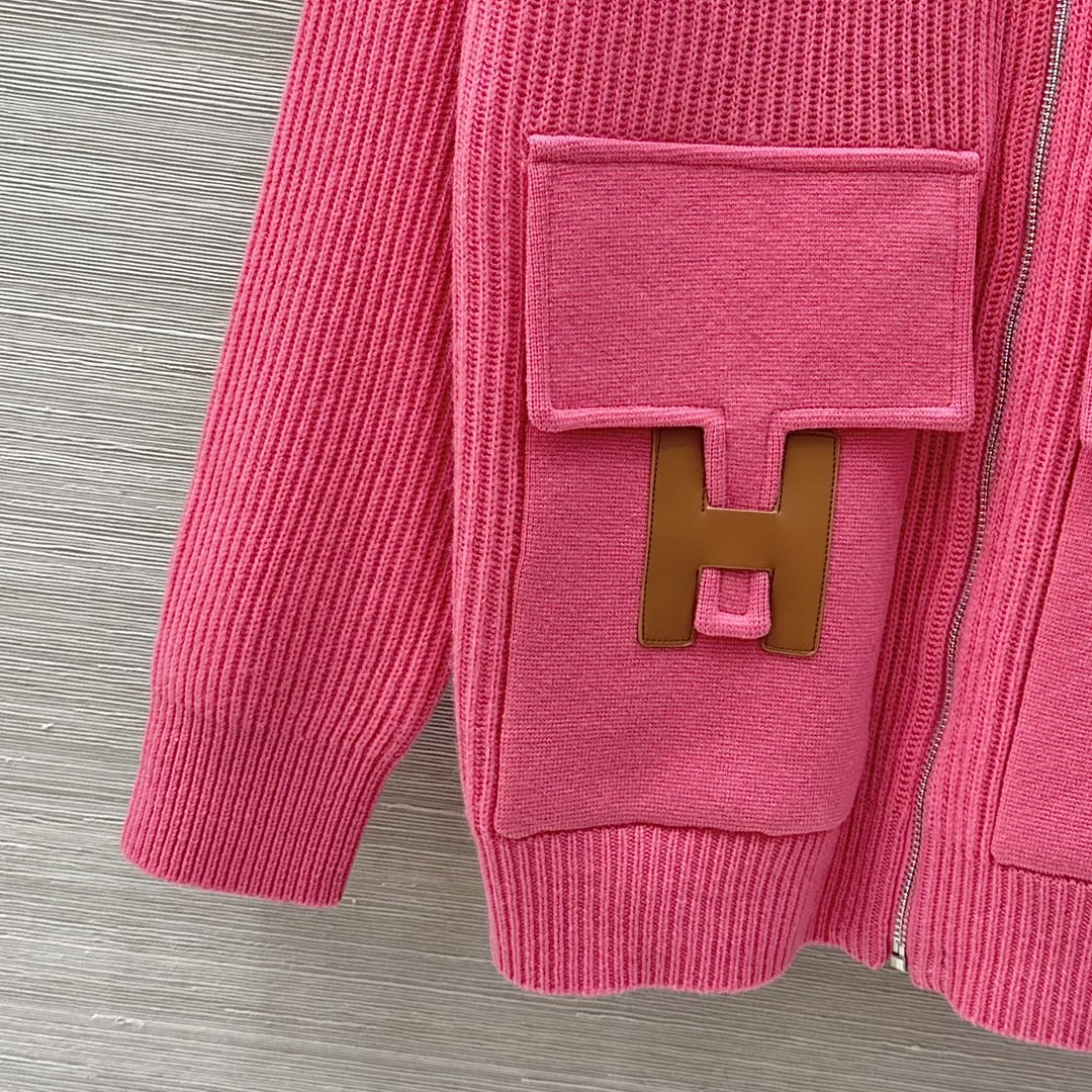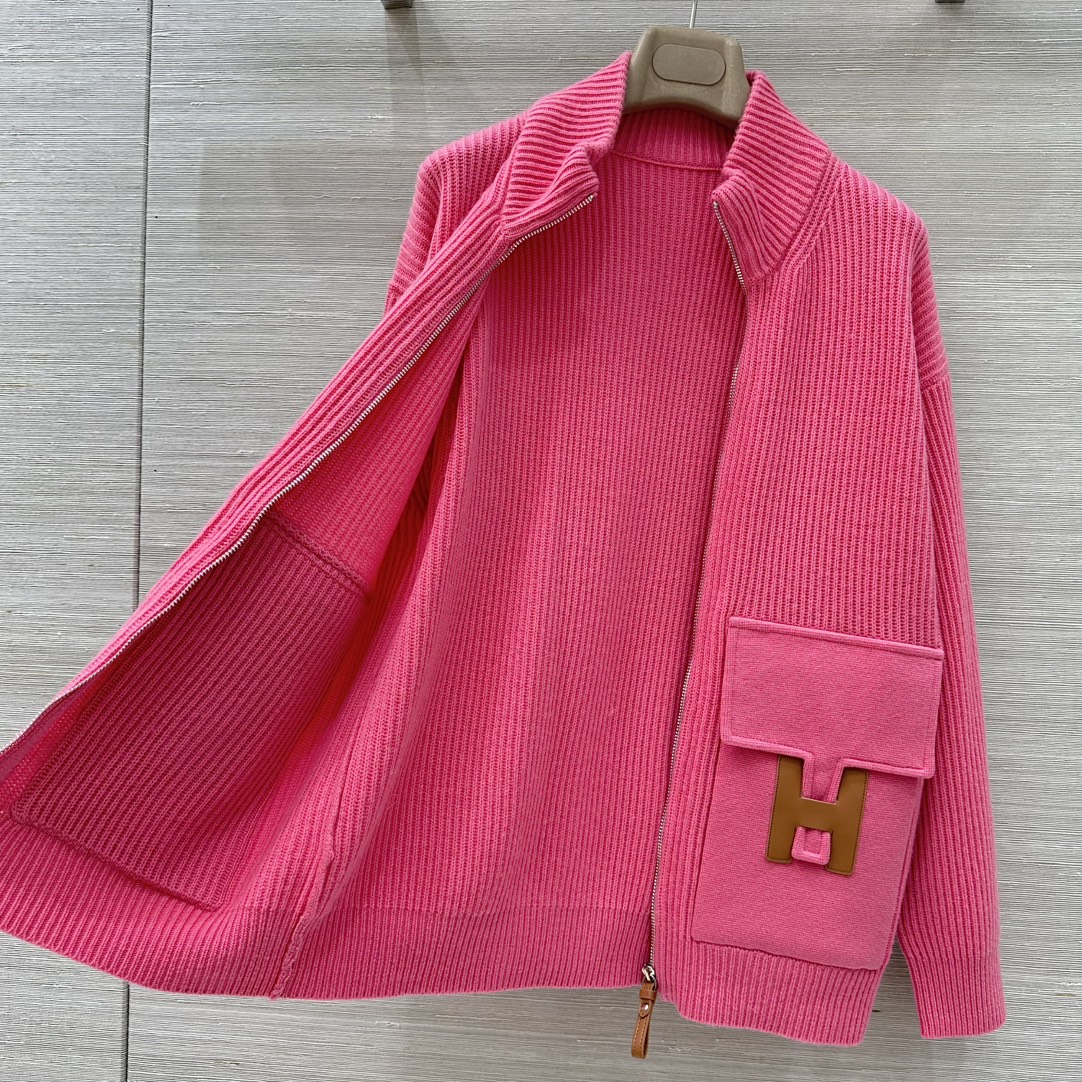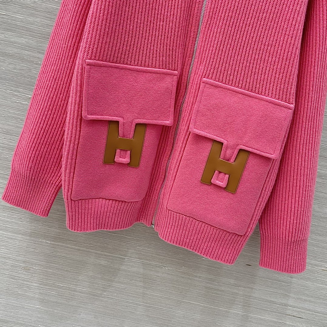 Elevate your style with this chic cashmere knit cardigan. Features a zip-up front, 'H' detail pockets, and a flattering, relaxed fit.