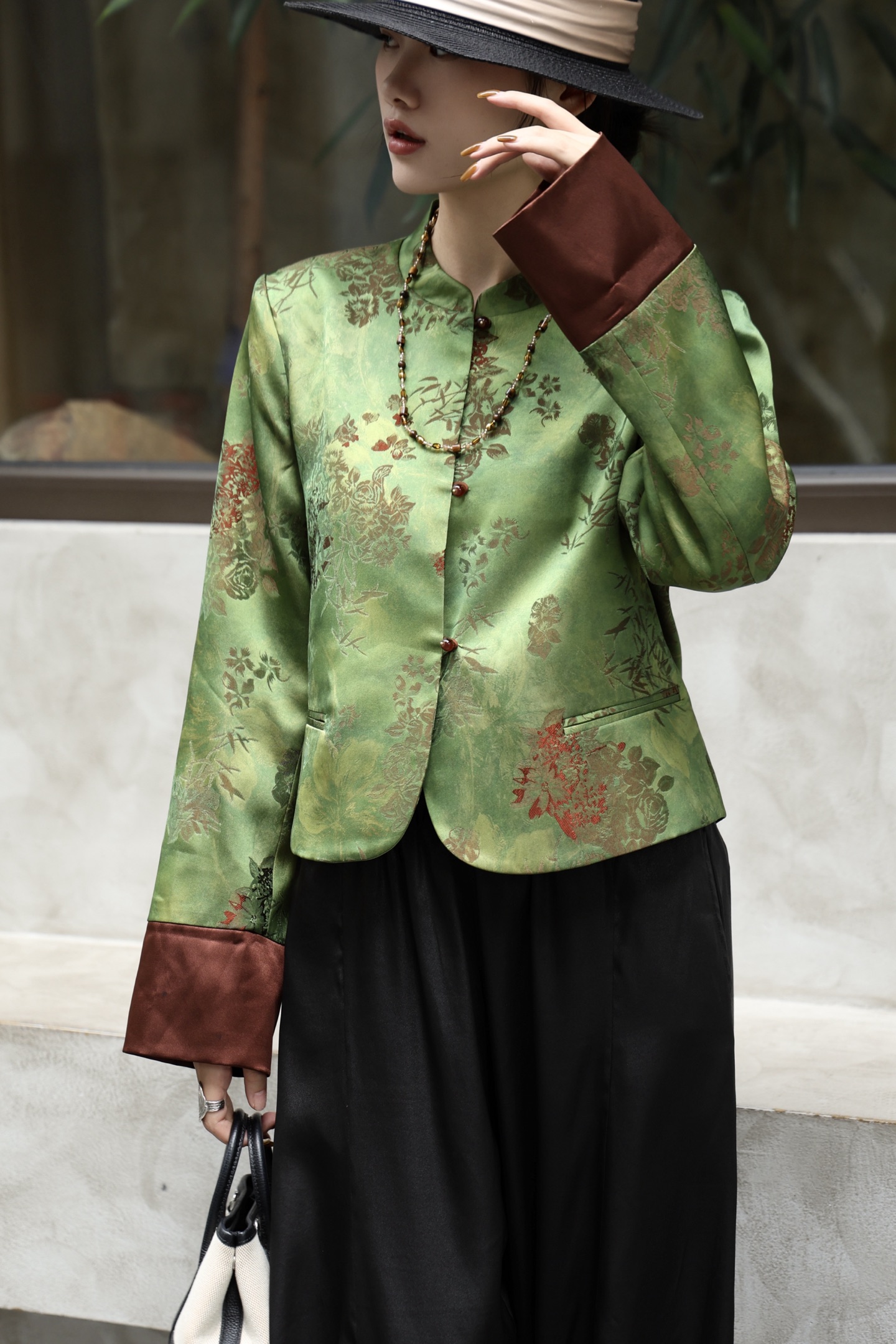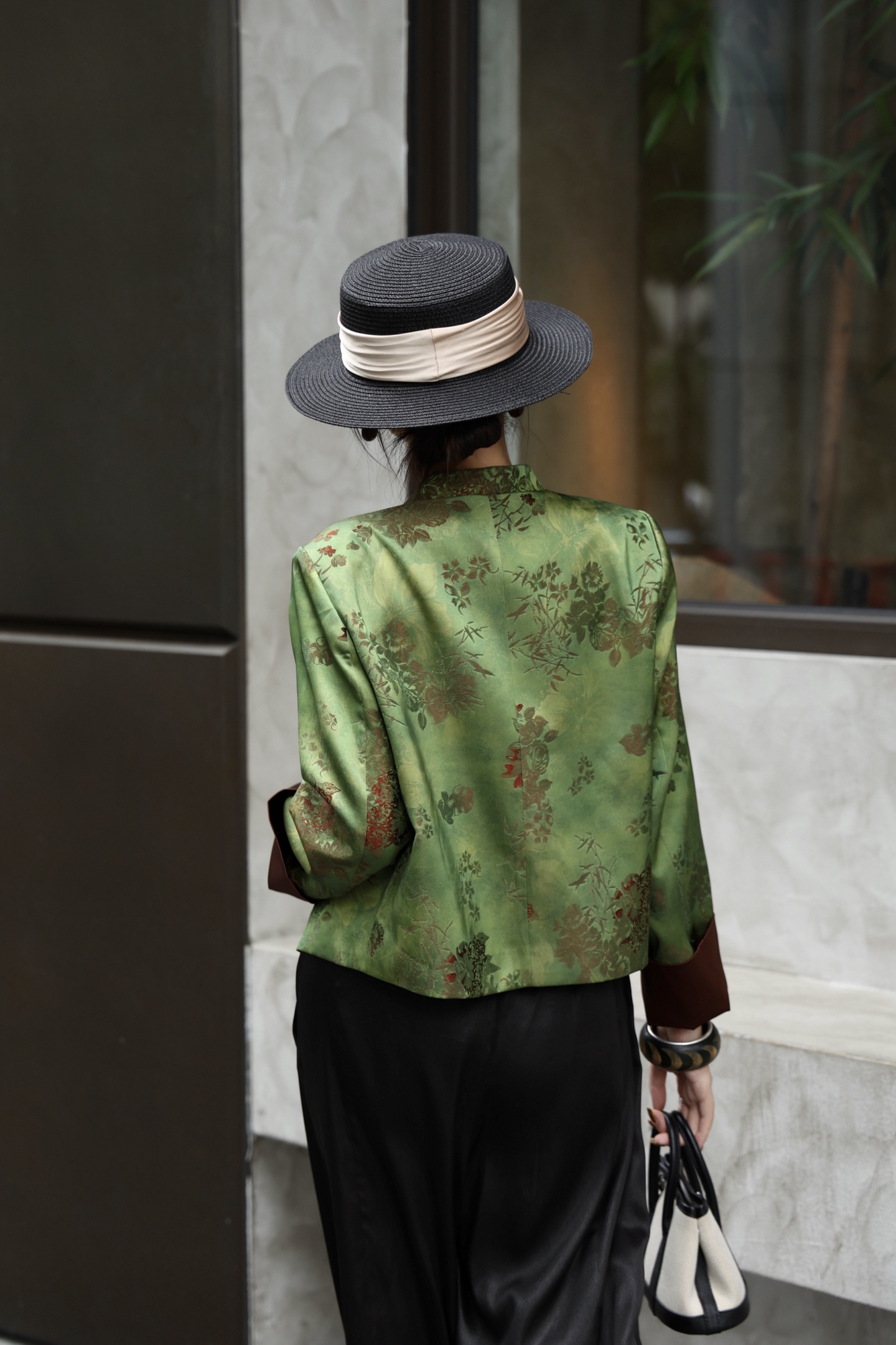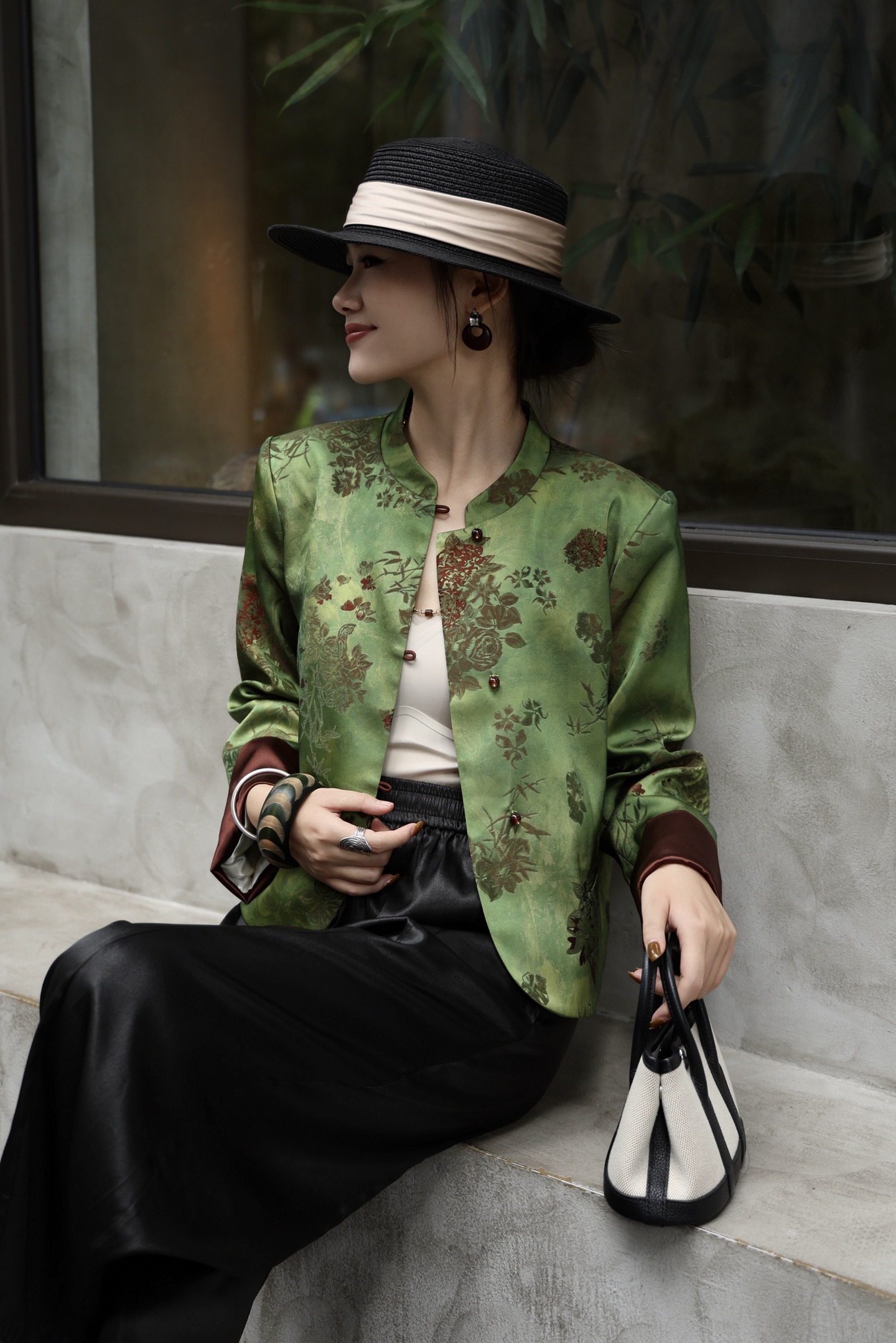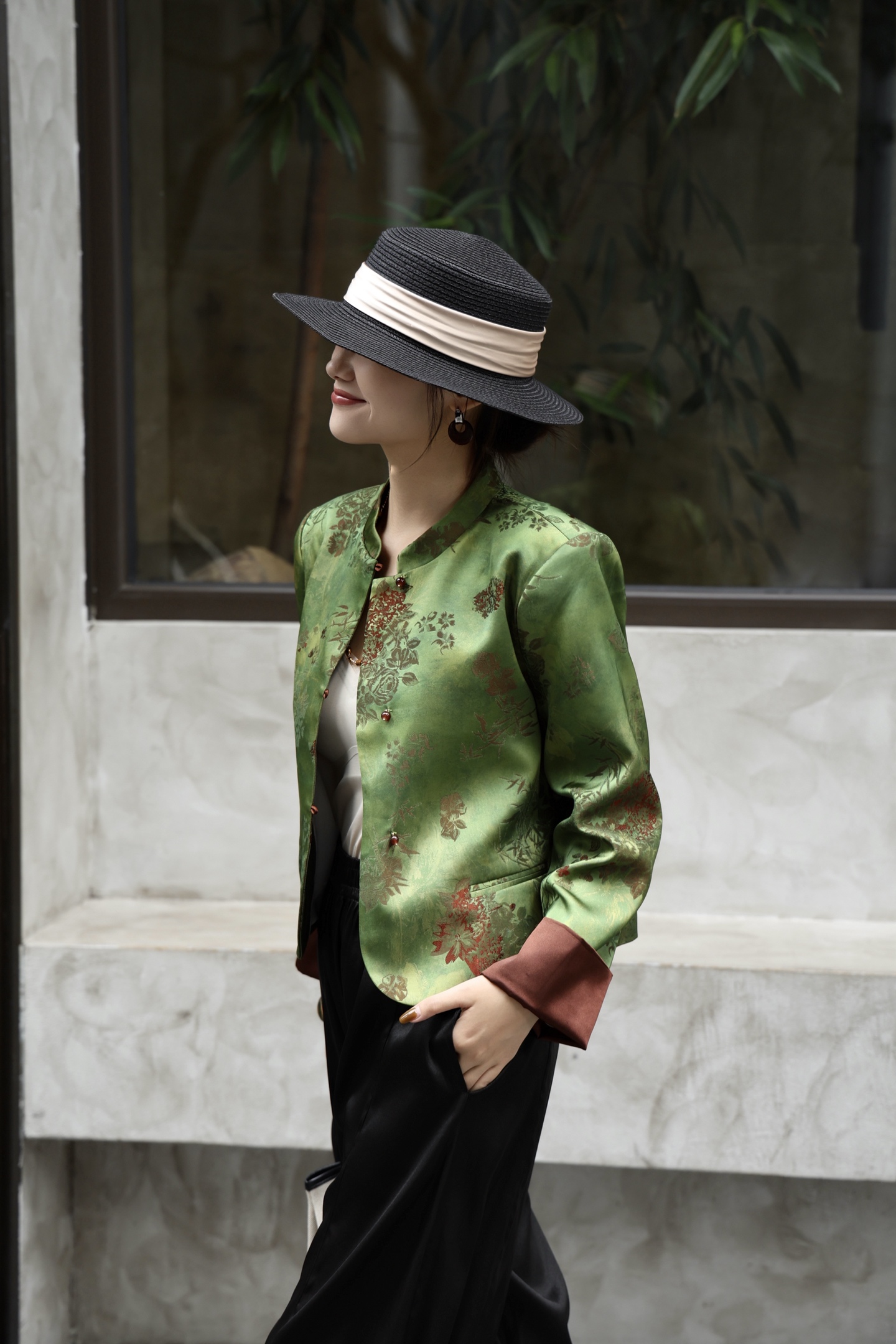 This stunning brocade jacket embodies the essence of modern elegance with a touch of traditional Chinese flair. A true statement piece that blends cultural heritage with contemporary fashion trends.