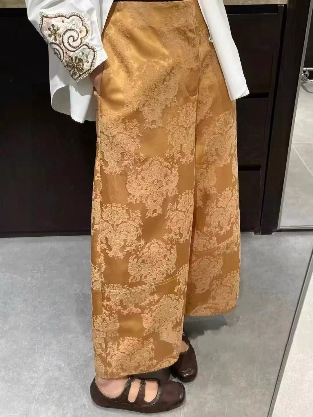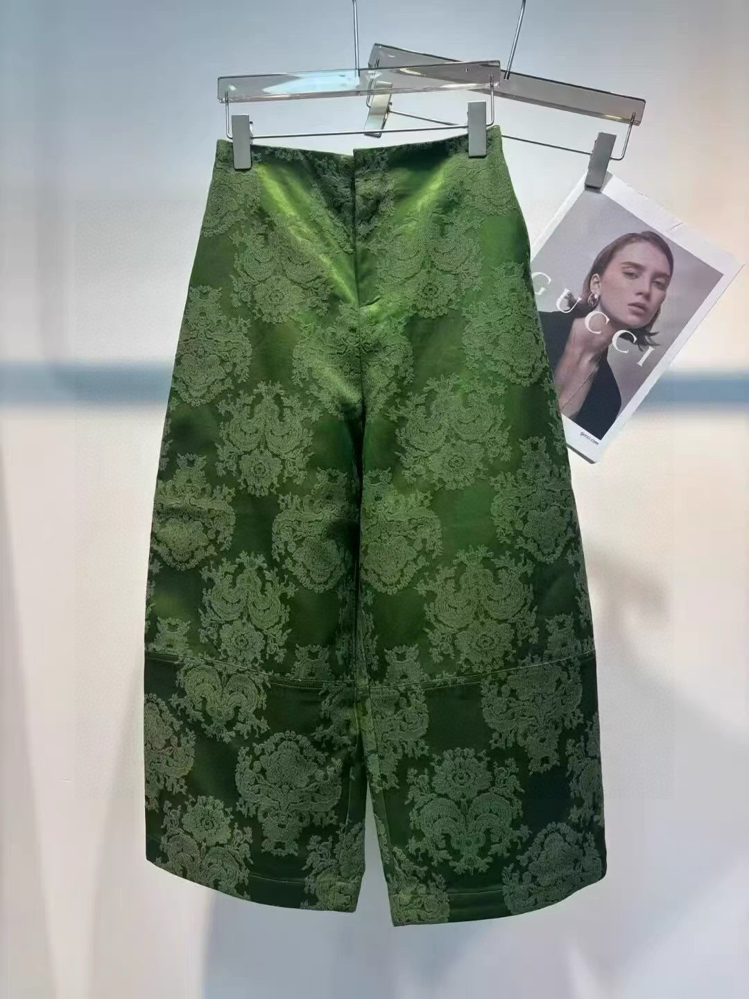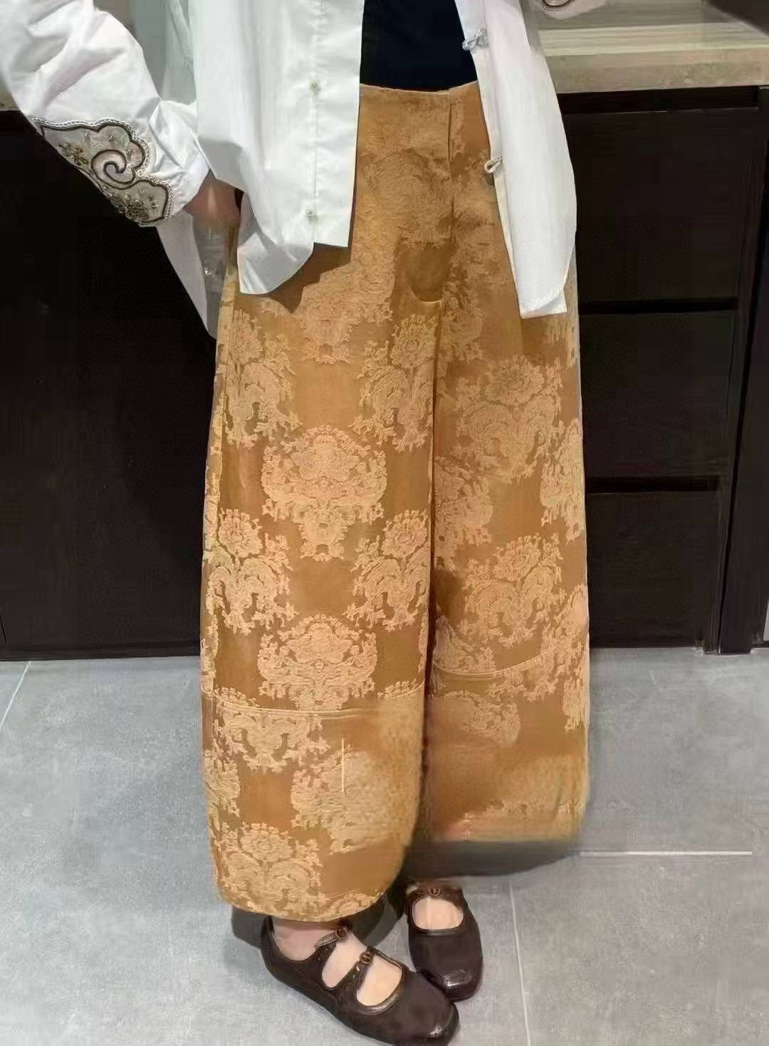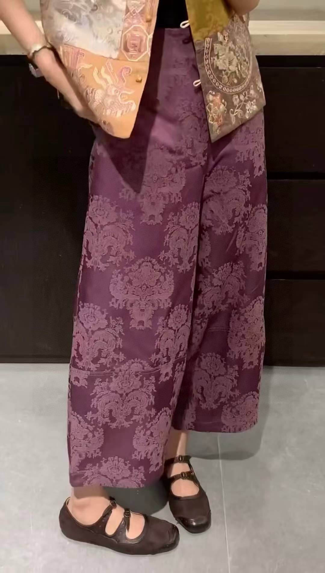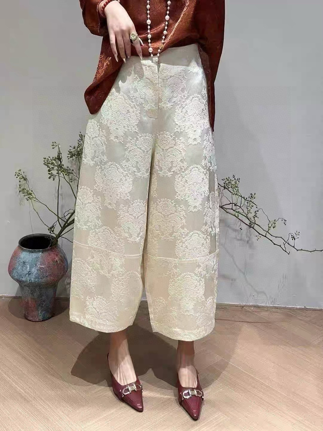 Elevate your style with these jacquard wide-leg cropped pants. Made from a blend of silk and cotton, offers comfort and sophistication.