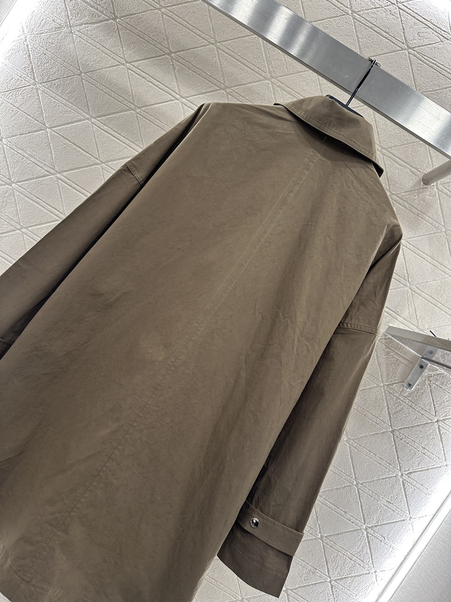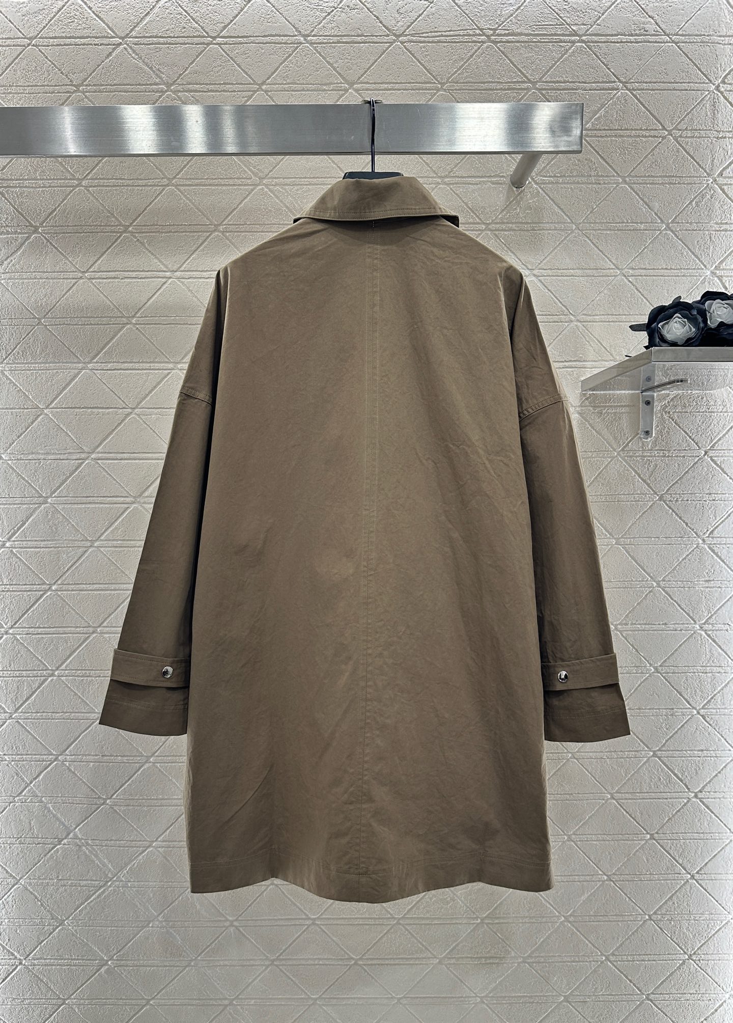 This trench coat features a timeless design with modern details. Its classic silhouette and versatile features make it suitable for both casual and formal occasions.