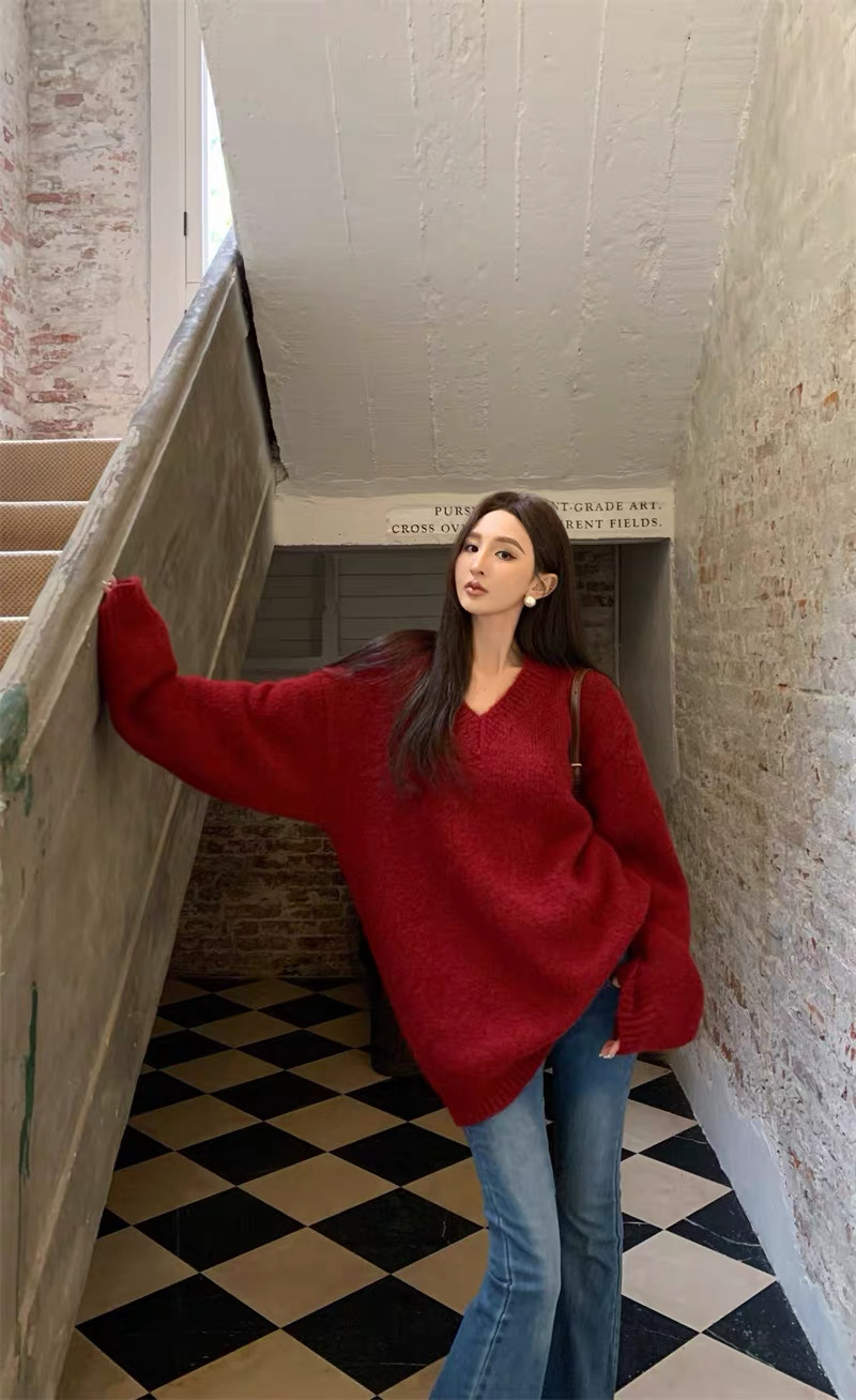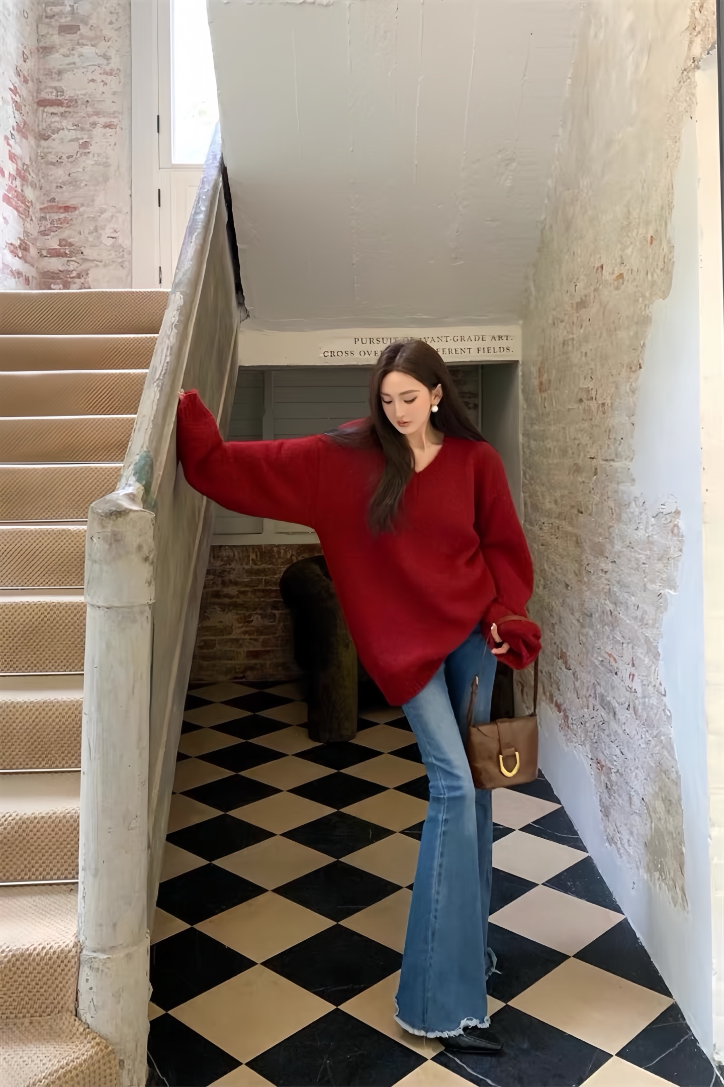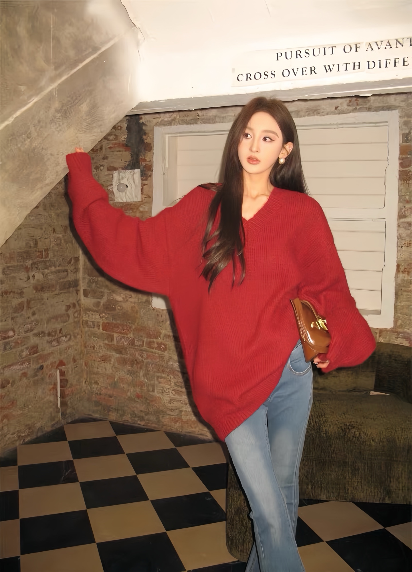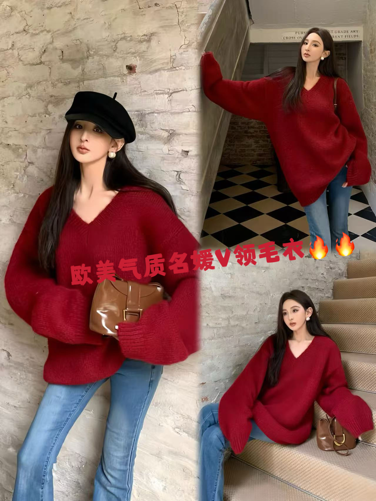 This V-neck lantern sleeve sweater is a blend of comfort and elegance, perfect for adding a touch of sophistication to your wardrobe.