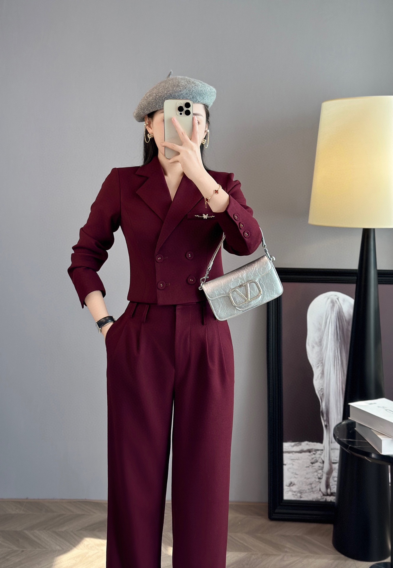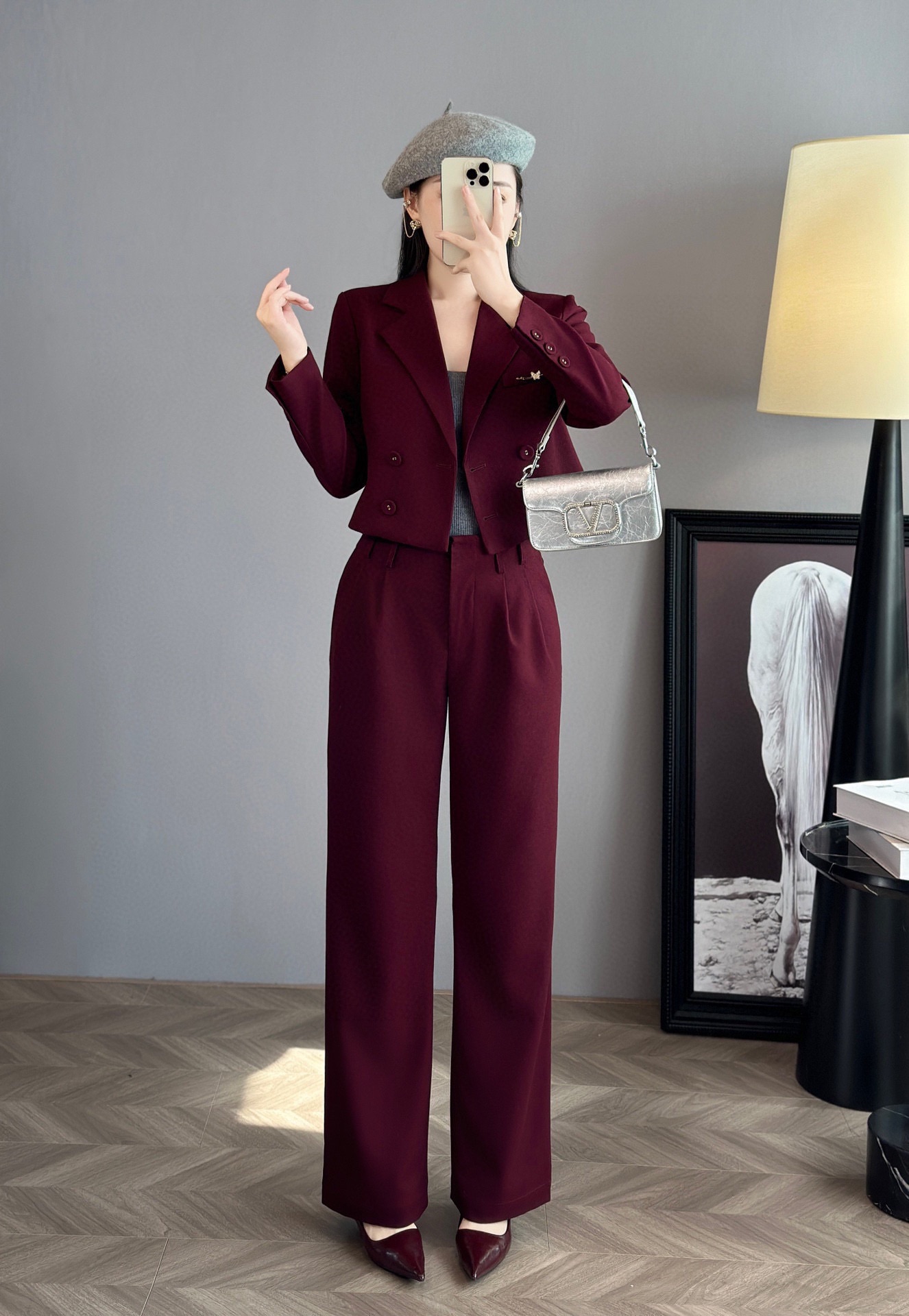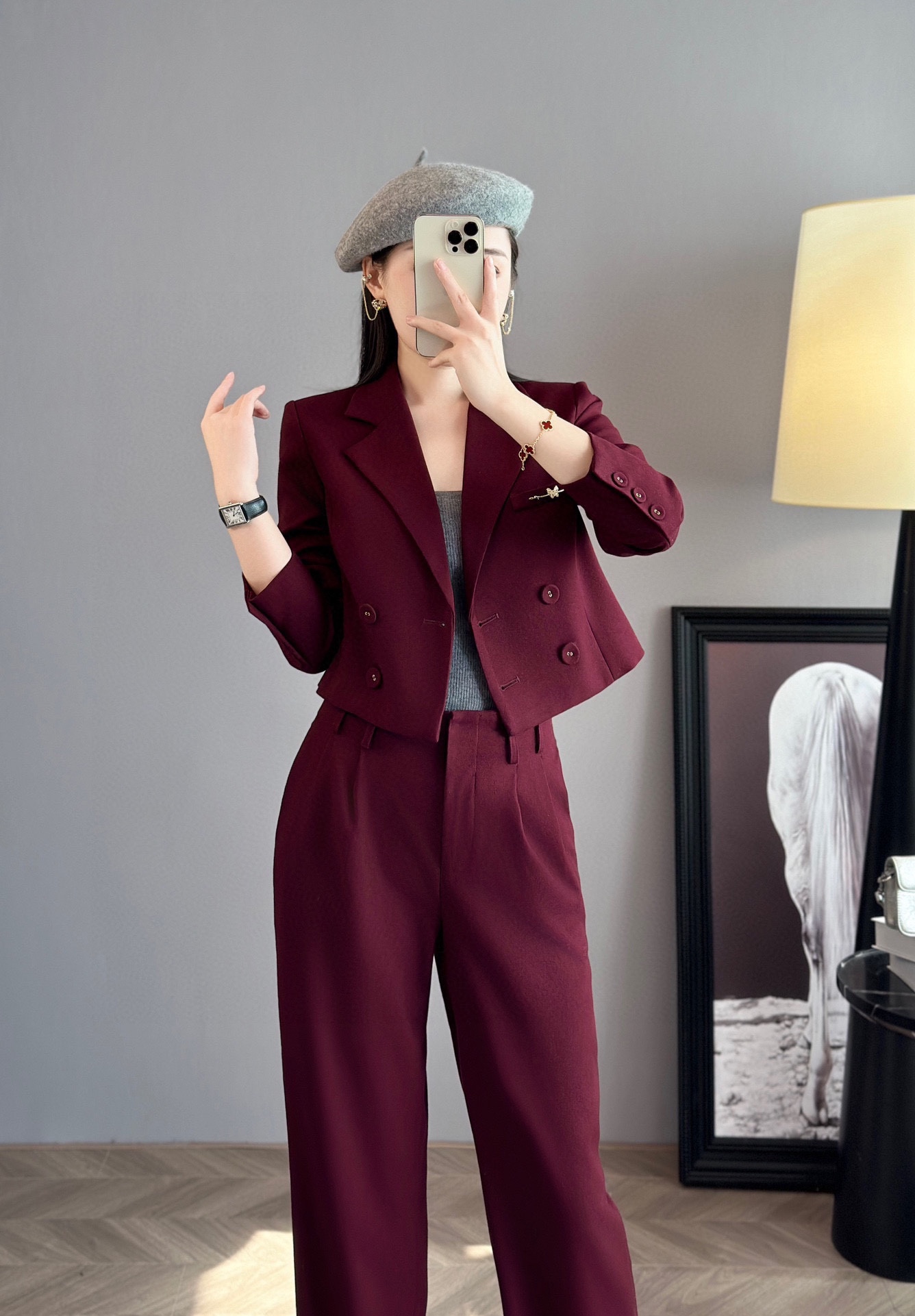 This elegant women's suit set is designed for the modern woman who appreciates style and comfort. Crafted from a premium wool blend, this Korean-style suit is perfect for making a statement.