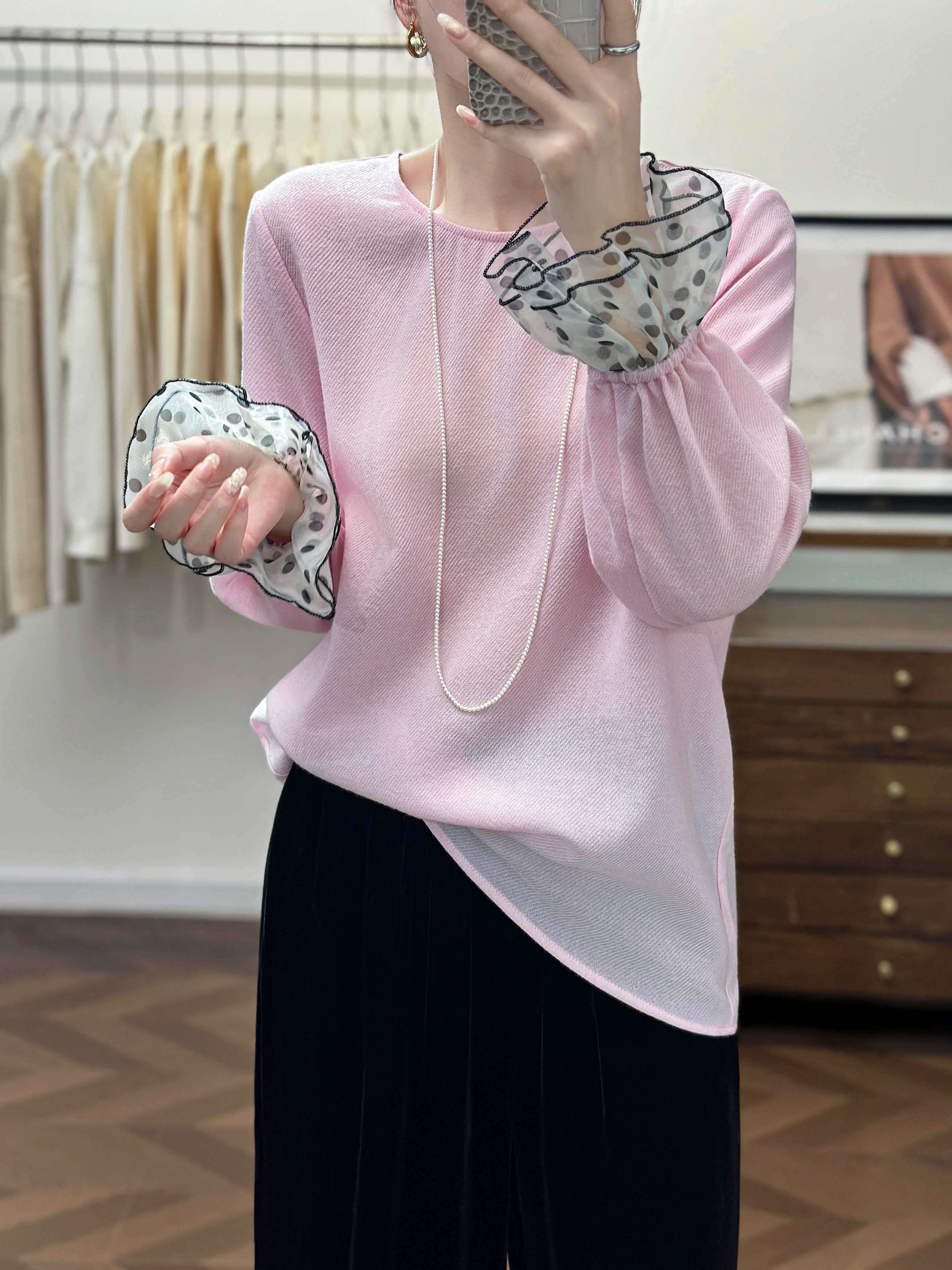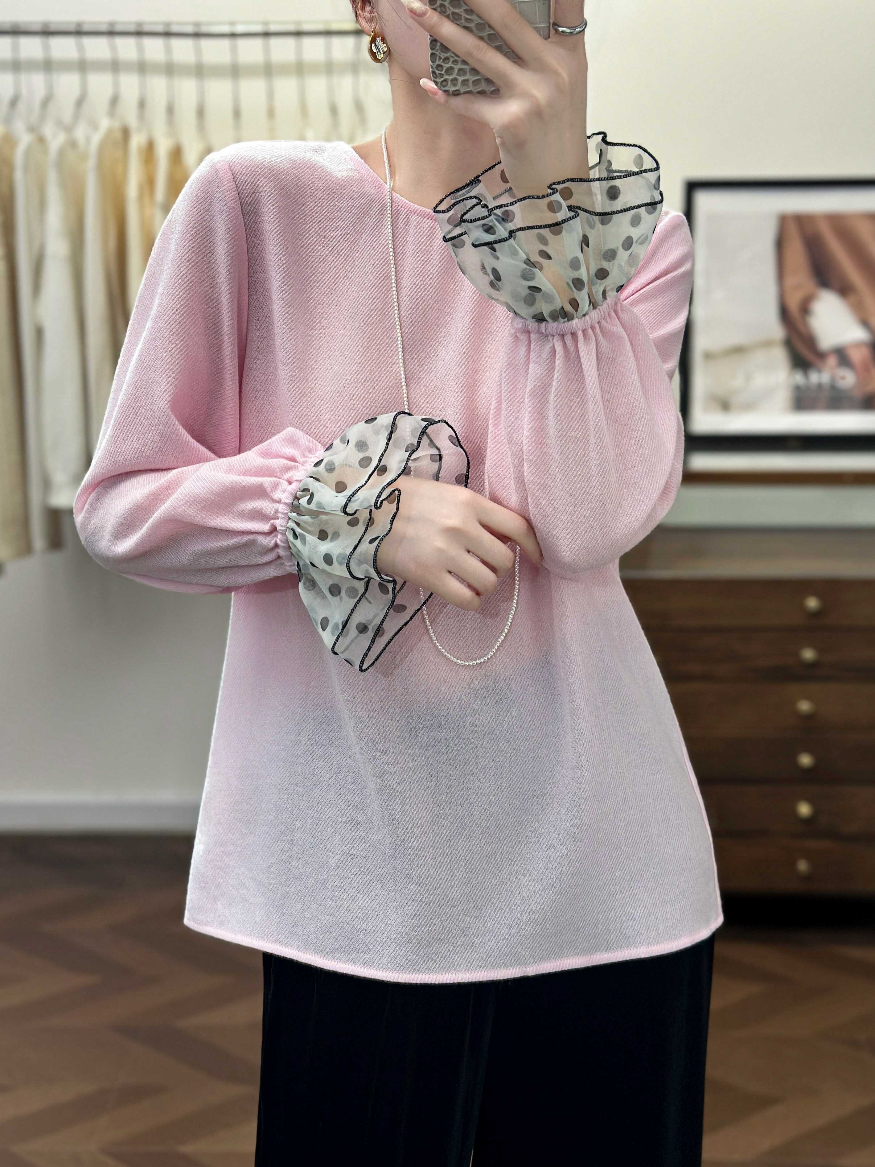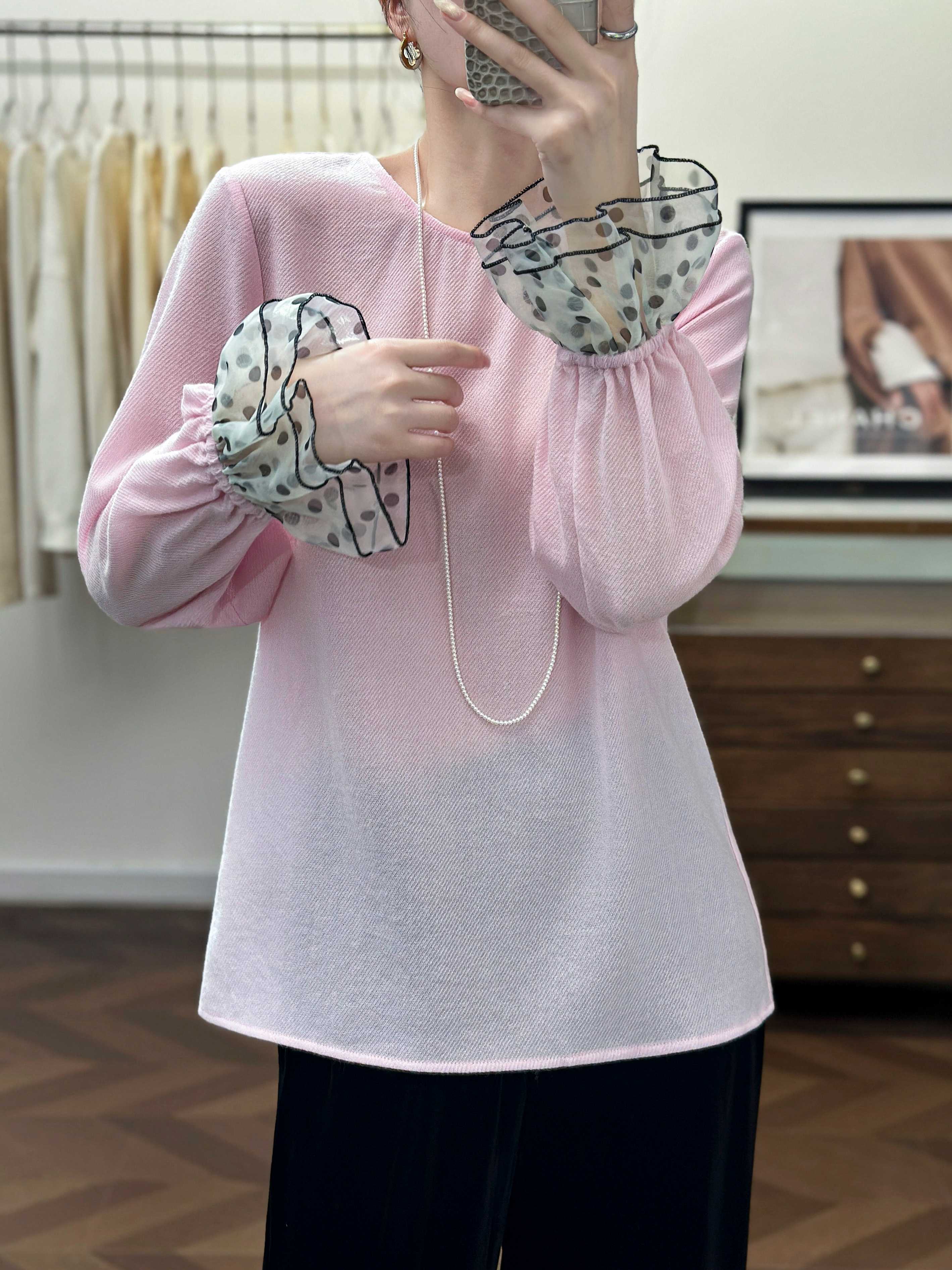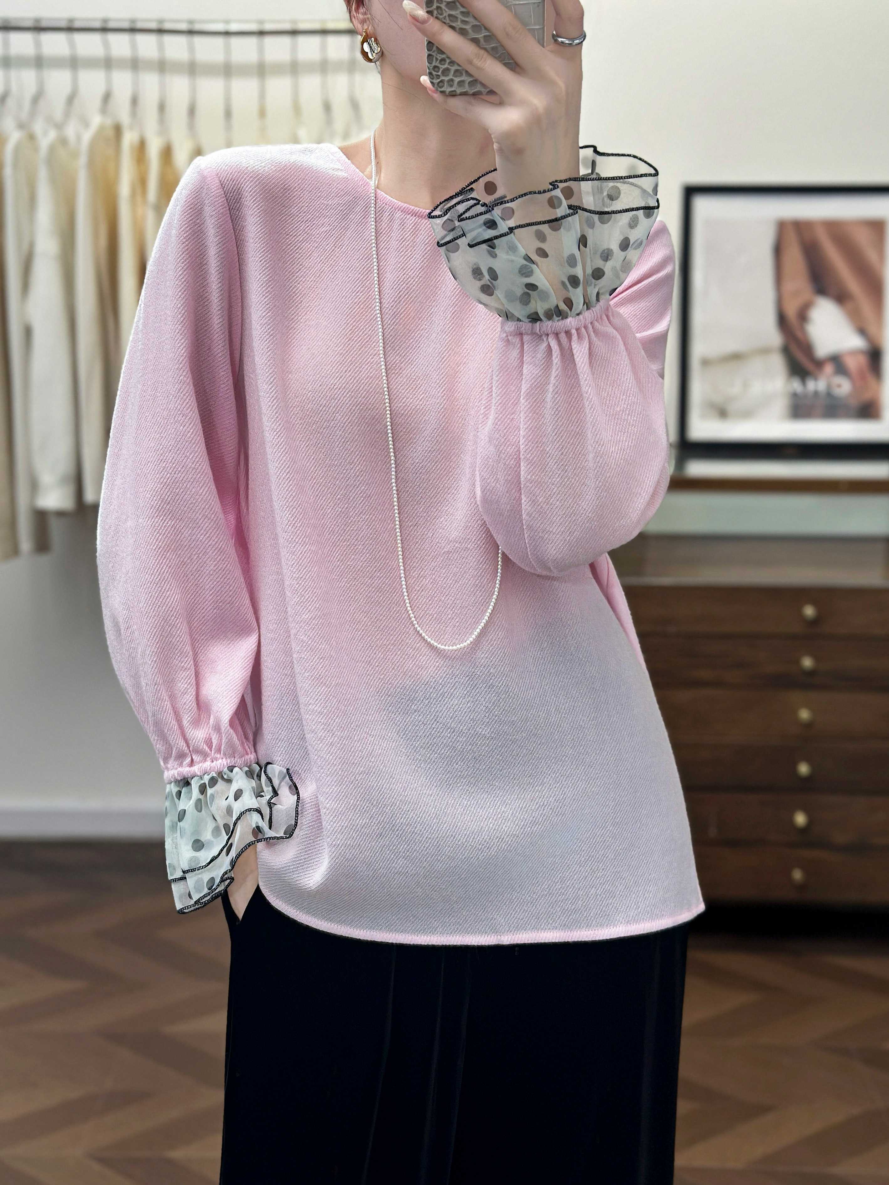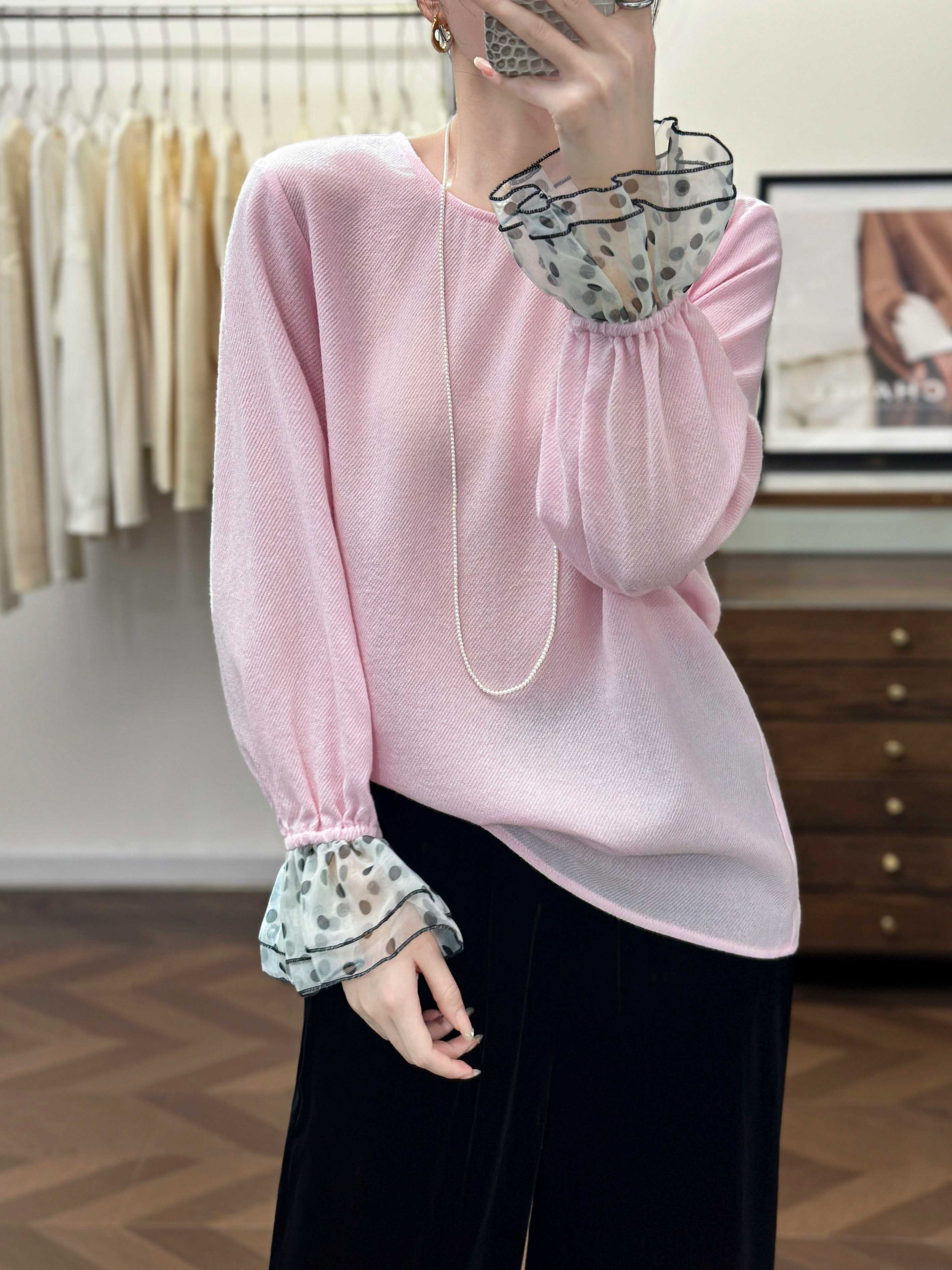 With its unique blend of style and comfort, this polka dot sleeve top is sure to become a staple in your wardrobe. Don't miss out on the opportunity to own this elegant piece.