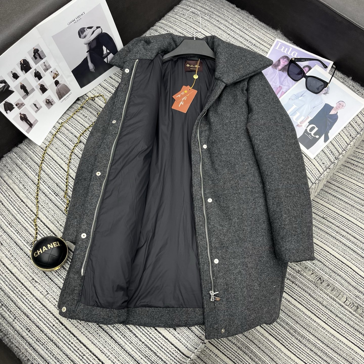 Tags: Fold Down Collar Overcoat, Goose Down Filled Jacket, Mid Length Winter Coat, Warm Wool Outerwear, Wool Blend Down Coat