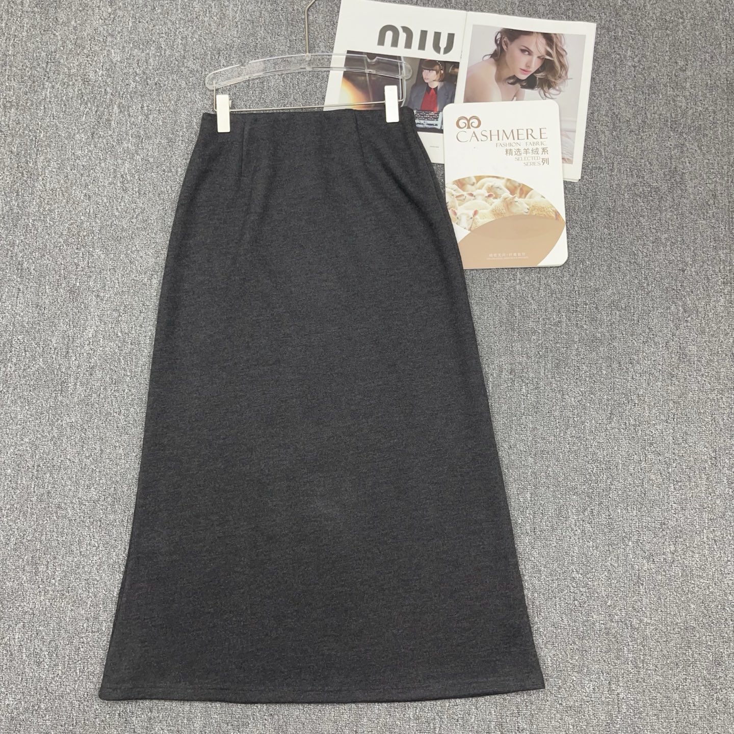 Elegant Wool Blend Midi Skirt with High Slit, Versatile and Warm