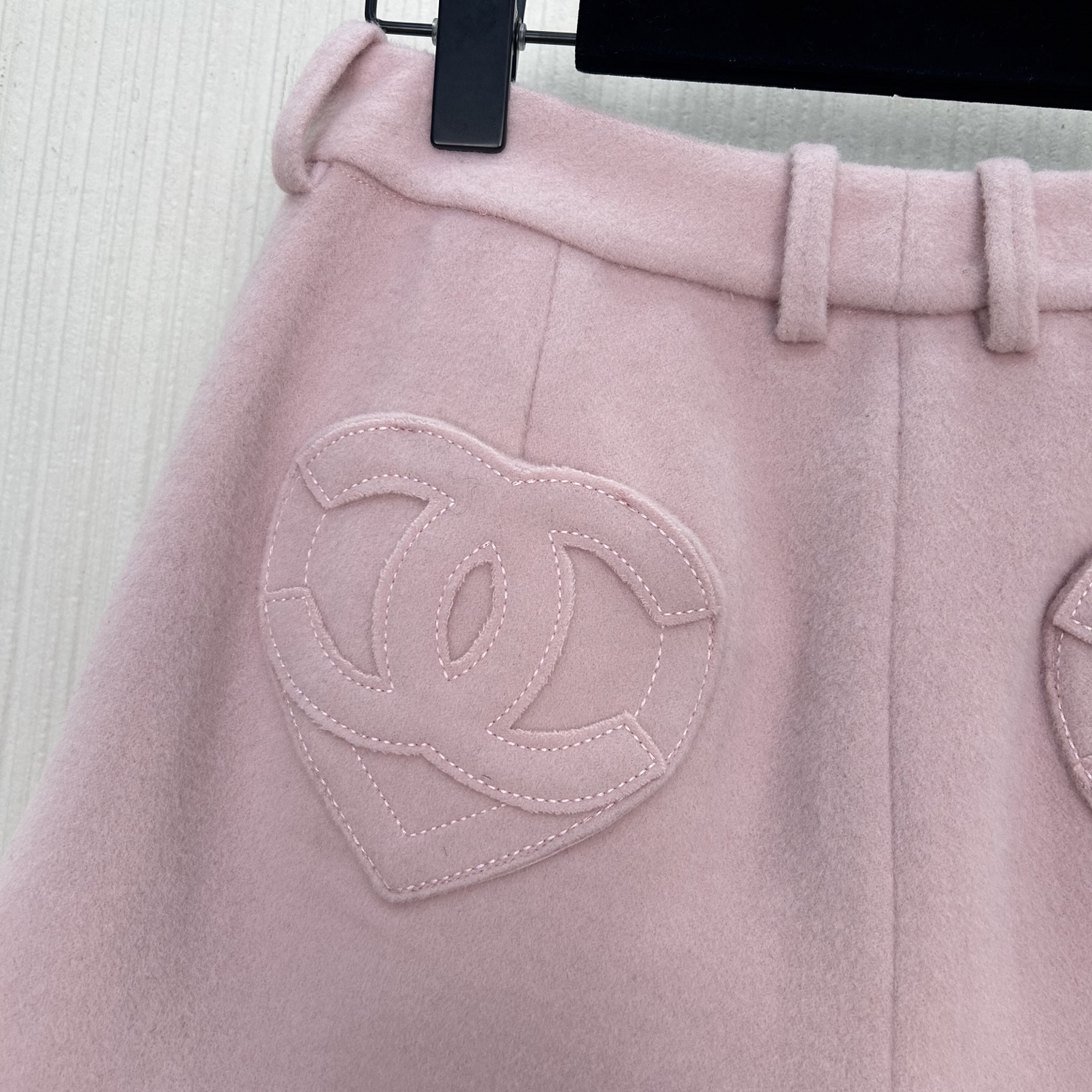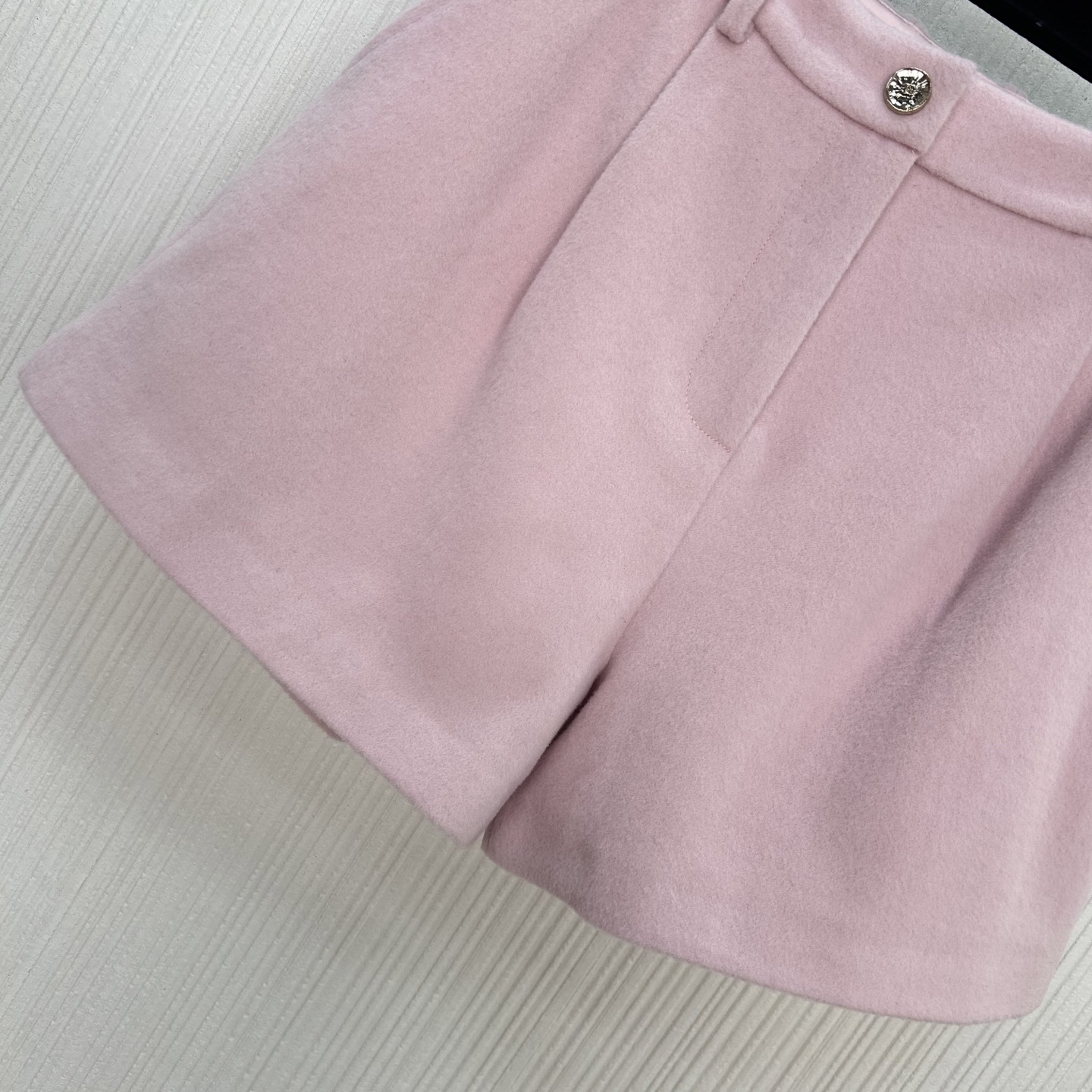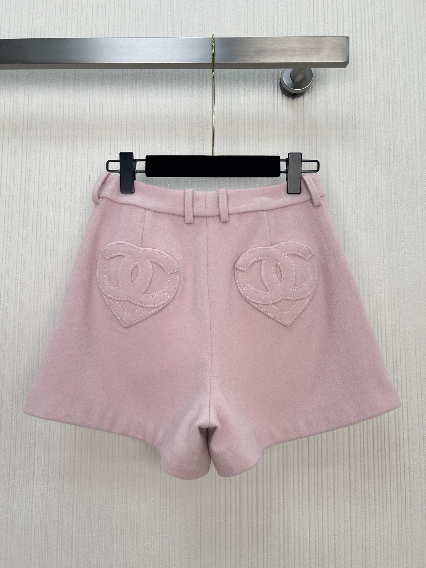 Elegant Wool Blend Pleated Straight Shorts with Heart Pocket Logo Embroidery