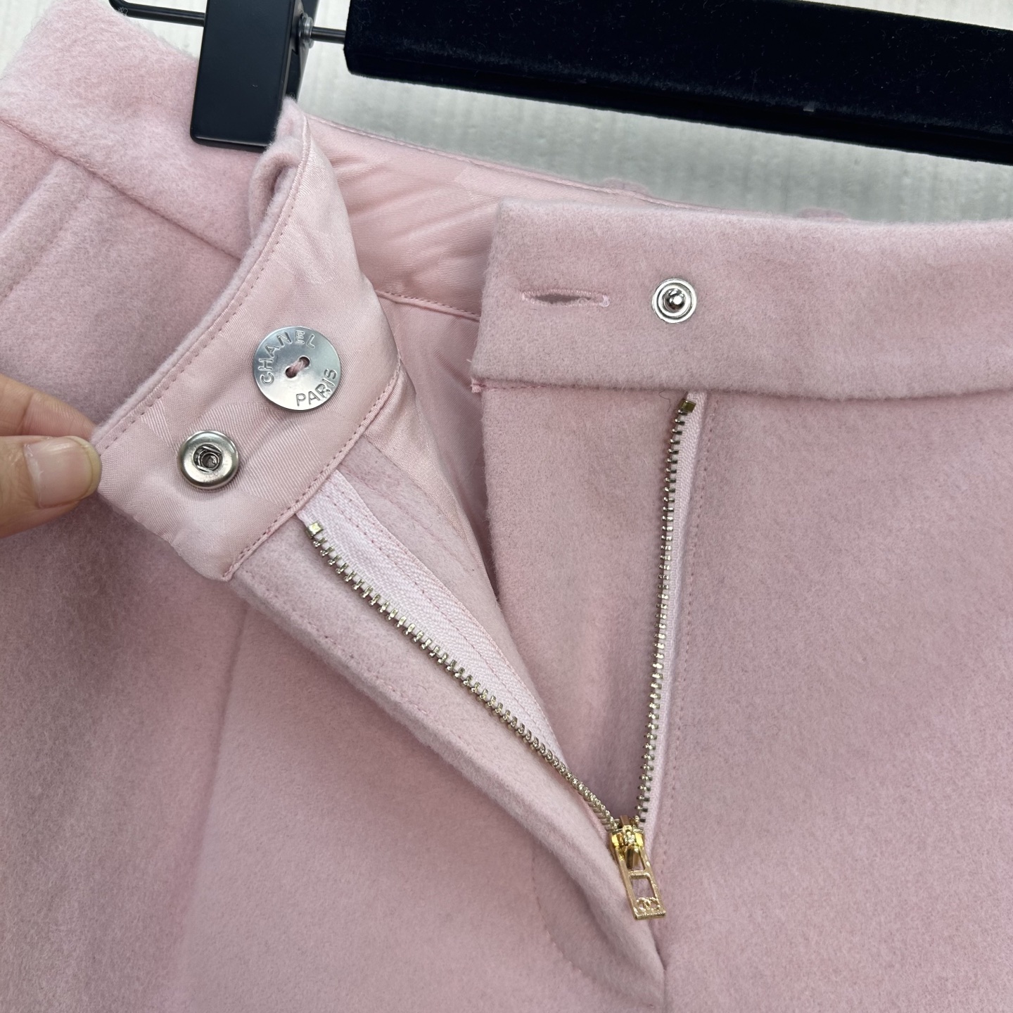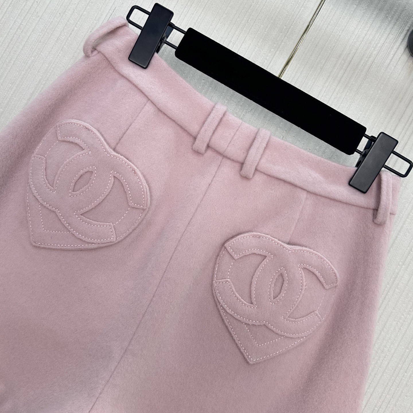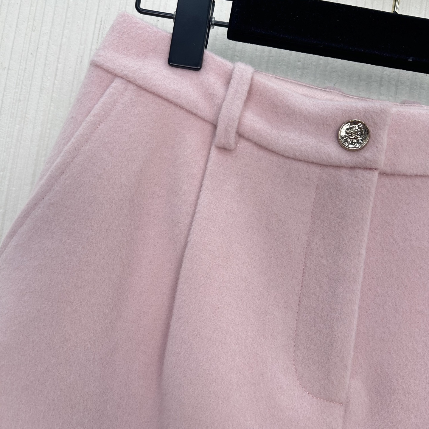 Elegant Wool Blend Pleated Straight Shorts with Heart Pocket Logo Embroidery