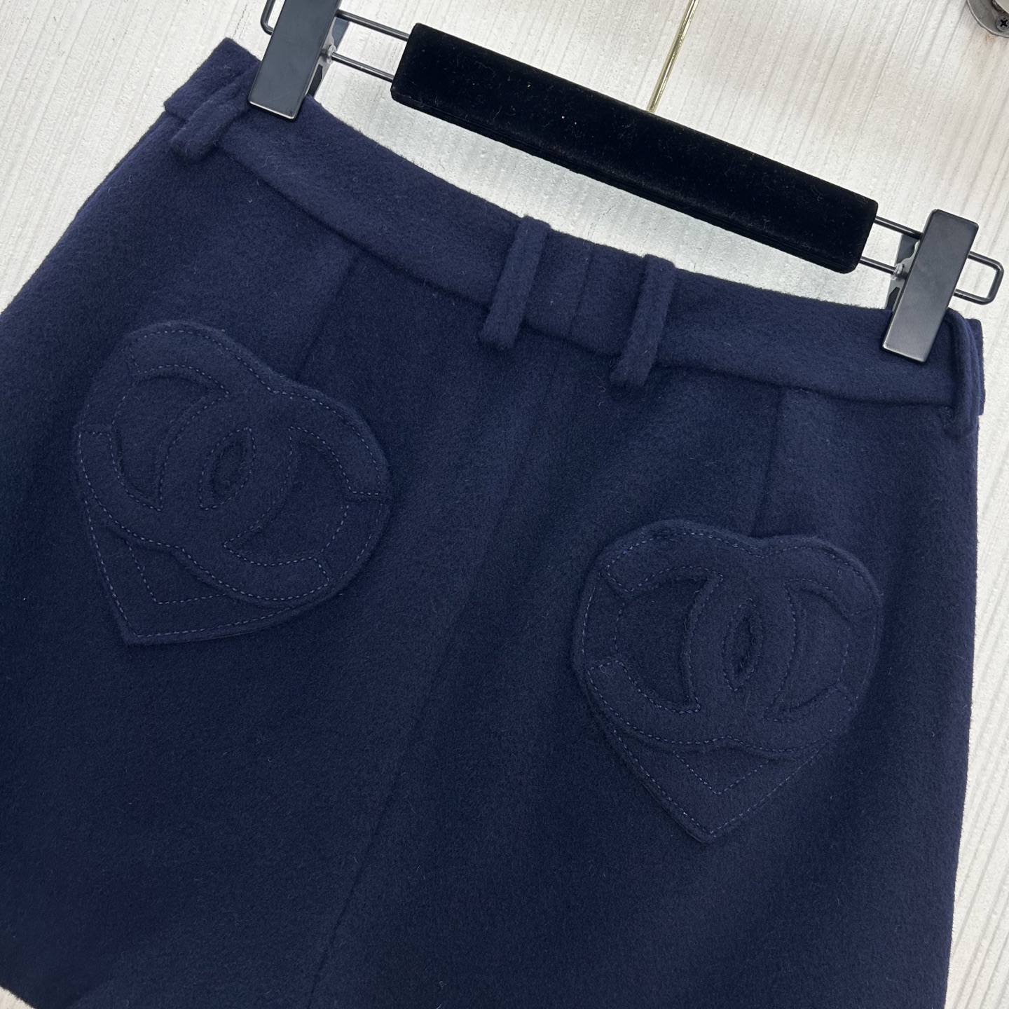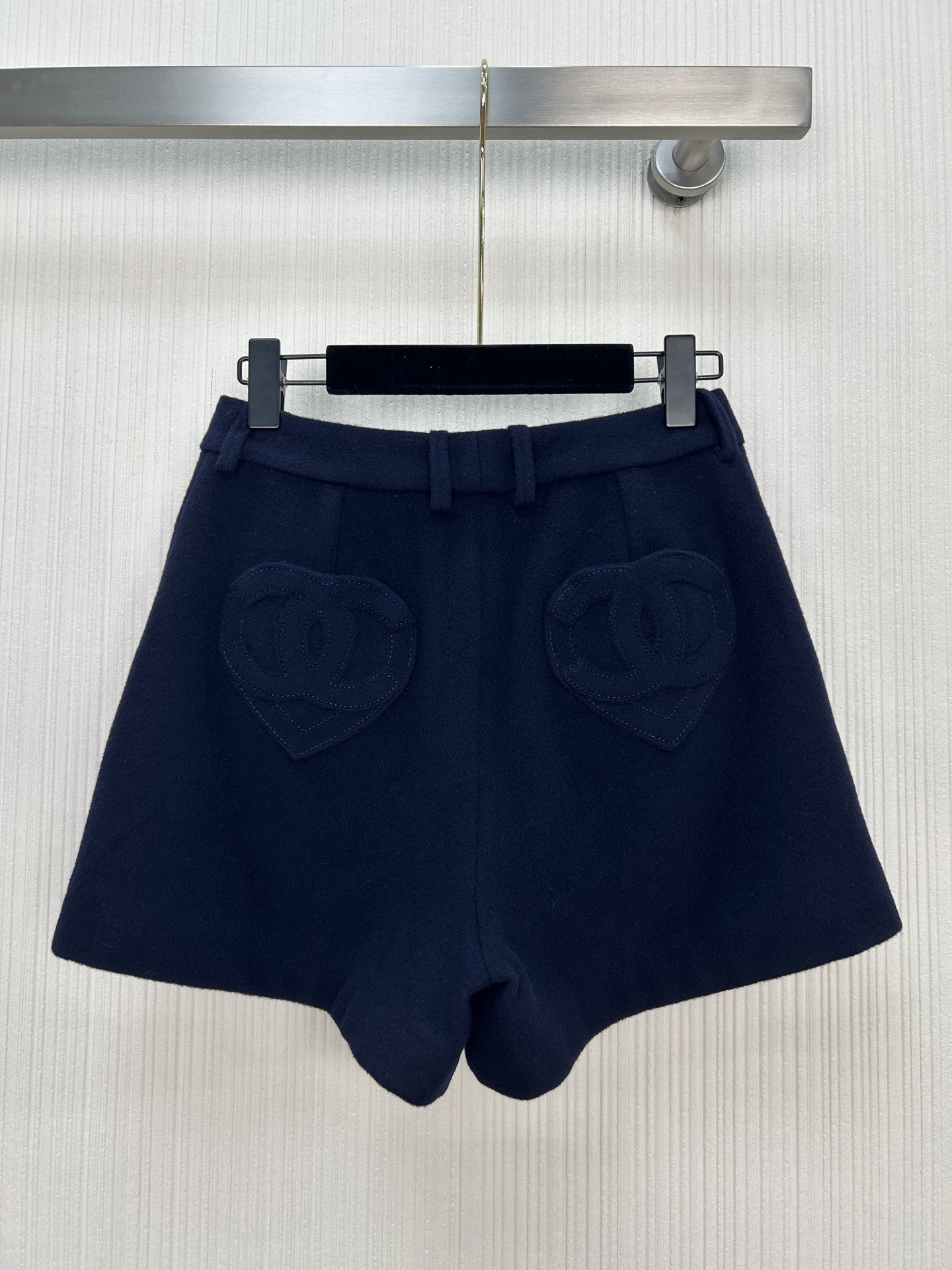 Elevate your style with these chic wool blend shorts. Featuring heart-shaped pockets and a comfortable fit, perfect for a sweet and stylish look.