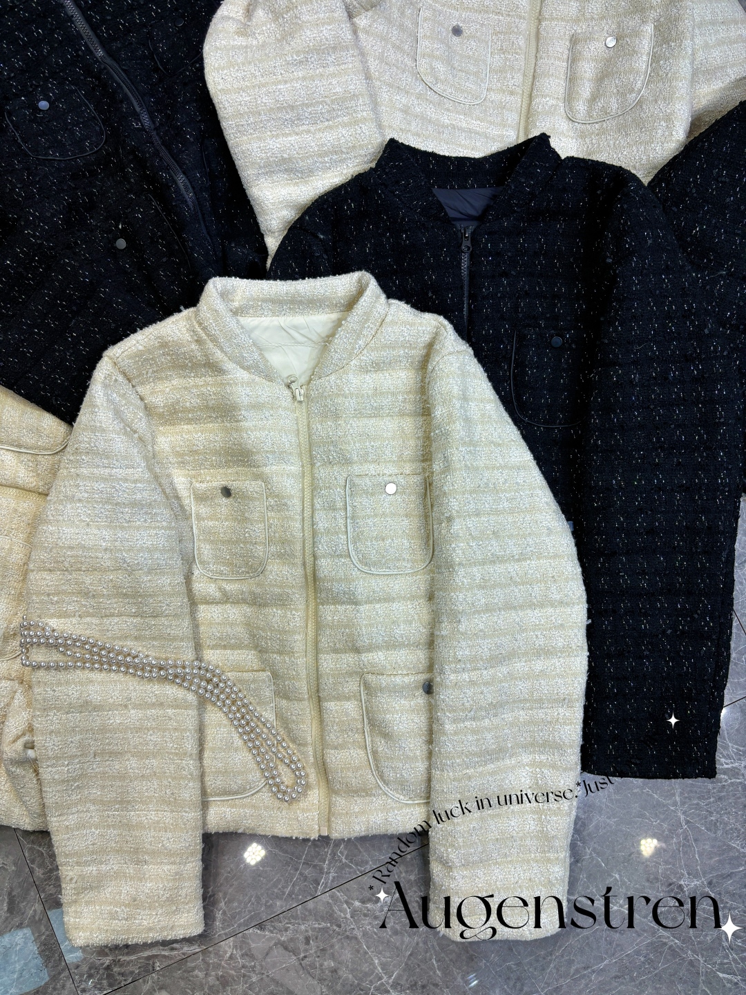 This exquisite jacket combines the timeless elegance of Chanel-inspired design with the cozy comfort of a wool blend. It's a versatile piece, perfect for adding a touch of sophistication to any outfit.