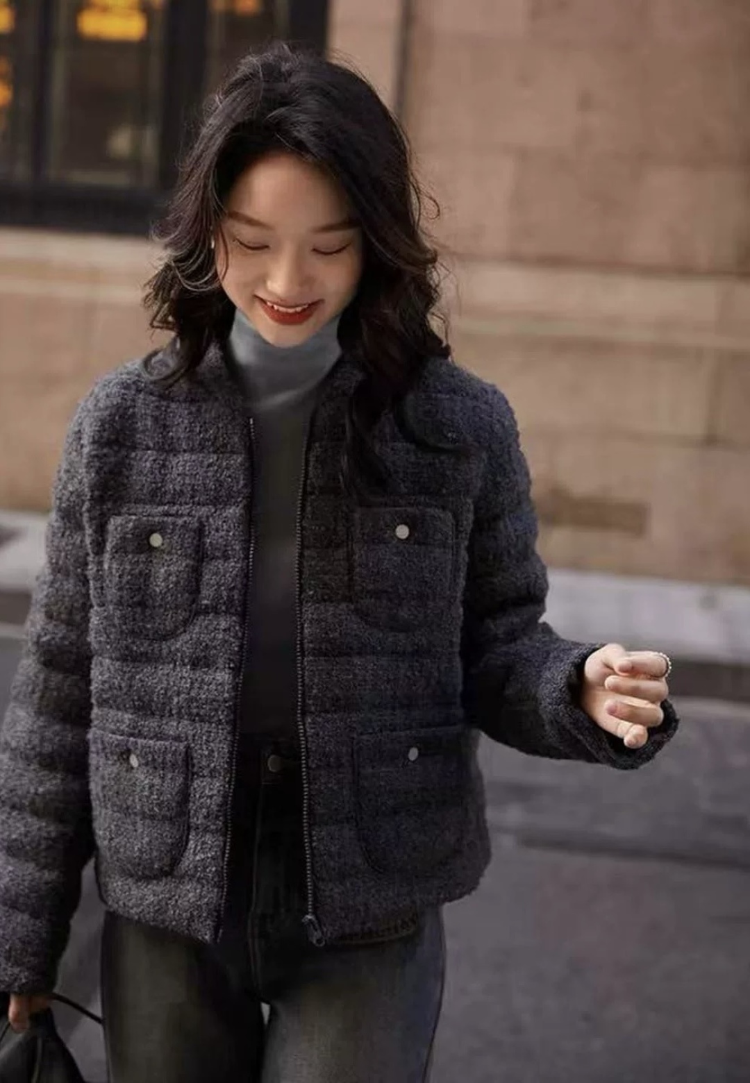 Tags: Chanel Style Jacket, Classic Tweed Coat, Elegant Warm Jacket, Four Pocket Jacket, Tweed Jacket Women, Wool Blend Outerwear