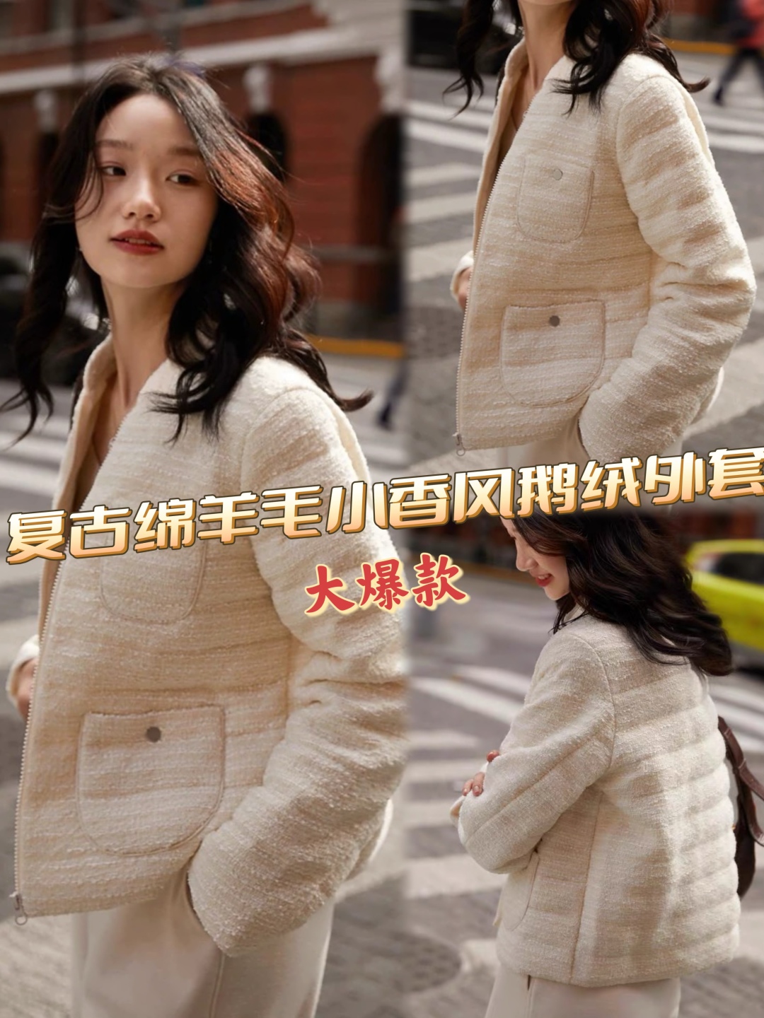 Elevate your style with this wool-blend tweed jacket. Classic Chanel design, warm and refined. Available in sizes S-XL.