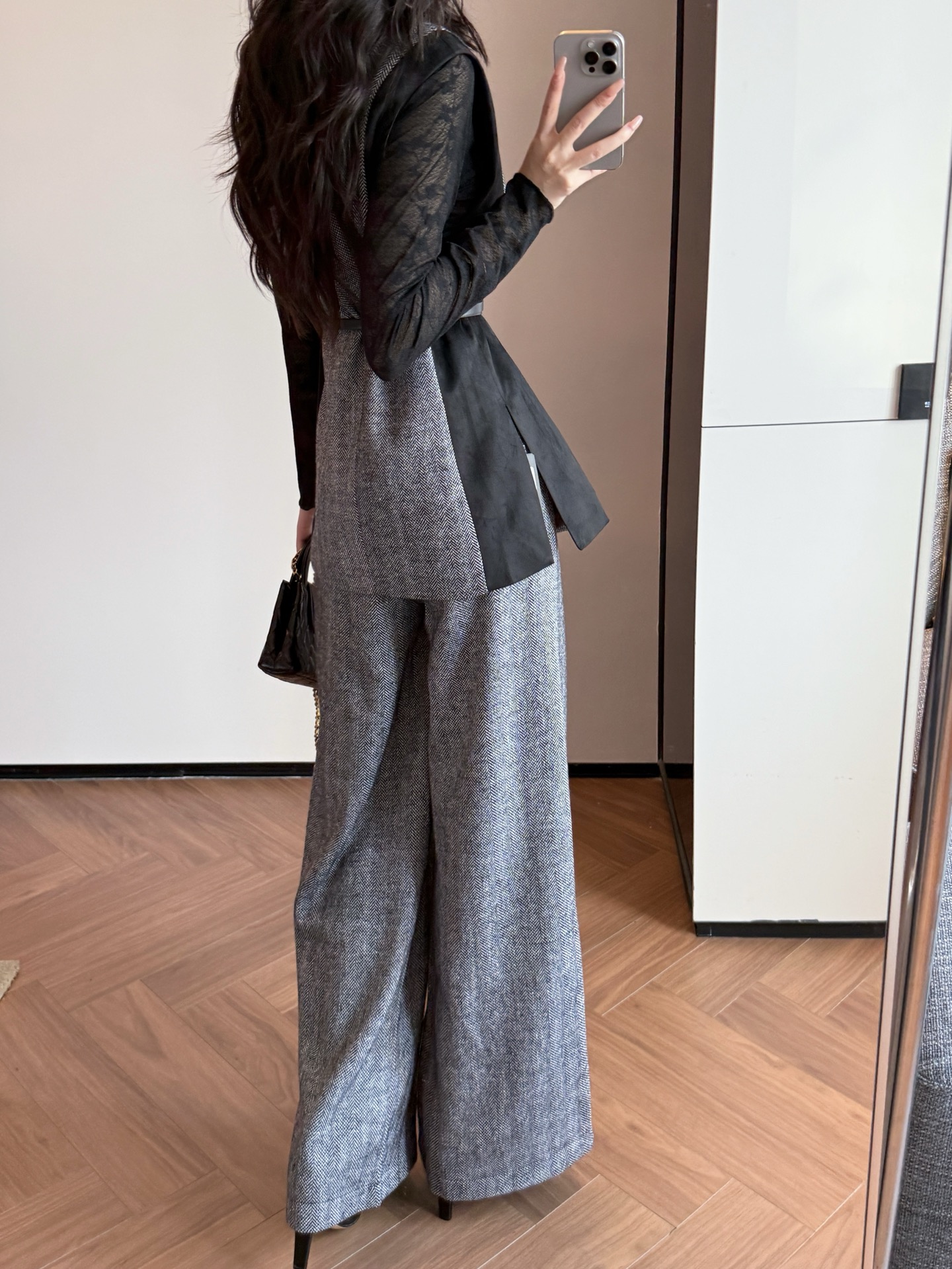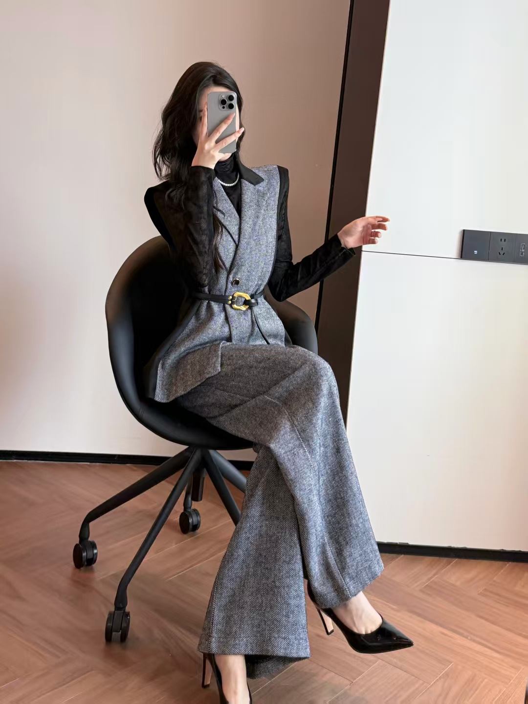 Elevate your wardrobe with this chic wool blend vest and wide-leg pants set. Perfect for office or everyday elegance.