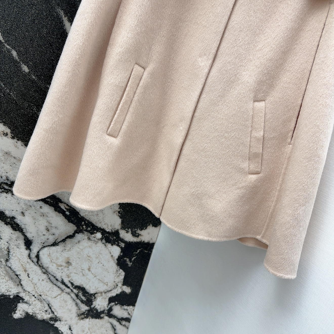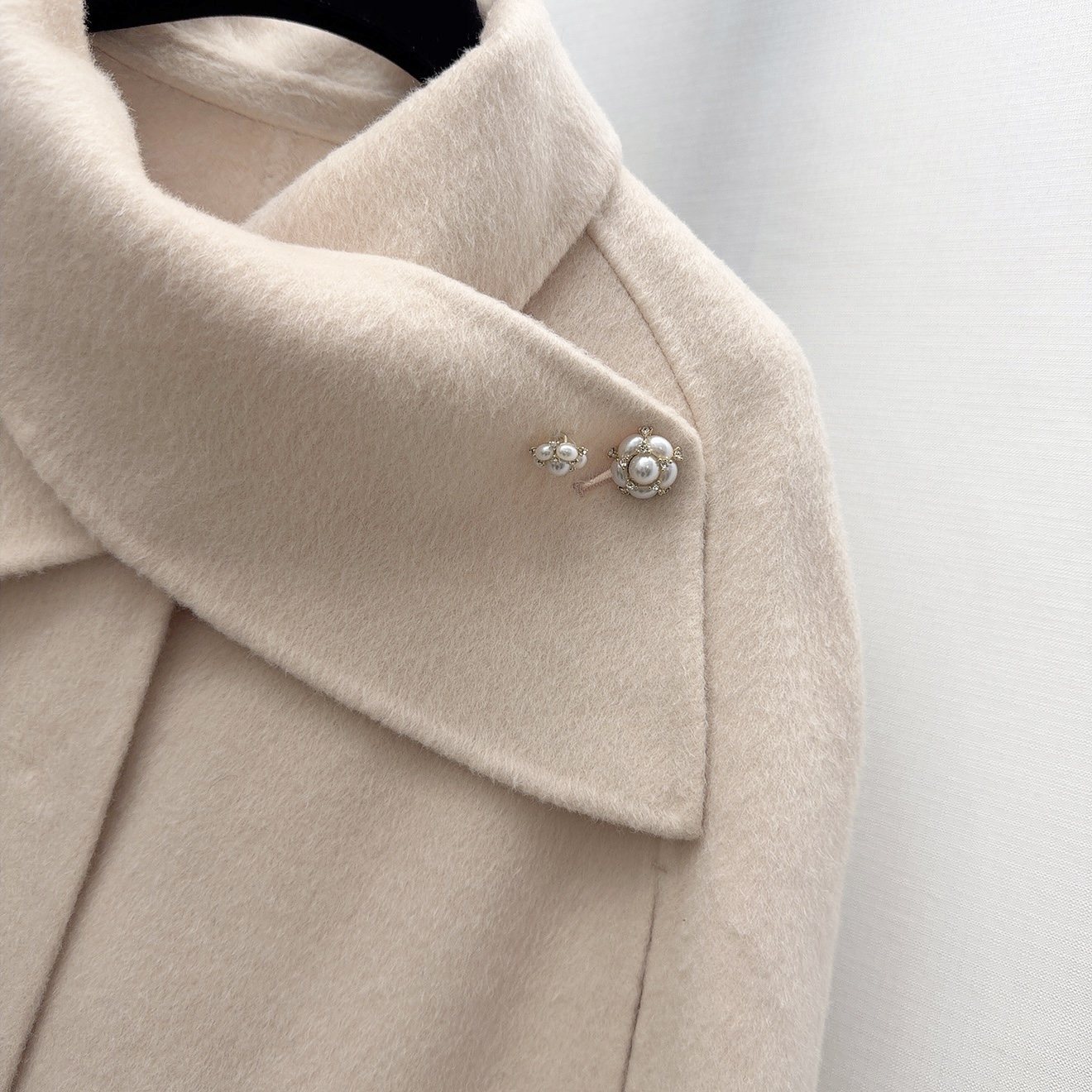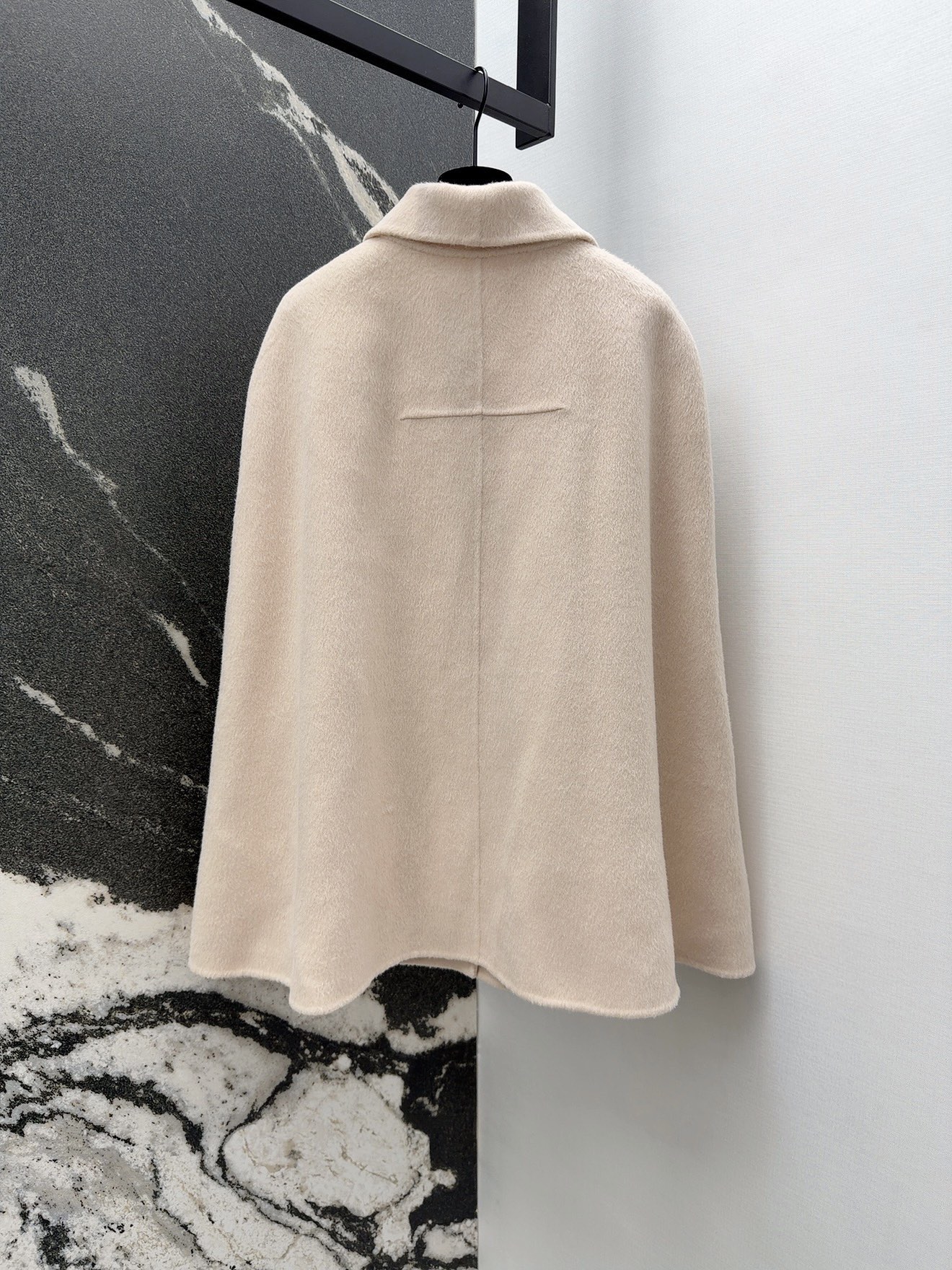 This double-faced wool cape coat is a must-have for your fall and winter wardrobe. Its elegant design and high-quality materials make it a timeless piece that you'll cherish for years to come.