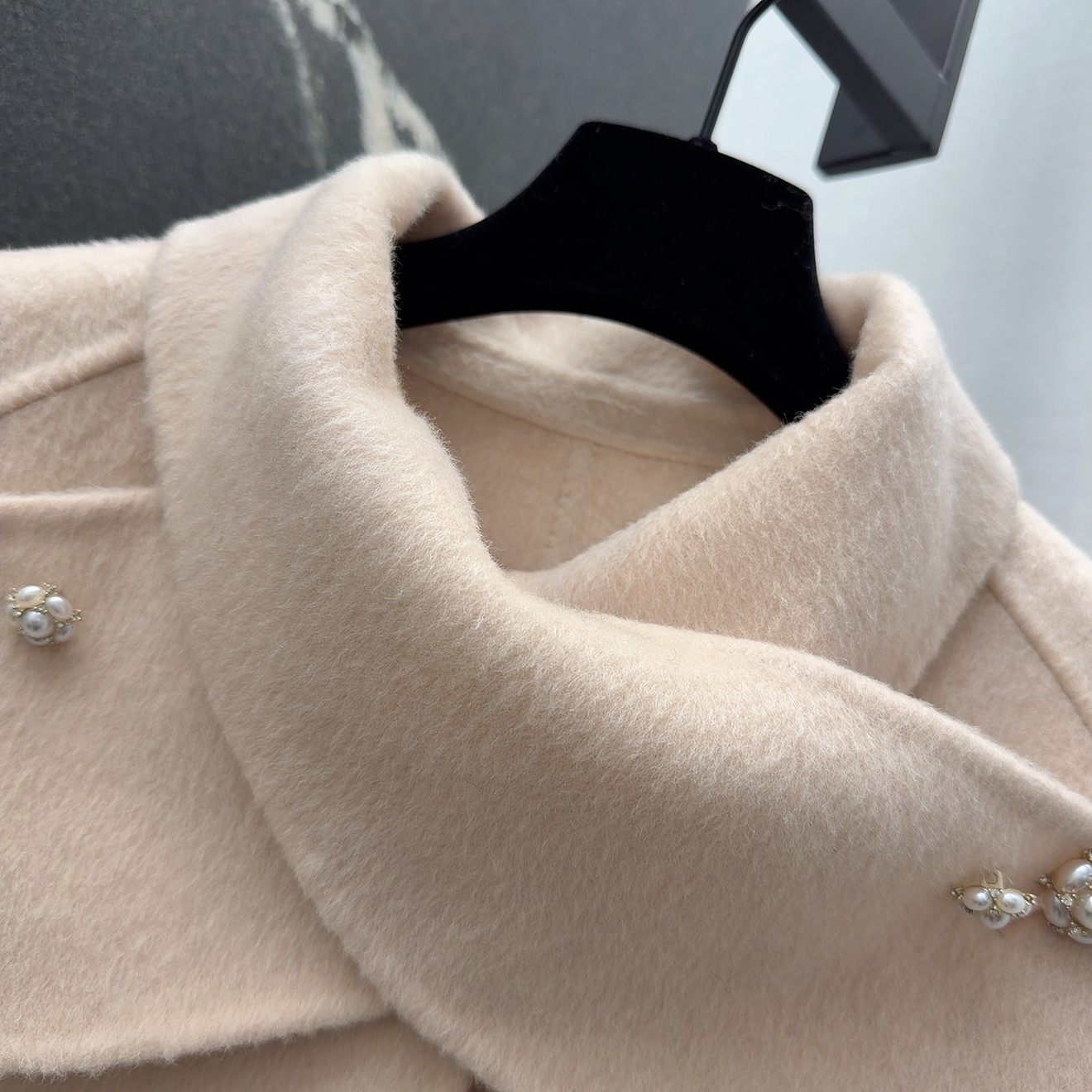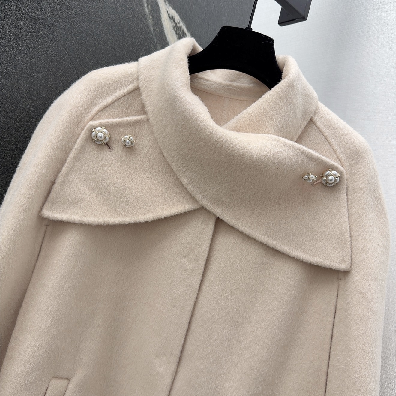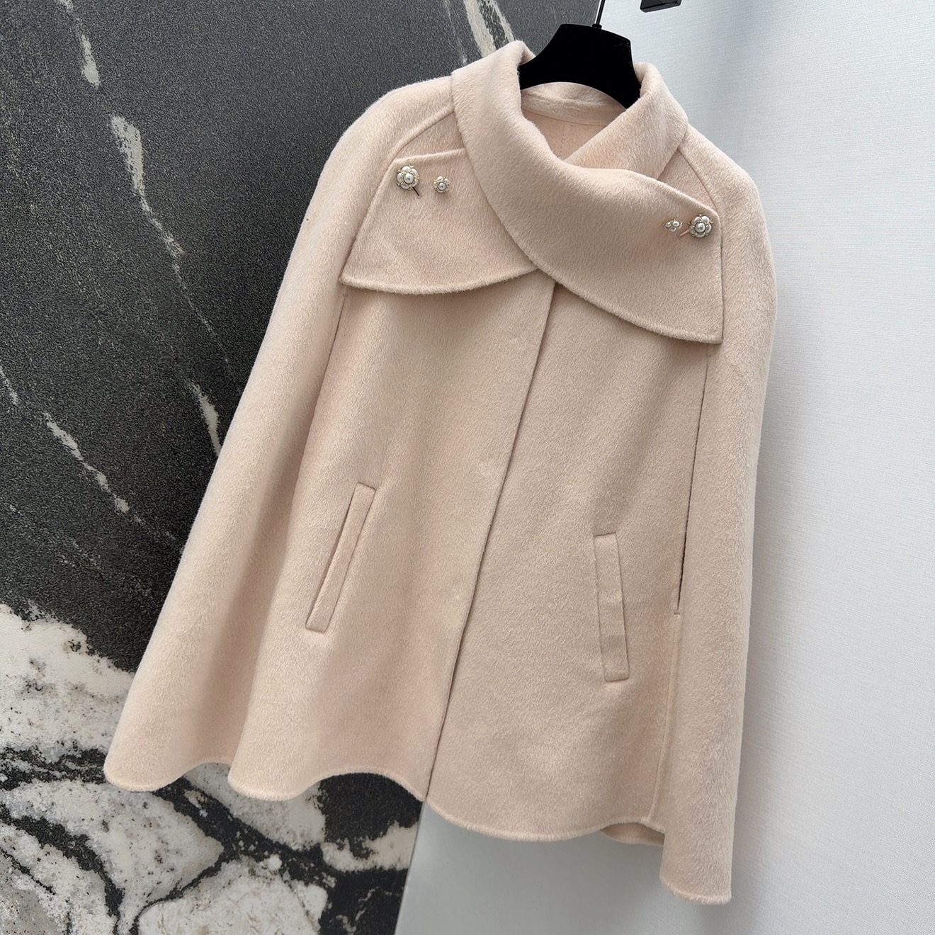 This double-faced wool cape coat is a must-have for your fall and winter wardrobe. Its elegant design and high-quality materials make it a timeless piece that you'll cherish for years to come.