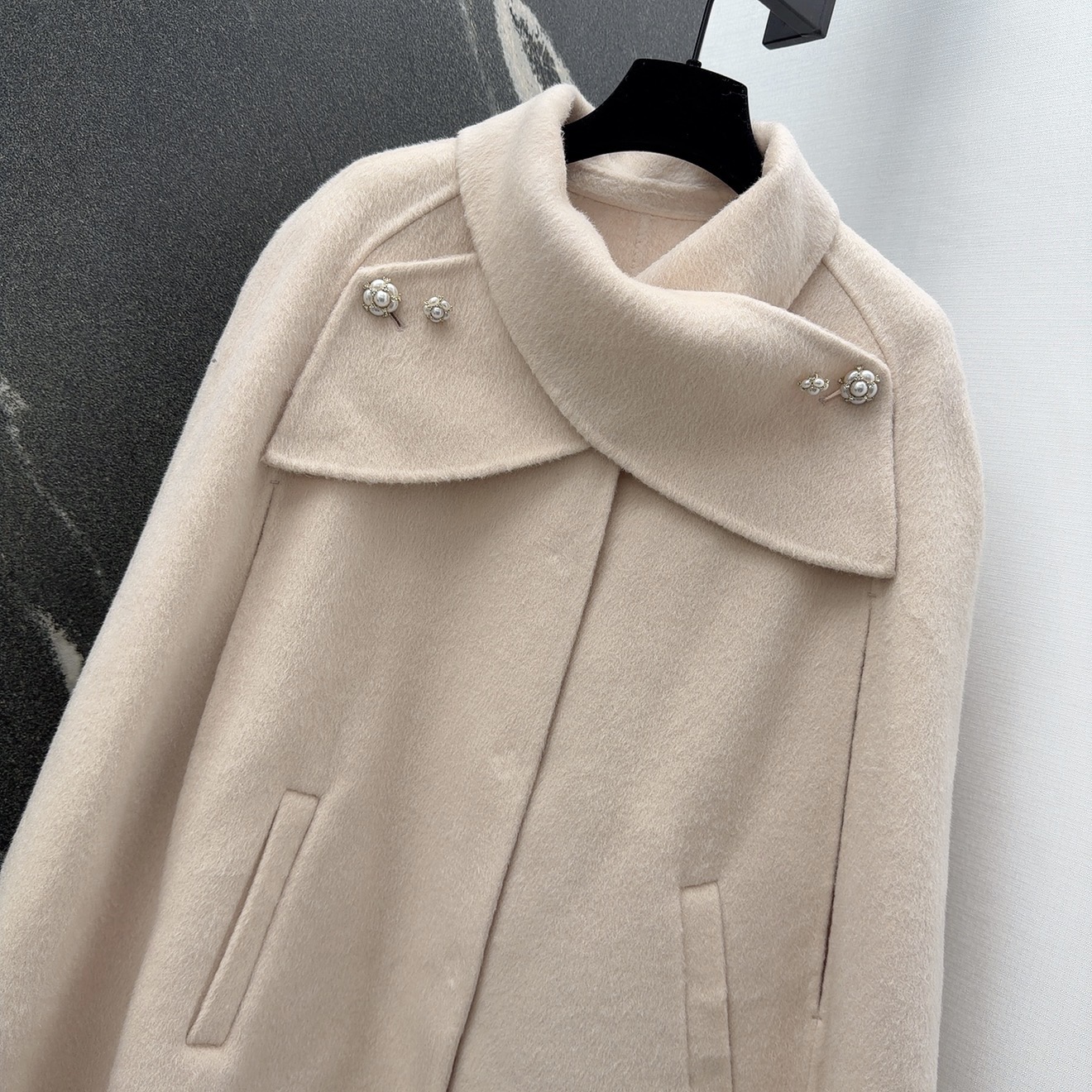 Elegant Wool Cape Coat with Pearl Buttons - Timeless Style for Fall/Winter