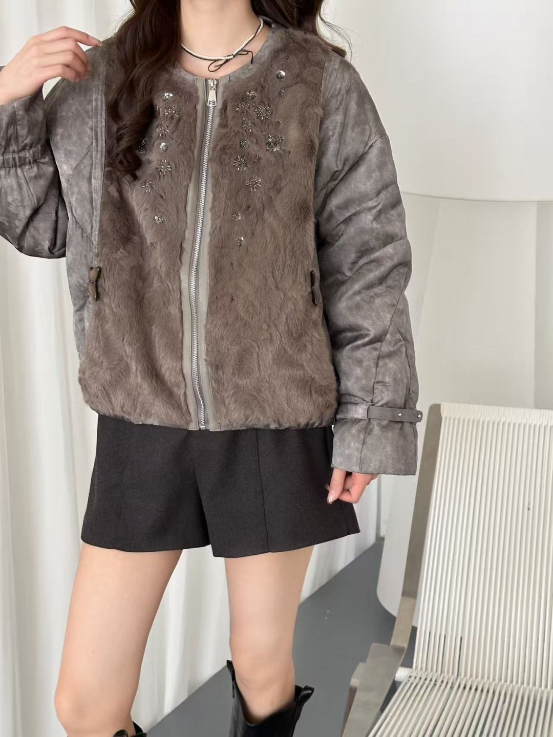 With its blend of luxurious materials, elegant design, and practical features, this jacket is an essential addition to your wardrobe. Embrace the warmth and style it offers, and make a statement wherever you go.